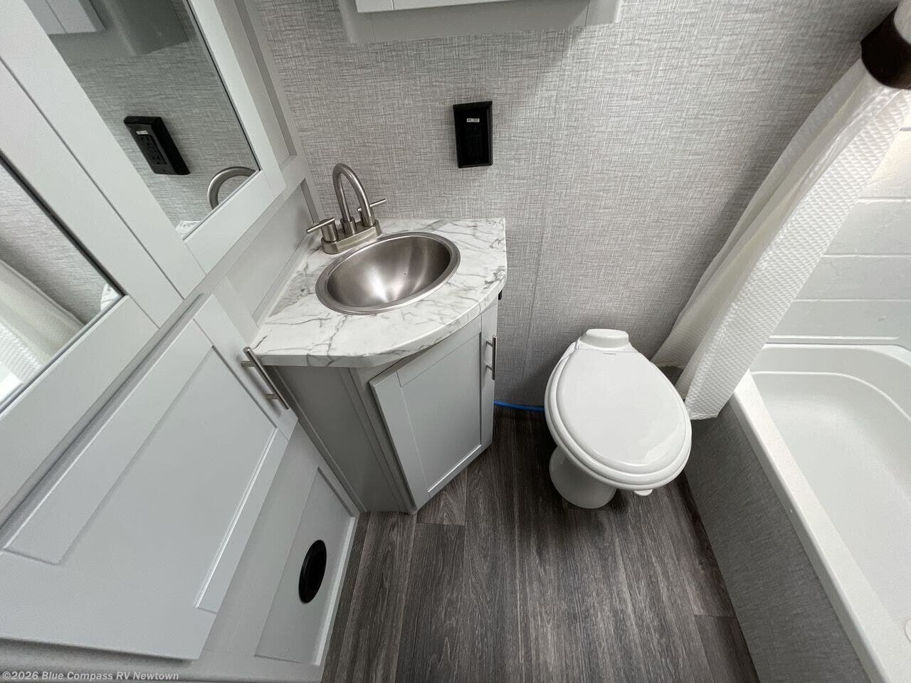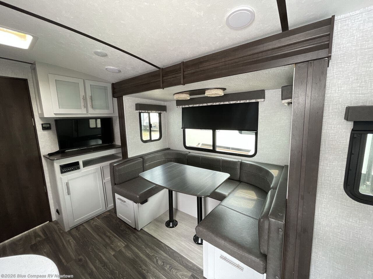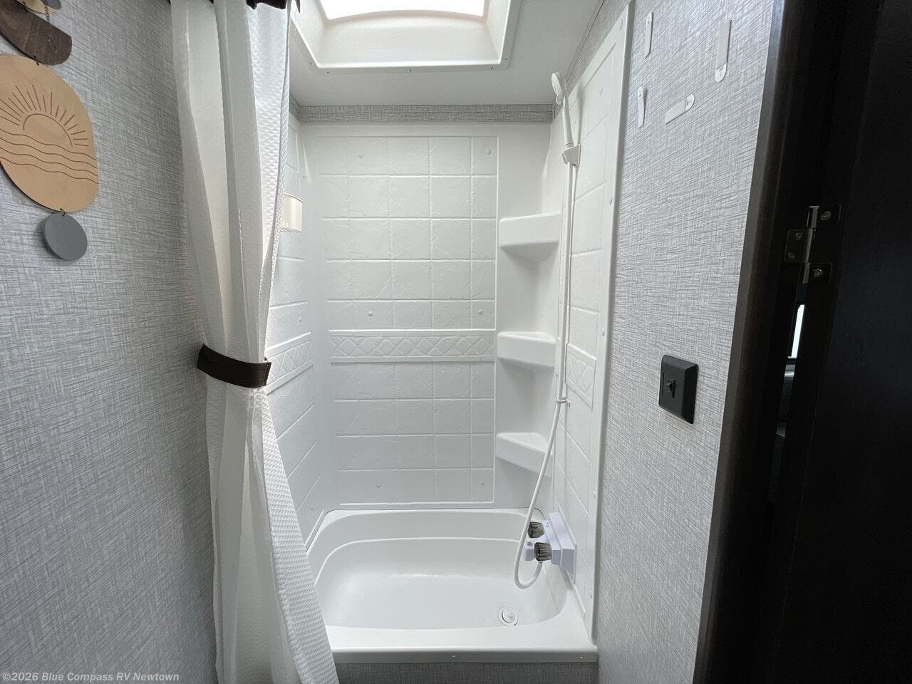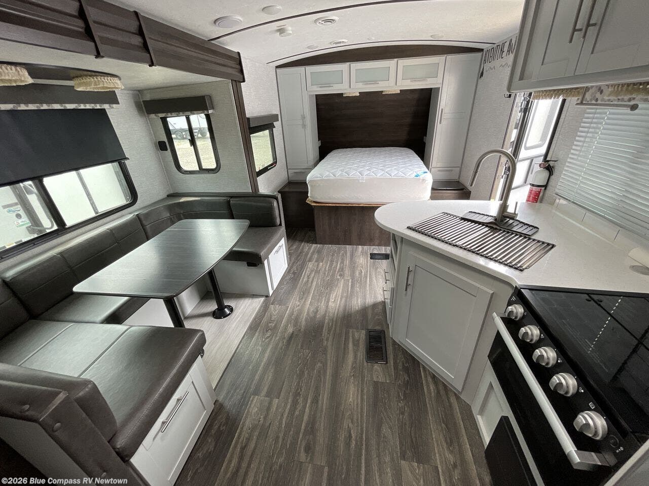 You and your spouse are going to love taking weekend excursions in this travel trailer! It features a front queen bed with wardrobes on either side and a laundry chute on one side to keep your dirty clothes out of the way. After you have prepared a delicious meal with Furrion three burner range and oven, you can head to the U-shaped dinette to enjoy it or if you chose the optional luxury cinema recliners then you can sit back and relax while you eat and watch your favorite movie on the LCD TV. The full rear bathroom has a tub/shower with a skylight above for extra headroom and natural lighting, as well as a wardrobe to store your towels!
