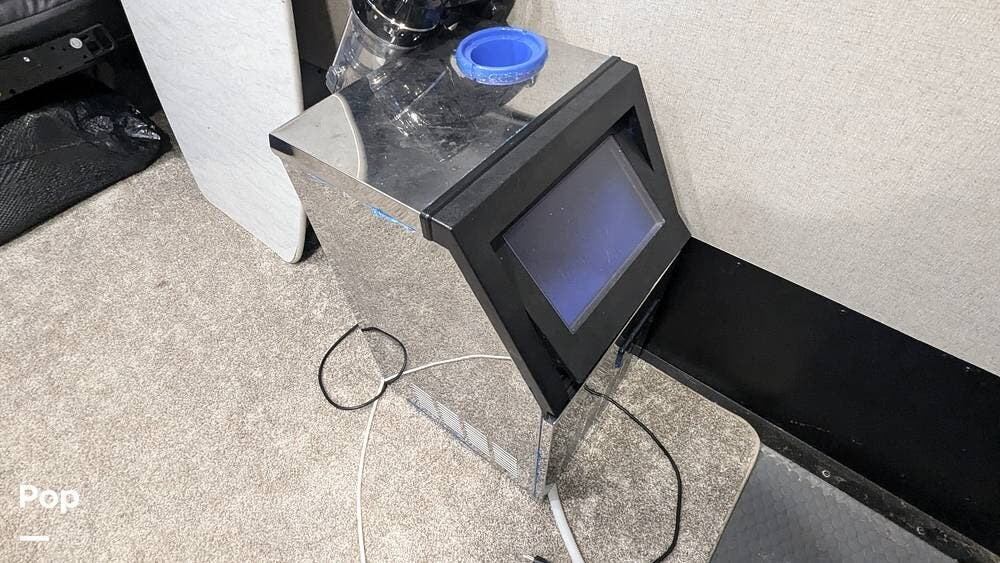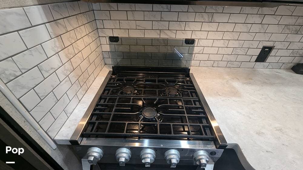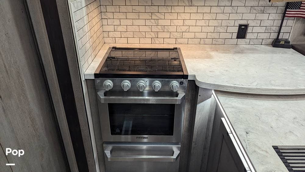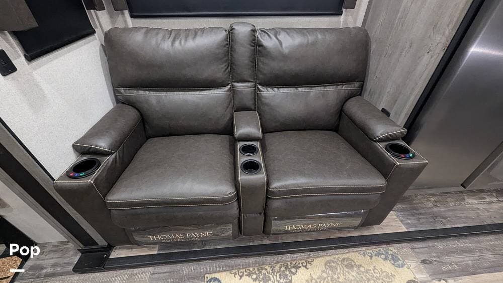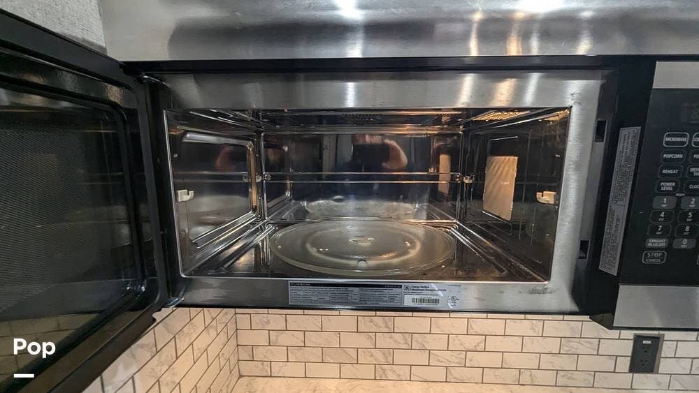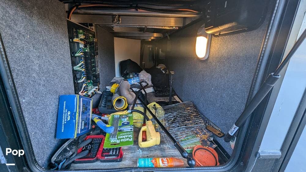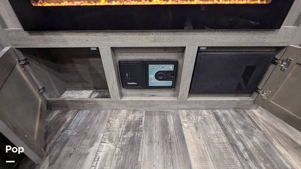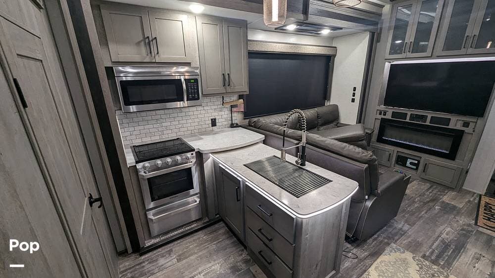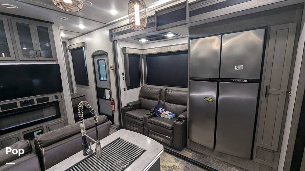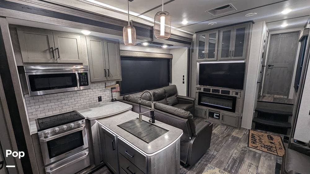 There is also a full-sized 18-cubic-foot refrigerator/freezer, fireplace, multiple televisions, and interior and exterior speakers for entertaining.