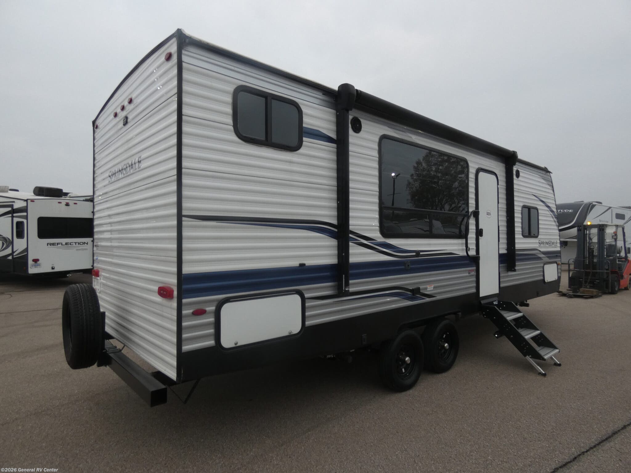 **Keystone Springdale travel trailer 260BH highlights:** * Booth Dinette * Private Toilet & Shower * Double-Size Bunks * Pass-Through Storage * 12' Power Awning You are sure to love this Keystone Springdale travel trailer from the front private bedroom to the many different storage spaces for all of your camping needs! This trailer is fabulous for your larger family or group of friends because it has a set of double-size bunks which will provide compact yet accommodating sleeping arrangements for your kids or friends. There is also a convenient full bathroom located next to the bunks which should help eliminate any late-night accidents. You can enjoy your delicious meals at the booth dinette or even the sofa, and both of these can transform into extra sleeping spaces whenever needed. With any Keystone Springdale travel trailer, fifth wheel and destination trailer, you will appreciate the 12V color-coded wiring with easy-to-trace circuits which is better than conventional RV wiring allowing a faster diagnosis for quicker repairs. Also included, the Blade high performance air flow system that delivers 30% more air flow and the streamlined heat distribution that uses in-floor heat vents for more efficiency for uninterrupted air flow. Some exterior features include the LCl SolidStep for a sturdy entrance, the pass-through storage compartment for larger outdoor gear, and Dexter E-Z Lube axles. The interior offers designer upholstered window valances, pressed kitchen countertops, and much more depending on the Springdale you choose.