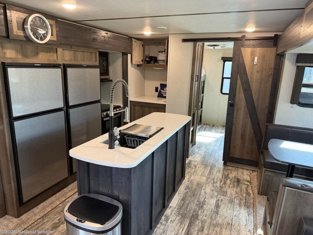 Experience unparalleled luxury on the road with the 2021 Keystone Sprinter Limited 341BIK. This meticulously designed travel trailer combines sophisticated styling with cutting-edge amenities, perfect for travelers who demand comfort without compromise. Step inside to find a bright, intelligently designed floorplan with premium finishes, top-of-the-line appliances, and a generous living area perfect for entertaining or unwinding after a day on the road. The modern kitchen features solid surface countertops, a full-size residential refrigerator, and abundant storage, while the master suite offers versatile twin beds that convert into a plush king, complemented by a sophisticated en-suite bathroom.