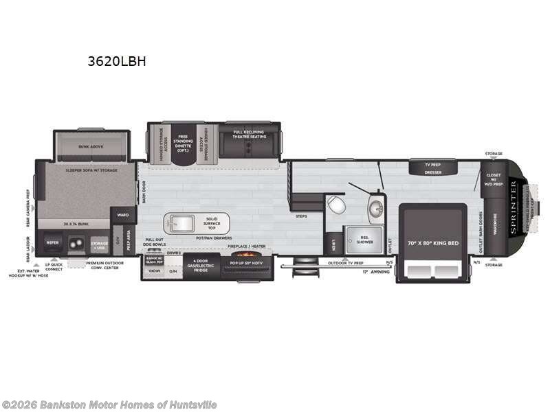 Keystone Sprinter Limited fifth wheel 3620LBH highlights: