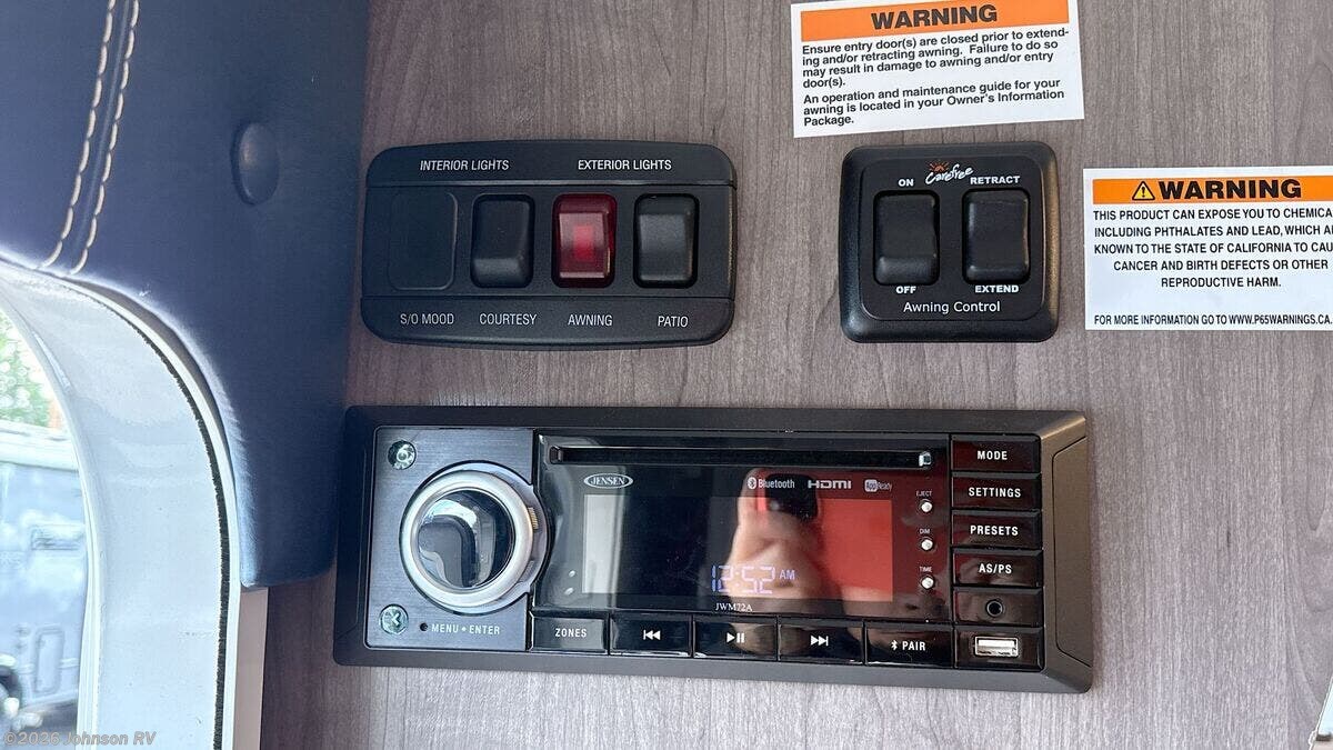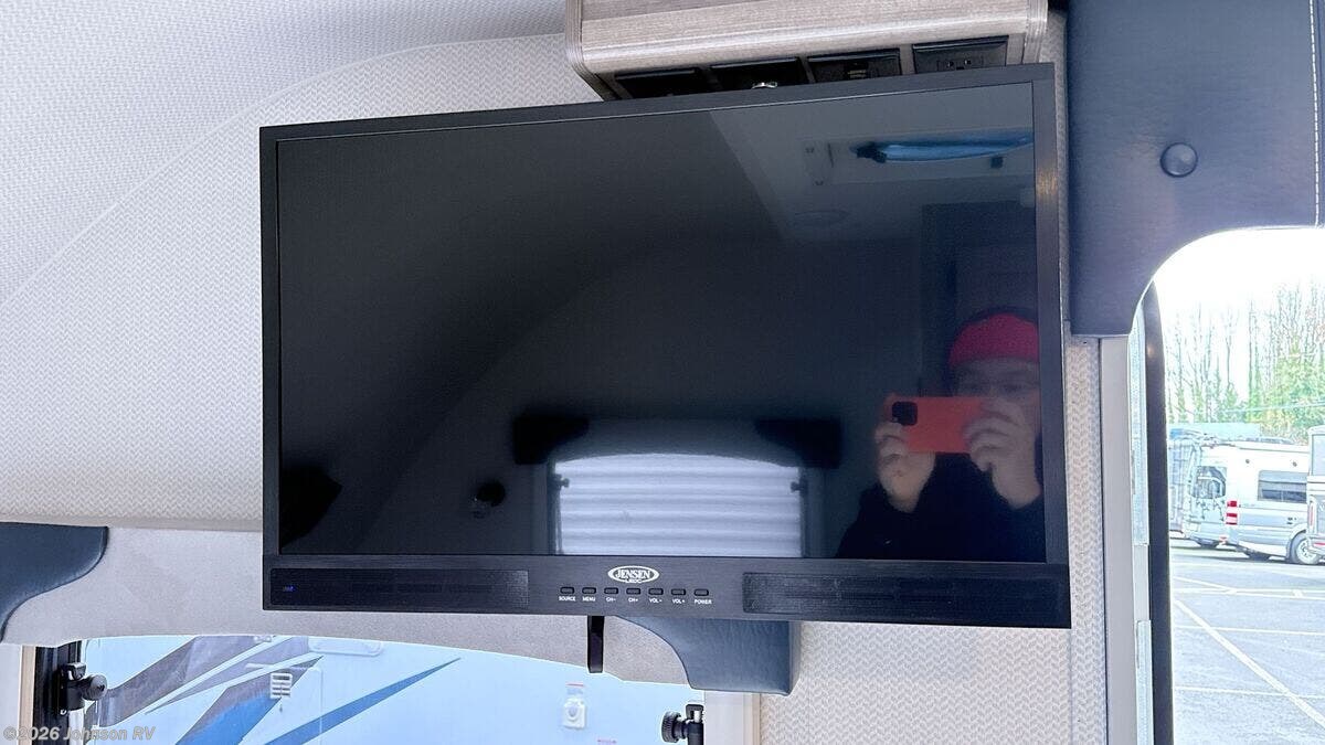 Features Include: Keyless Entry, Euro Entry Door, LED Mood Lights, Window Screen Shade, Overhead Cabinets, Dinette Skylight, 21-inch Oven, Microwave Oven, Systems Center, Thermostat, USB 110v 12v Ports, HD TV Antenna, Sleeping, Shower Miser System, 25k Furnace, Truma Aventa 15k AC, On Demand Water Pump, Black Tank Flush, Road Armor Equalizer, Aluminum Wheels, TPO Gravel Guard, Crowned Walk-On Roof, Phat Ladder, Enclosed Underbelly, Toy Lock