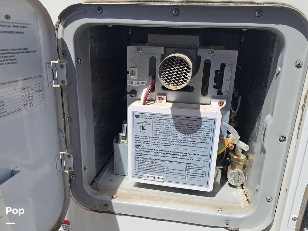For climate control, the camper comes with a roof-mounted air conditioner and a propane heater.