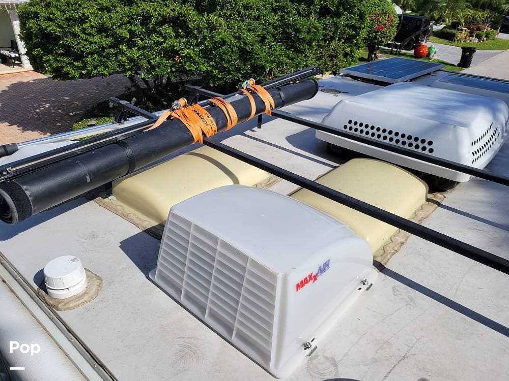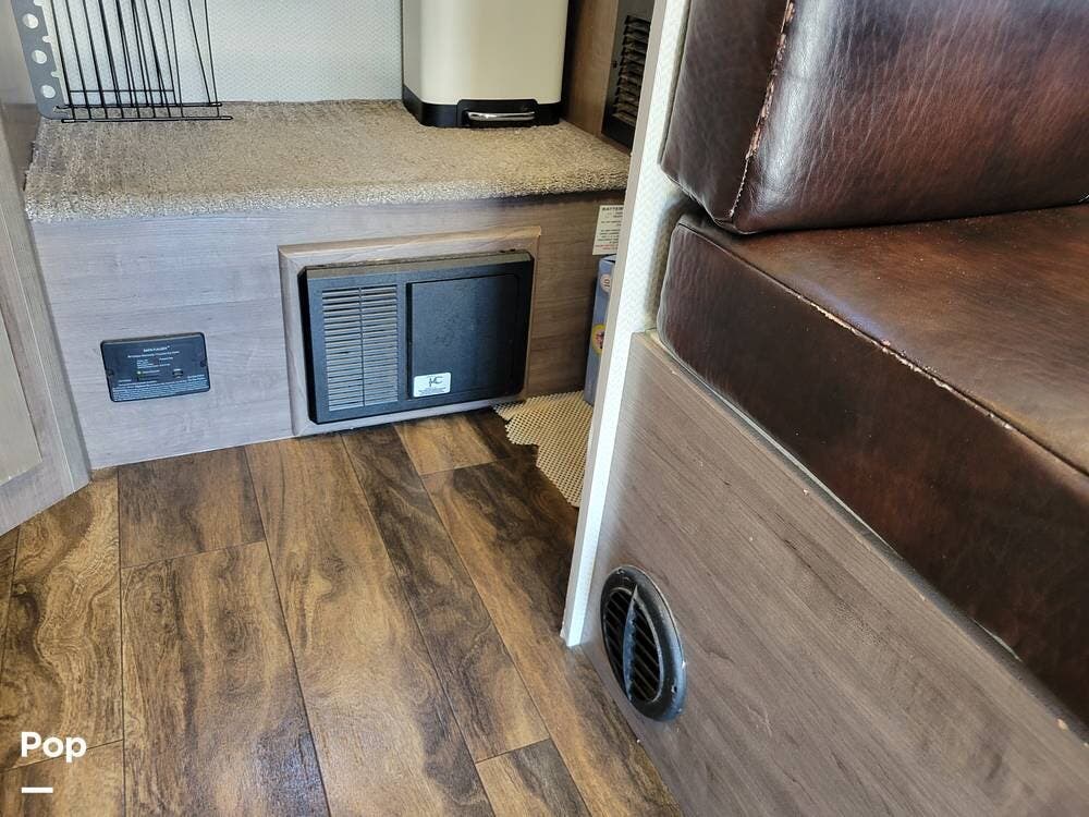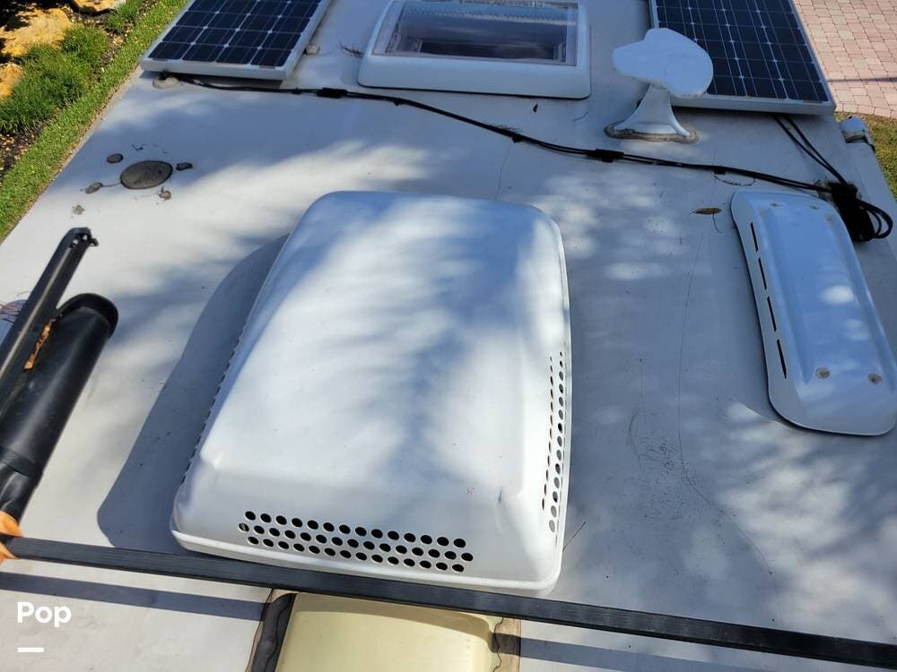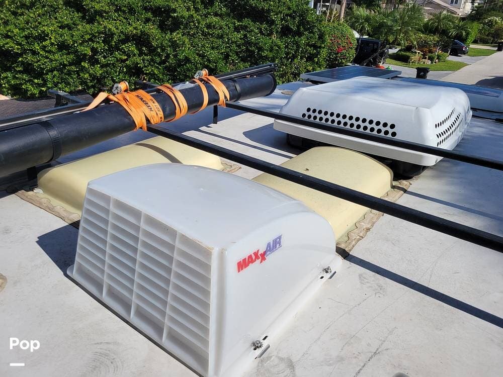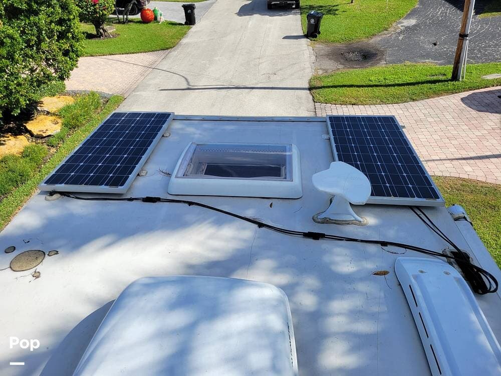 The camper comes with the optional dual solar panels and lithium batteries. Enjoy the air conditioning when powered by a generator or plug in power. There is MaxxFan roof vent with a rain cover to let the fresh air flow thru.