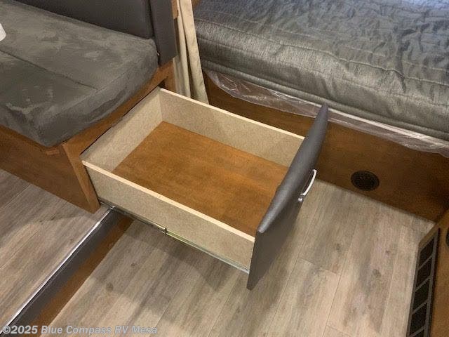 Thank you for visiting Tom’s Camperland! Email us, stop by for a tour or call 480-894-1267 Thanks - If you’re looking for more living space and storage – the 1685 was made for you. It features a complete dry bath, larger kitchen counter space, along with the “Super Slide” and forward queen-sized bed. All this comfort and luxury weighing in at just 3710 pounds and abundant storage too! The new raised panel glazed cabinet doors along with the new rich wood paneling and laminated counter and table surfaces give the 1685 a very elegant look. Standard Equipment Bathroom Black Tank Flush Ducted Heat Marine Toilet – Foot Pedal – Porcelain Medicine Cabinet W/Mirror Door Skylight – Dual Pane Bedroom Bedspread W/Throw Pillows Deluxe Queen Innerspring Mattress W/Pillow Top LED Reading Lights Overhead Cabinet Bunk Construction/Insulation Aluminum Framed Sidewalls/Floor/Ceiling Azdel Interior Walls Laminated, Insulated Floor and Ceiling w/Block Foam One-Piece TPO Roof Dinette Dinette W/Reversible Cushions Roll-Out Storage Drawers Electrical 12V/USB Charging Port AM/FM/DVD Stereo W/Int & Ext Speakers (Bluetooth) Decorative LED Lighting – S/O Ceiling Dual Battery Rack w/Manual Disconnect Exterior 120V Patio Outlet LED Interior Lighting – Ceiling & Under Overheads LED Patio & Hitch Light – Switched LED Vanity Lighting Over Medicine Cabinet Power Roof Vent in Bath Pre-Wired for Roof A/C & Fantastic Vent Pre-Wired for TV Ant/Park/Sat Cable Storage Compartment Lighting Systems Monitor Panel & Battery Condition Indicator TV Antenna HD Wall Switched Lighting Exterior Acrylic Tinted Thermopane Front Euro Window Aerodynamic Front Section Profile Aluminum Wheels W/Radial Tires Double Entry Step Exterior Propane Connection Exterior Wash Station Fiberglass Front Wrap W/Formed TPO Lower Gravel Guard Formed Jewel LED Docking Lights Laminated Fiberglass Bonded Exterior W/Azdel Substrate LED Tail Lights & License Plate Holder Radius Full Torque Frameless Tinted Dual pane Windows Roof Vent in Bed & Living Areas Skylight in Galley/Dinette Area Slide-Out End Wall Windows Spare Tire Carrier Swing-Out Entry Assist Handle Fresh And Waste Water Systems Enclosed, Insulated and Heated Fresh Water Tank Water Heater Gas/Electric/DSI Water Pump W/In-Line Filter Galley/Appliances & Equipment 3-Burner Range w/Rangehood & Fan Furnace 25M BTU Forced Air Magazine and Spice Racks – Wood Propane Tank (2/5 Gal) w/Cover Refrigerator (6 Cu Ft) 2-Way Double Door w/Dlx Panels Single Sink w/Pull-Out Sprayer Faucet & Sink Cover Interior/Decor Day/Night Shade in Dinette Decorative Pull Cabinet Hardware Hardwood Raised Panel Cabinet Doors (O’Head Cabinets) Key Hanger & Wall Clock Lite-Ply Cabinet Construction Mini-Blinds in Galley/Bedroom/Living Area Surf-X Suedo Solid Surface Lightweight Countertops