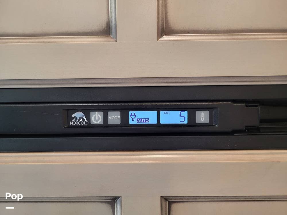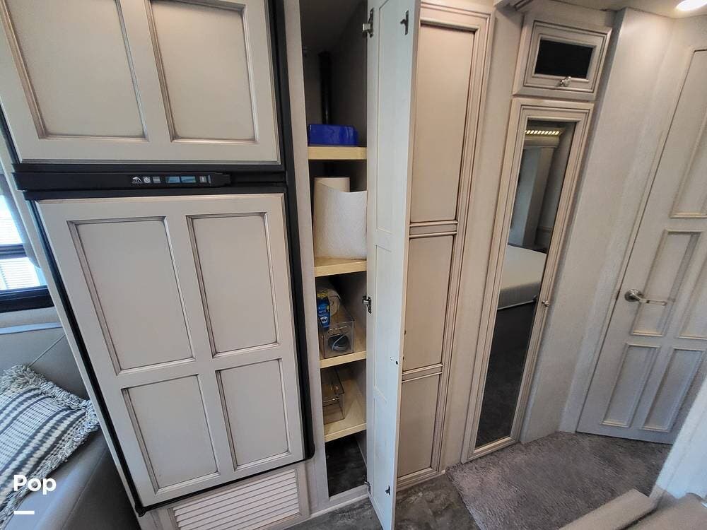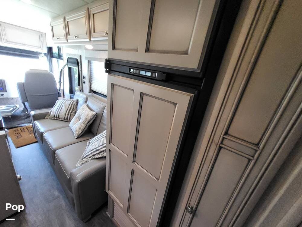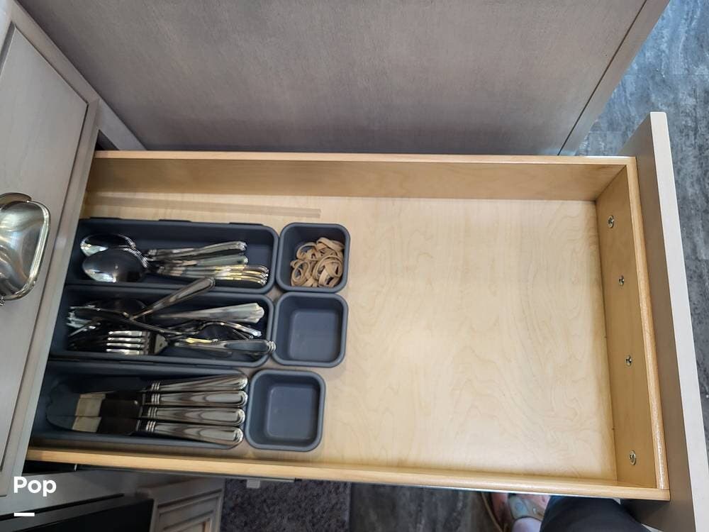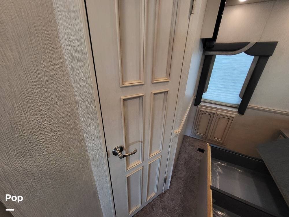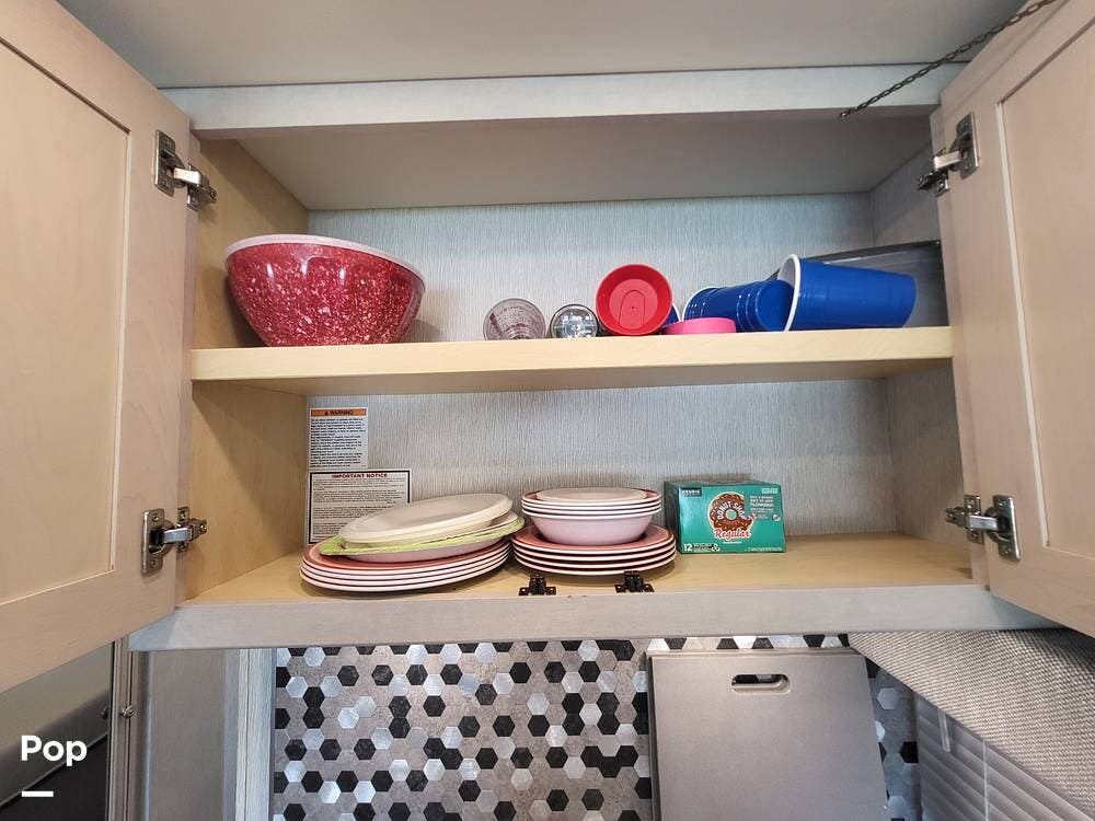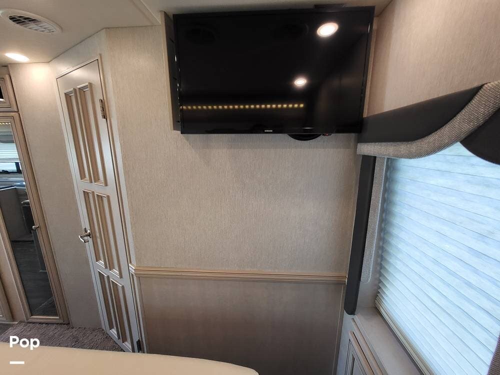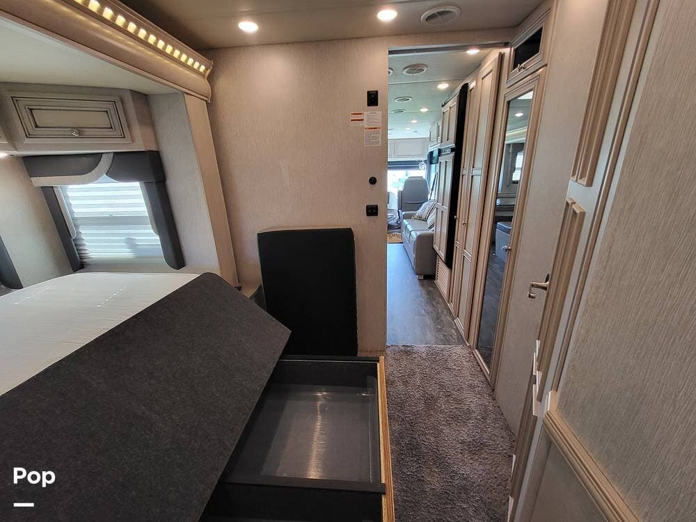 The private bedroom offers a relaxing retreat with a queen bed, an expansive wardrobe, and a mounted TV for added comfort. A spacious bathroom completes the interior, boasting a large shower, sink, and medicine cabinet--bringing the comforts of home along for the ride.