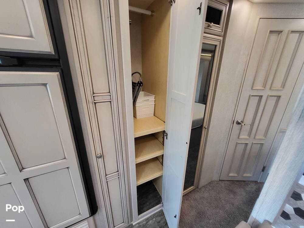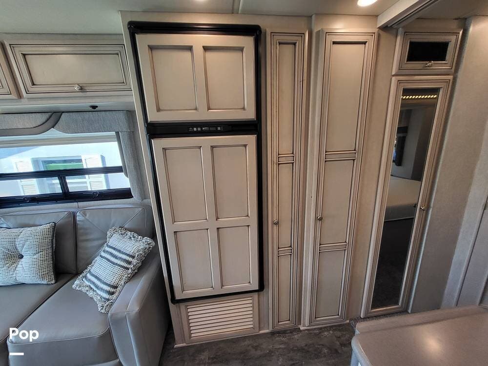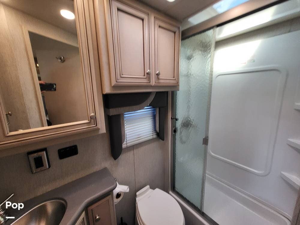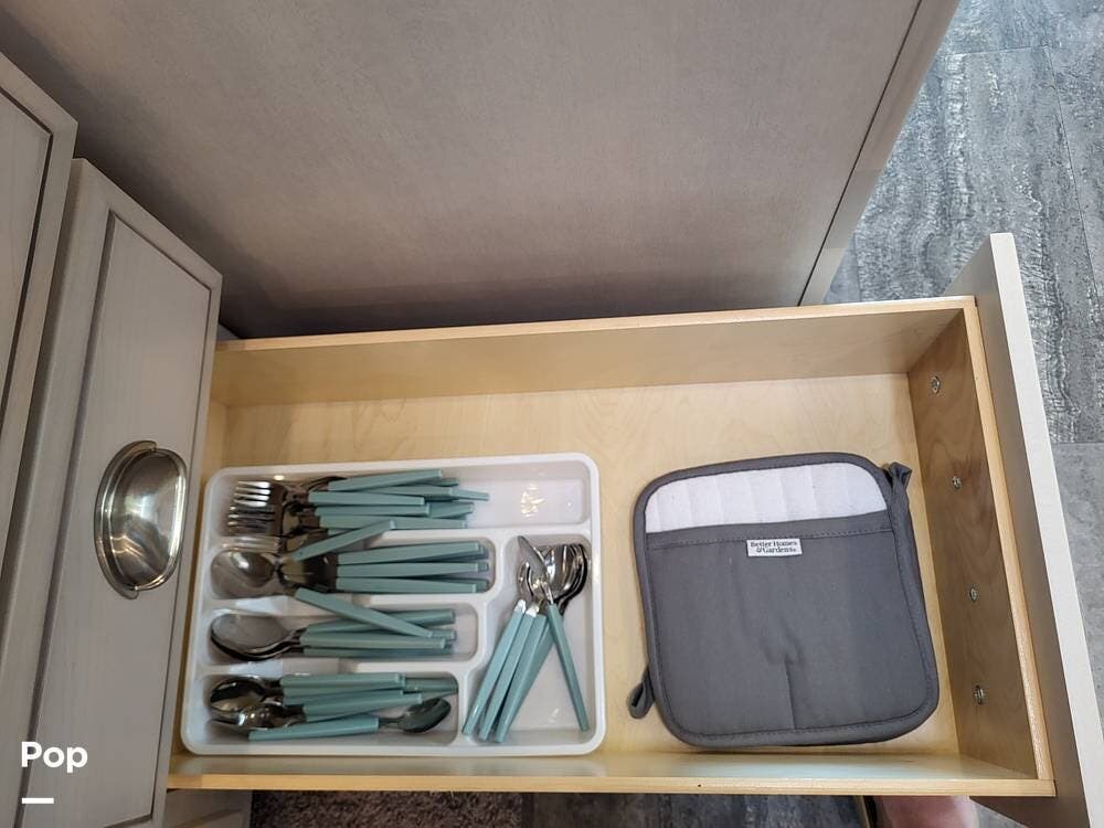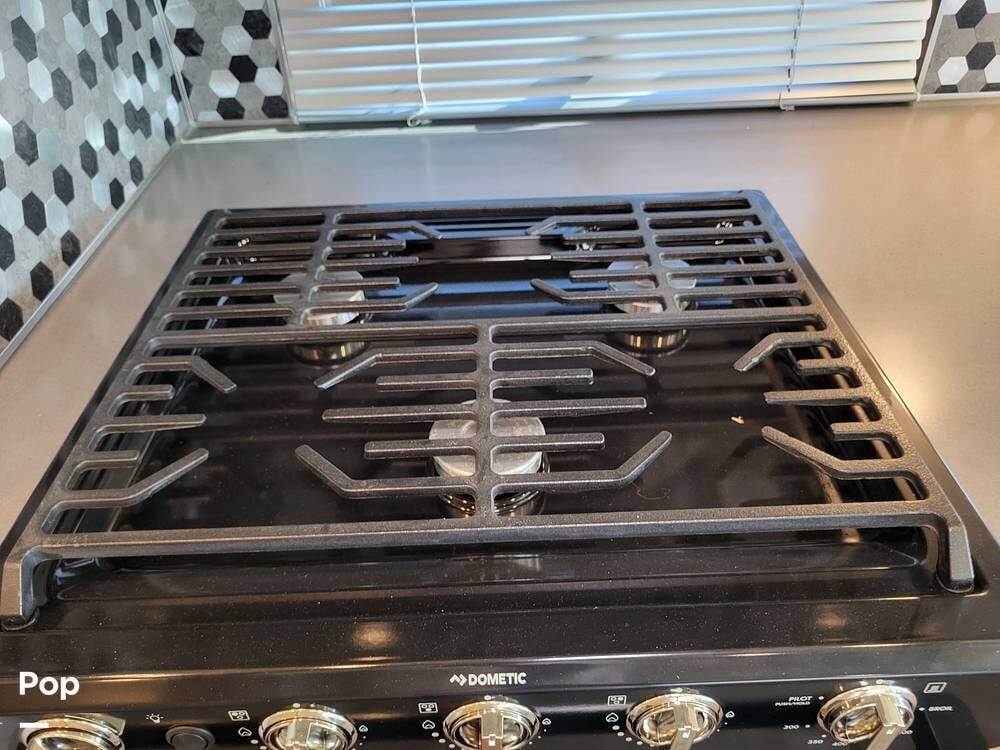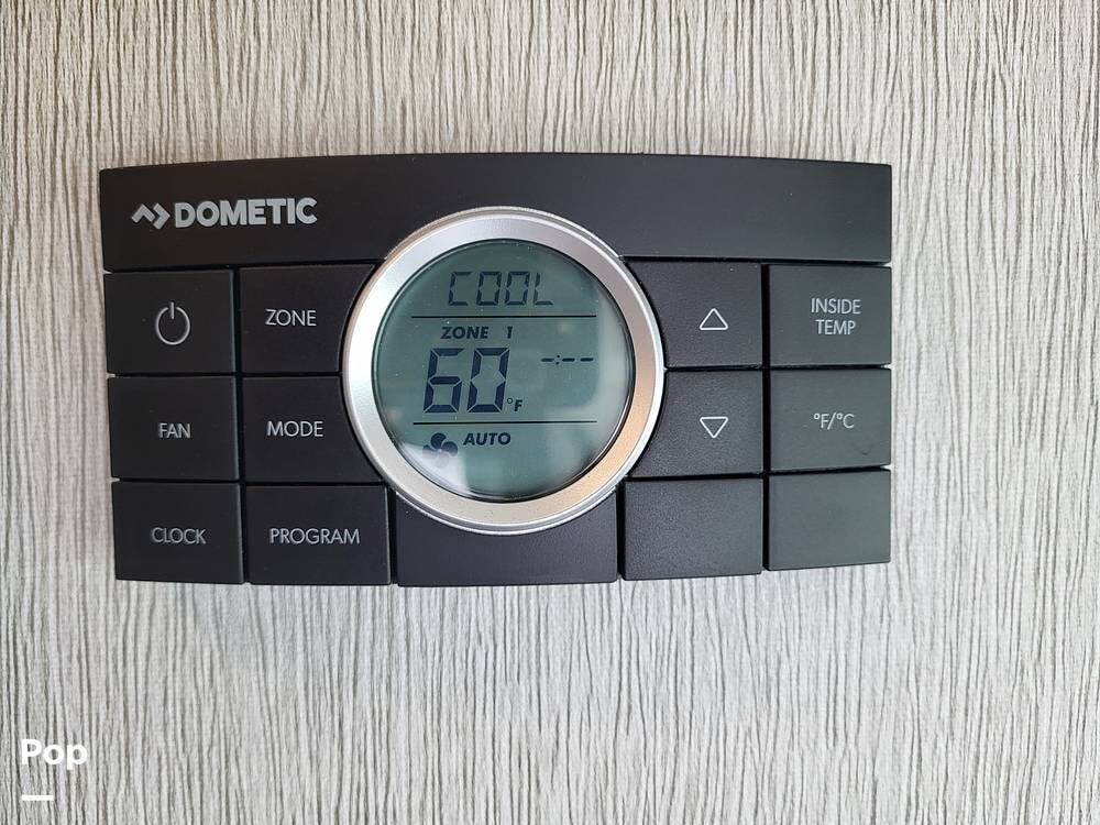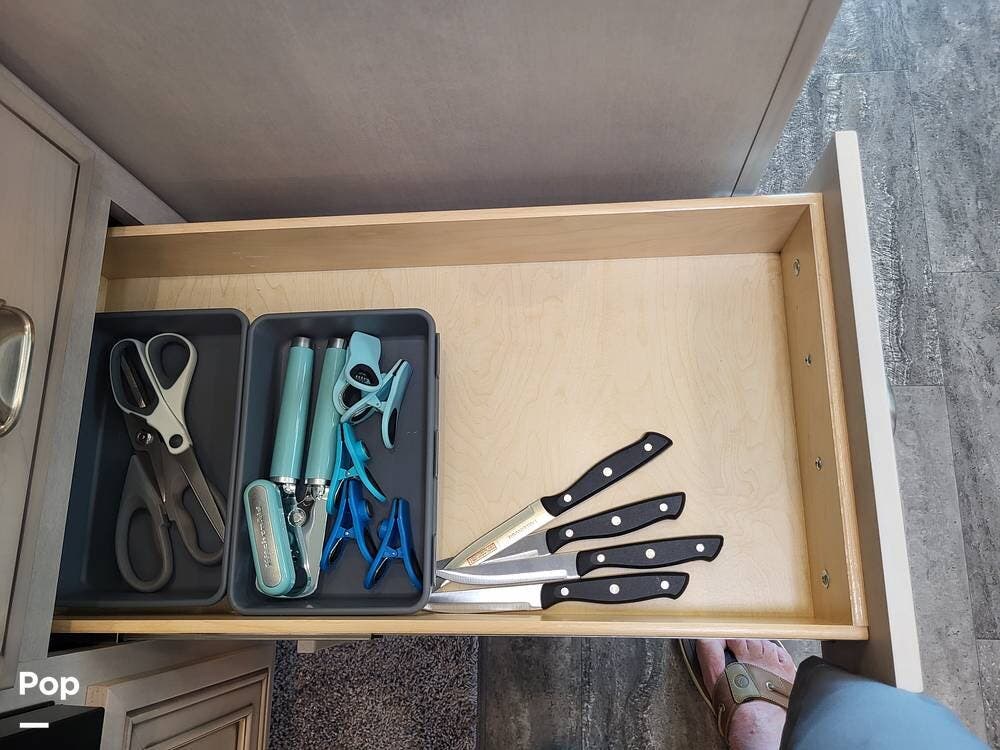 The private bedroom offers a relaxing retreat with a queen bed, an expansive wardrobe, and a mounted TV for added comfort. A spacious bathroom completes the interior, boasting a large shower, sink, and medicine cabinet--bringing the comforts of home along for the ride.