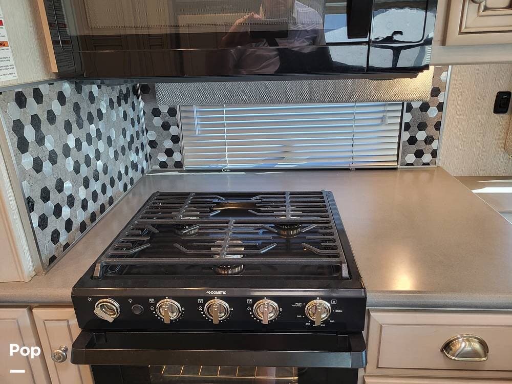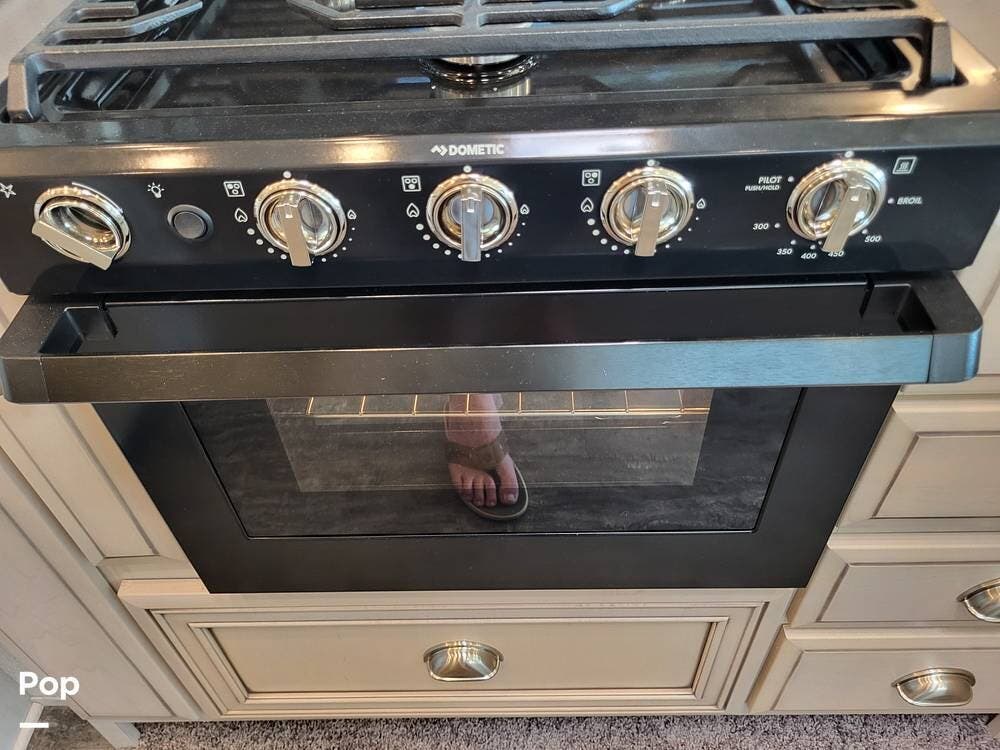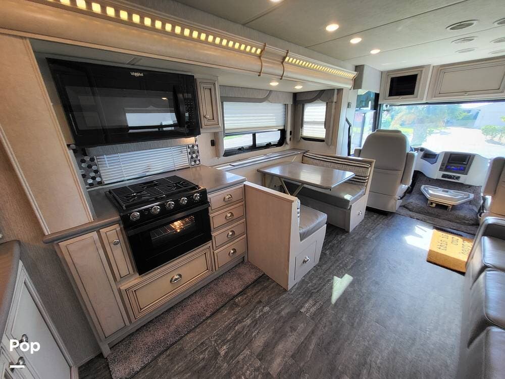 Inside, the layout is equally inviting and practical. A convertible booth dinette and jackknife sleeper sofa provide flexible seating and sleeping options, while swiveling Ultraleather captain's chairs transform the cockpit into a comfortable living space once parked. The well-appointed kitchen is road-ready, featuring an LP gas/electric refrigerator and freezer, convection microwave, and a three-burner stove with oven--all accented by rich solid wood cabinetry comparable to what you'd expect in a Dutch Star.