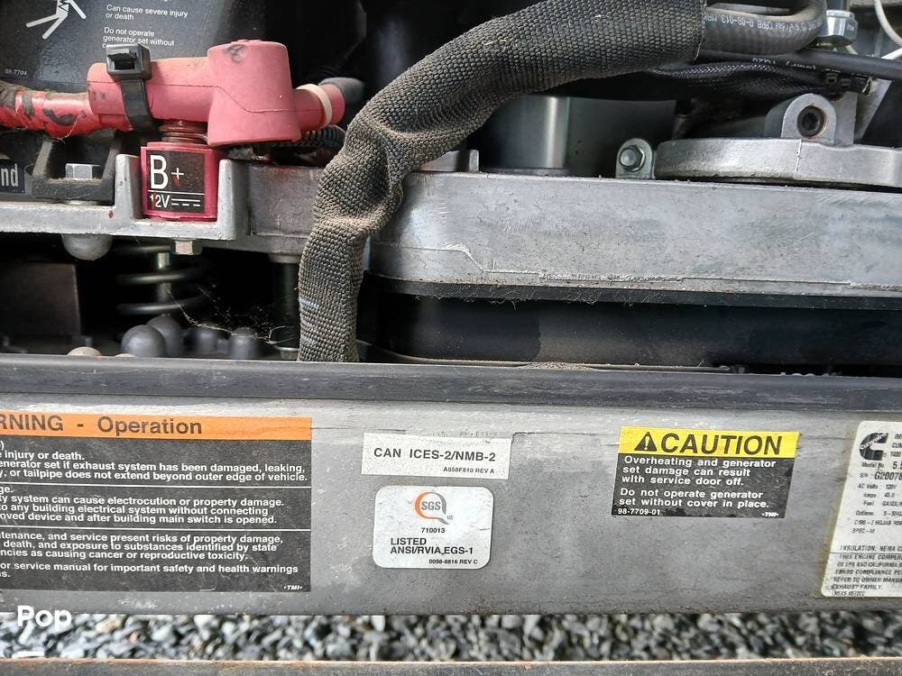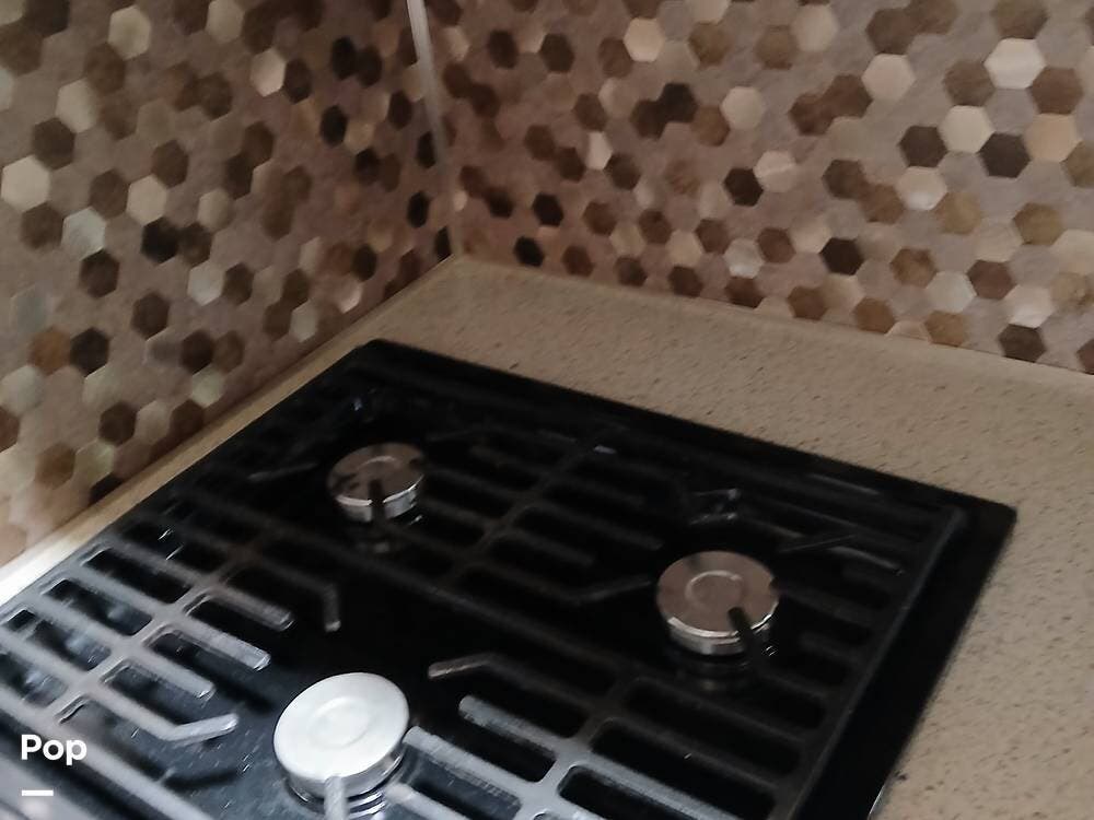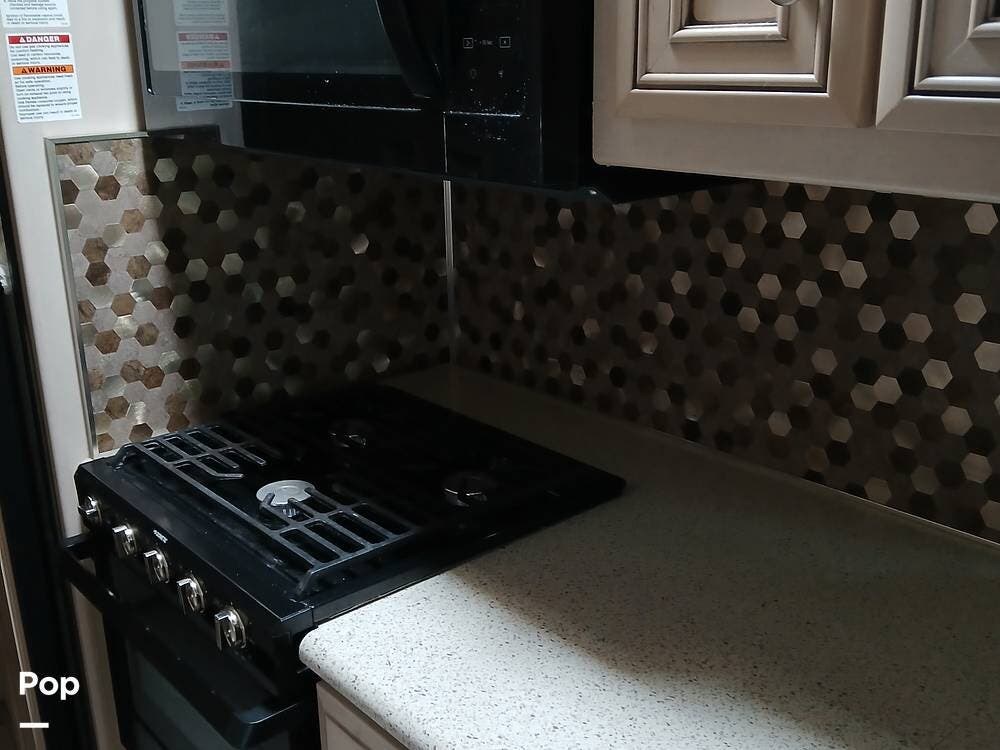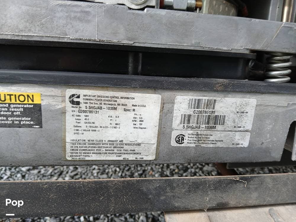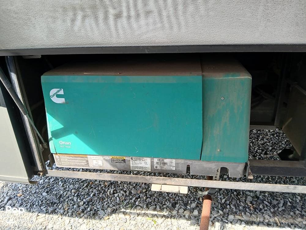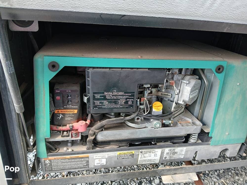 Outside, the full-body paint with clearcoat gives it a sharp look, and features like self-leveling jacks with Bluetooth control, a power awning with LED lighting, a rear ladder, a tow hitch, and large lighted storage compartments make setup and travel a breeze. The generator is managed from inside the coach. There is an electric outlet that lets items run even if you are not hooked up to electricity.