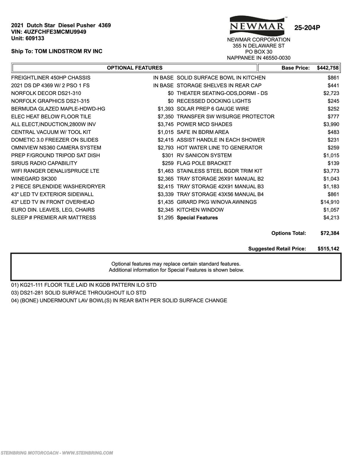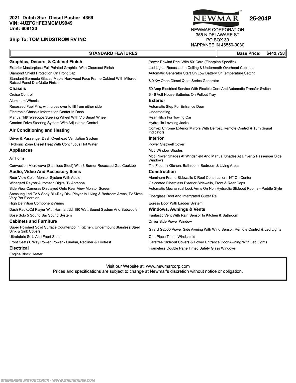 Request More Info on this 2021 Newmar Dutch Star 4369 Offered for sale by Steinbring Motorcoach