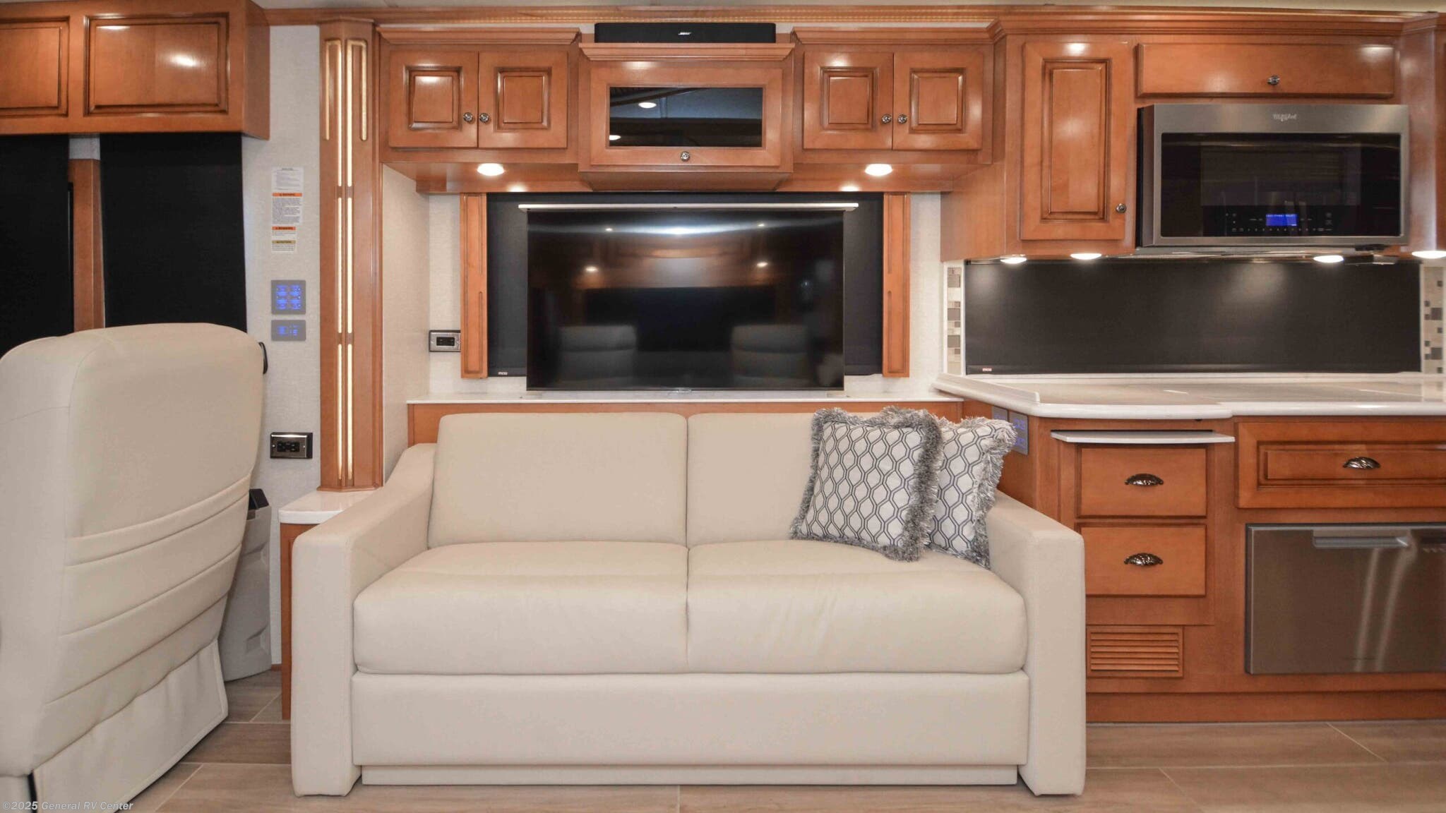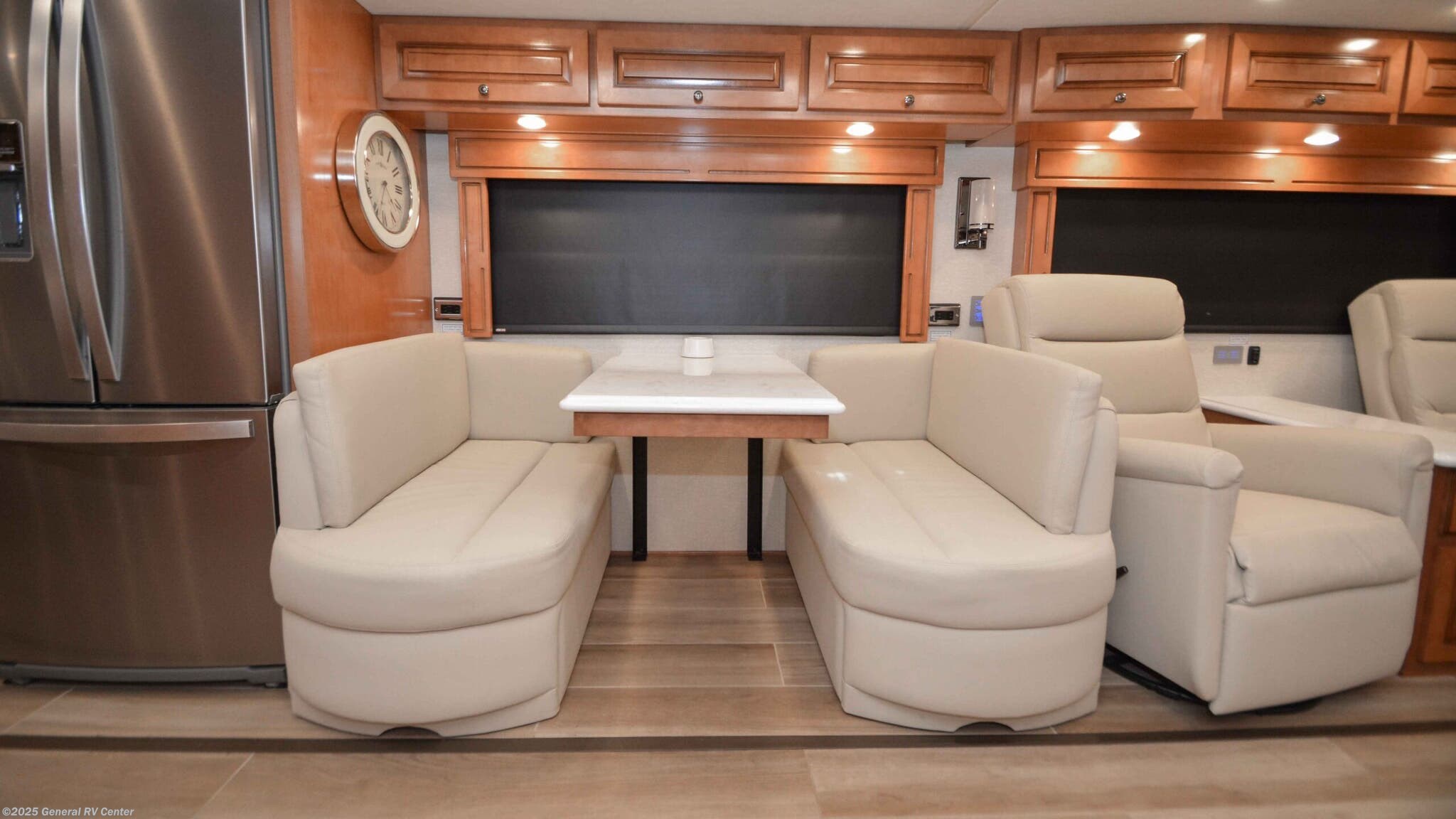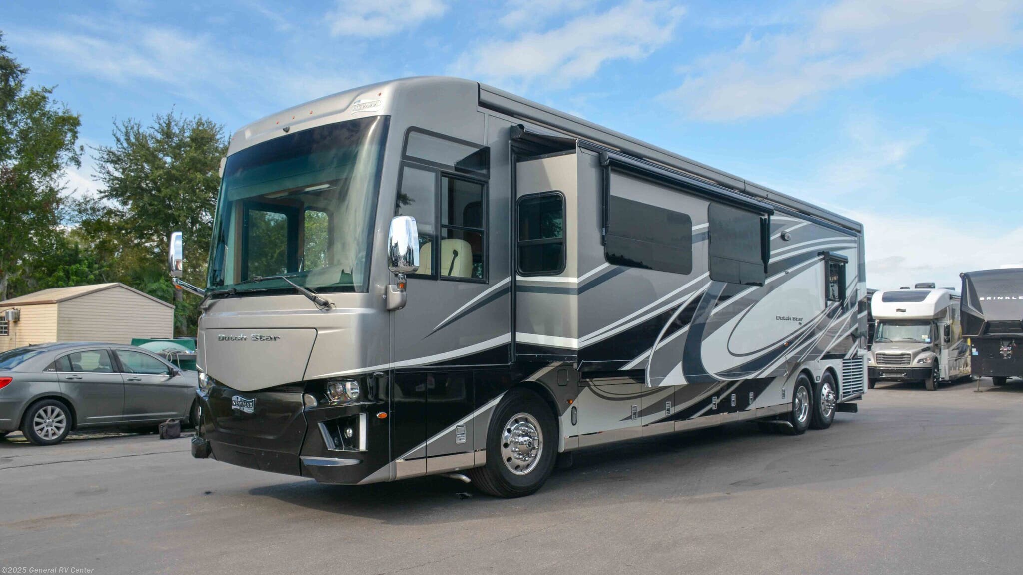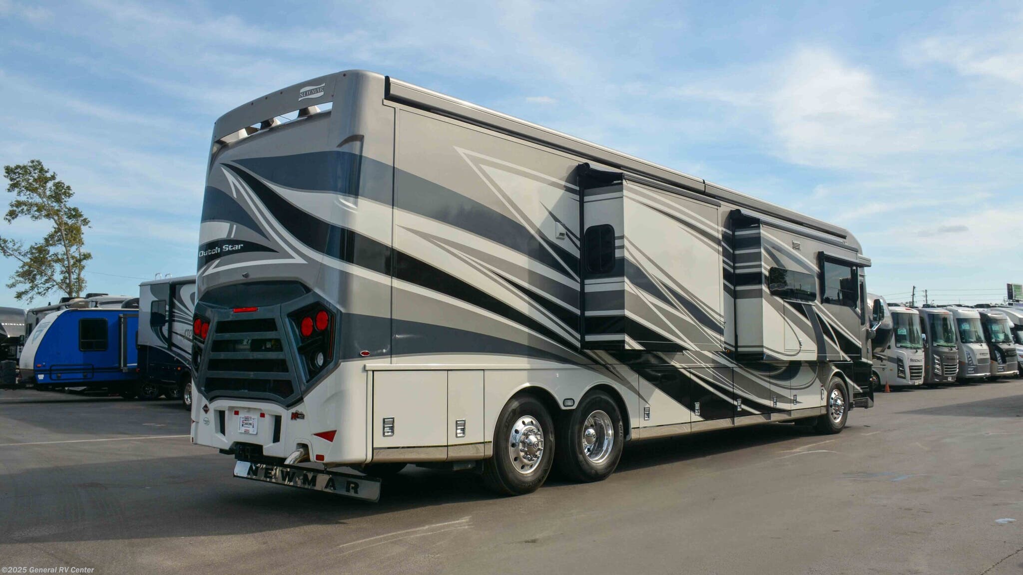 Experience luxury on the road with the 2021 Newmar Dutch Star 4369. This exquisite motorhome is designed for those who crave both adventure and comfort. With its spacious interior, this RV offers a front living area that invites relaxation, featuring plush seating and a convenient hide-a-bed sofa. The center kitchen is a culinary enthusiast's dream, equipped with a full-size electric refrigerator, convection cooking, and a three-burner cooktop, ensuring you can prepare gourmet meals wherever you go. Retreat to the center bedroom, where a king-size bed promises restful nights. The floorplan is thoughtfully designed with a rear and center bath, providing ample space and privacy. The Dutch Star also boasts a powered retractable awning, perfect for enjoying the outdoors in style. With a robust Cummins I6 Diesel Pusher engine and a Freightliner XC-Series chassis, this RV combines power with sophistication, making it your ideal travel companion. For more details and to experience this luxury firsthand, visit your nearest General RV Dealership.