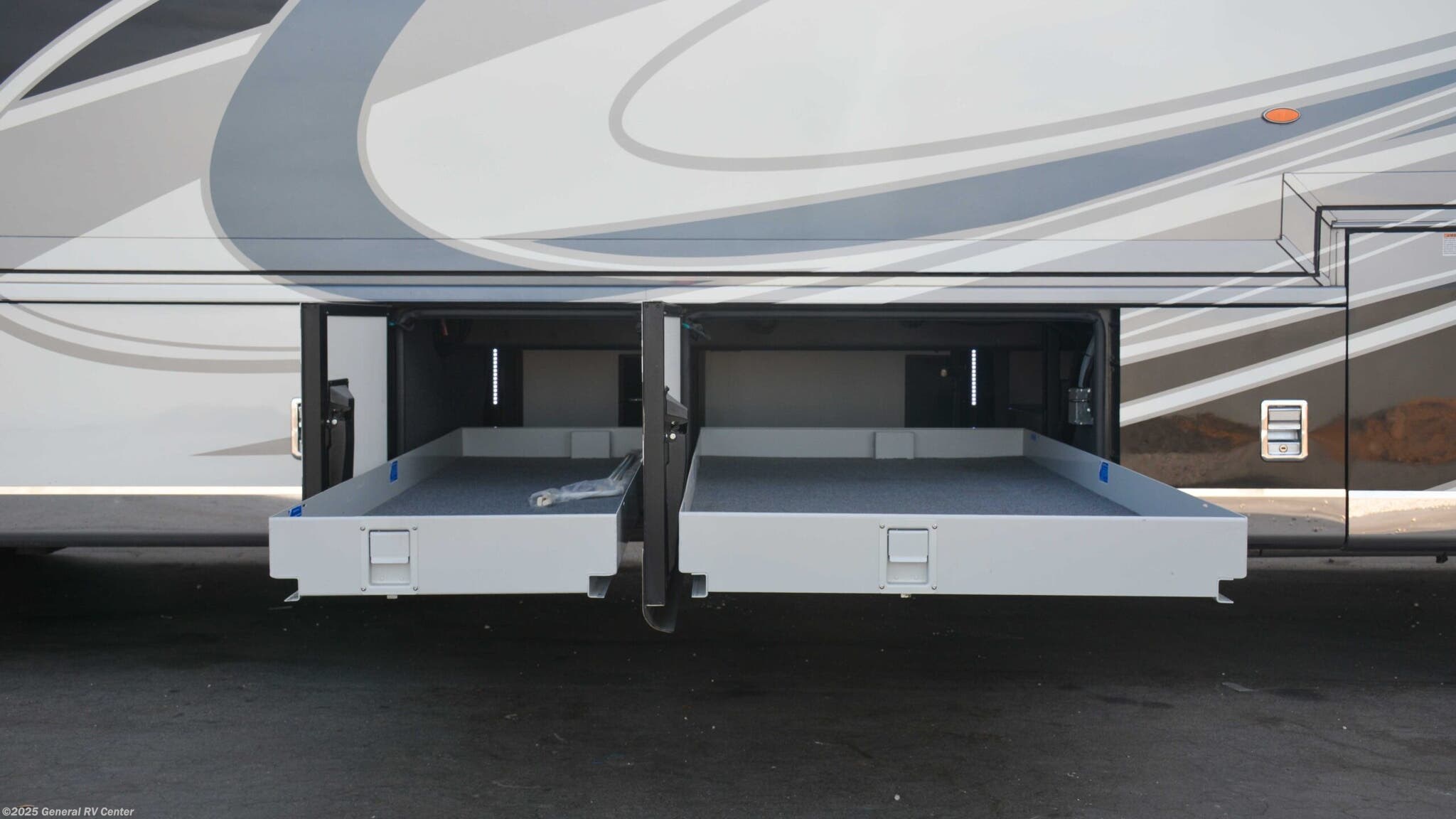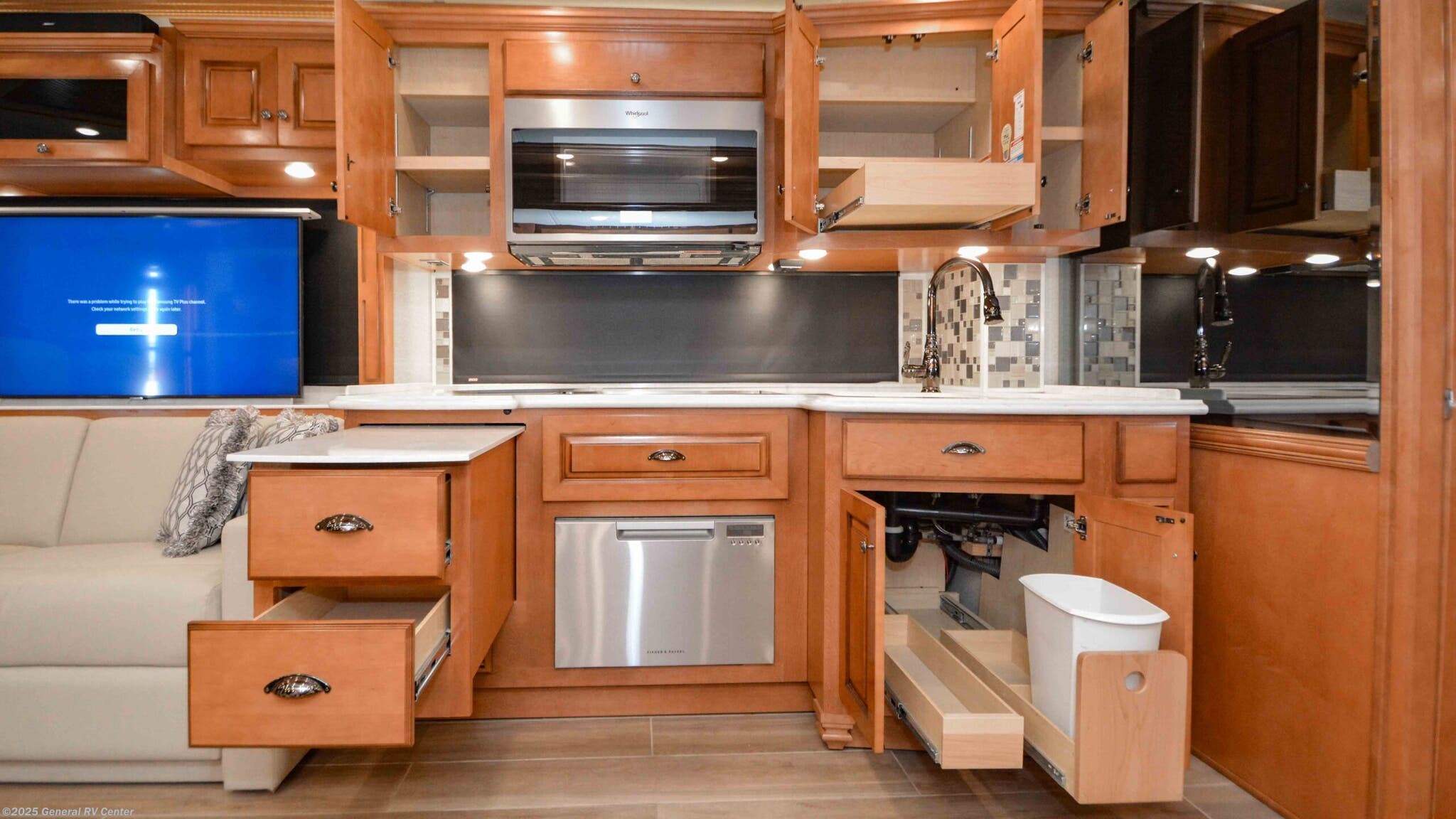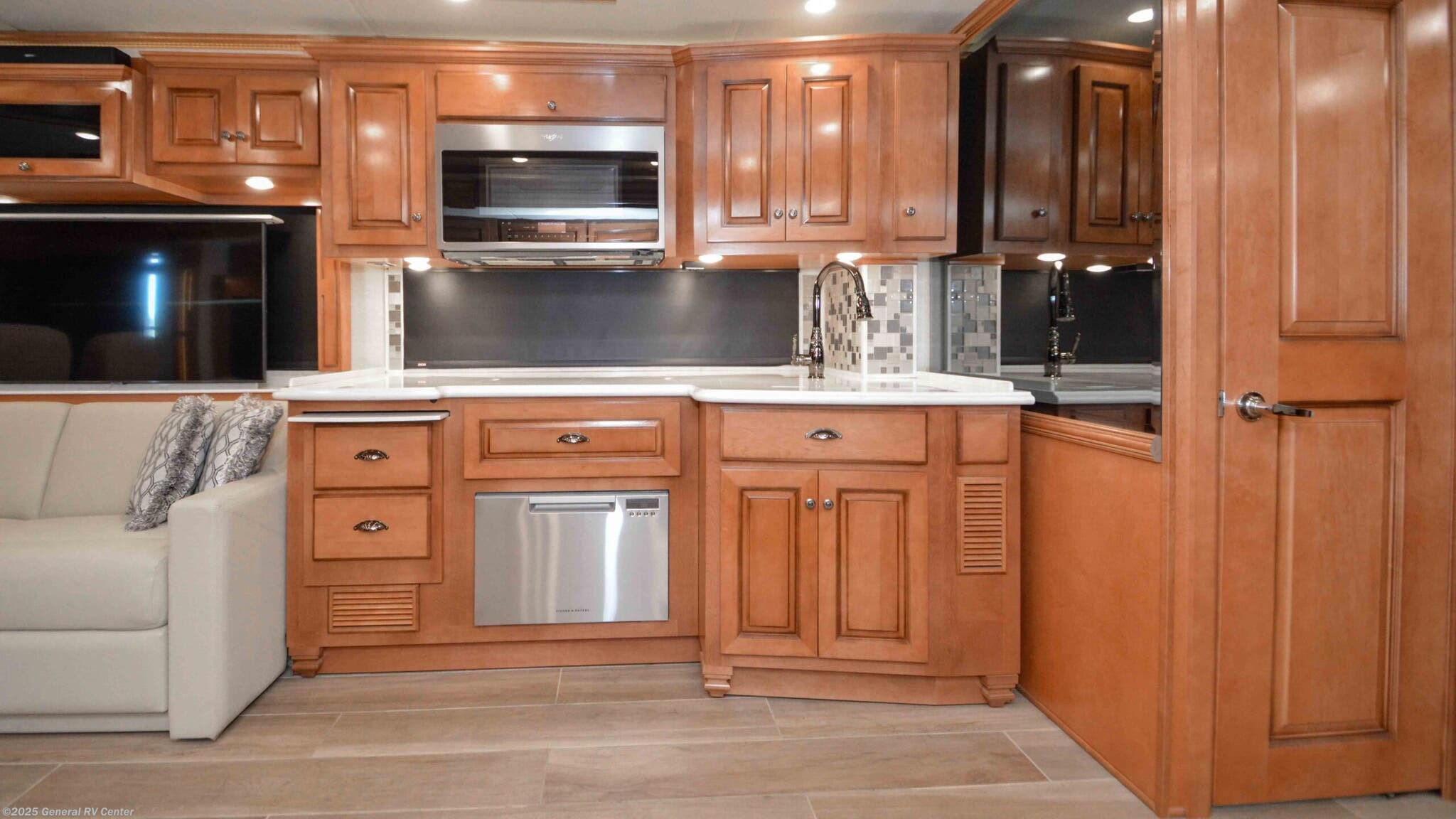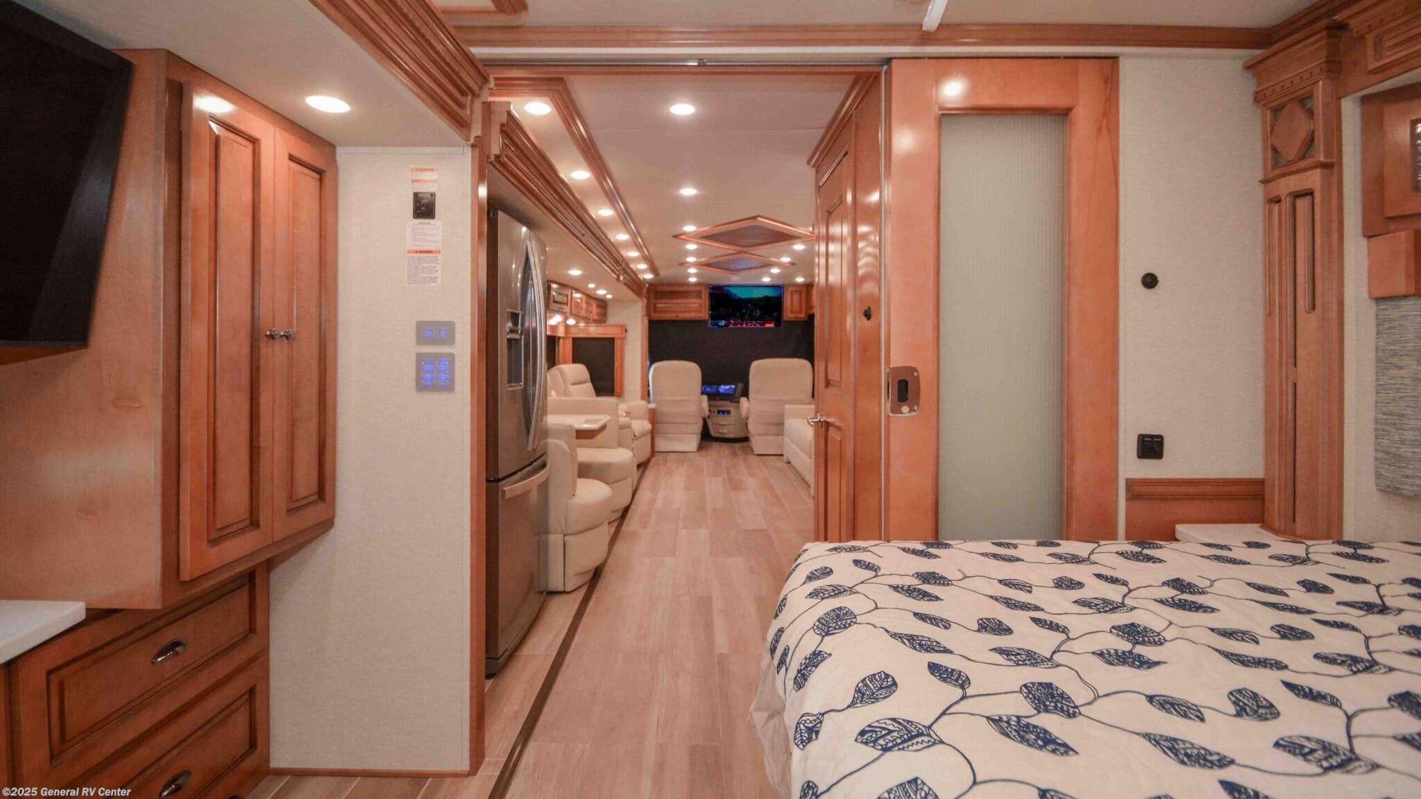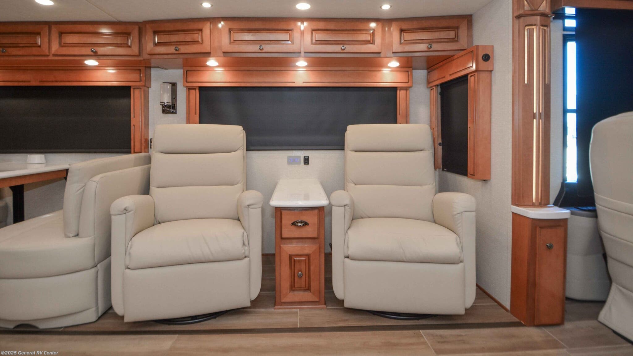 Experience luxury on the road with the 2021 Newmar Dutch Star 4369. This exquisite motorhome is designed for those who crave both adventure and comfort. With its spacious interior, this RV offers a front living area that invites relaxation, featuring plush seating and a convenient hide-a-bed sofa. The center kitchen is a culinary enthusiast's dream, equipped with a full-size electric refrigerator, convection cooking, and a three-burner cooktop, ensuring you can prepare gourmet meals wherever you go. Retreat to the center bedroom, where a king-size bed promises restful nights. The floorplan is thoughtfully designed with a rear and center bath, providing ample space and privacy. The Dutch Star also boasts a powered retractable awning, perfect for enjoying the outdoors in style. With a robust Cummins I6 Diesel Pusher engine and a Freightliner XC-Series chassis, this RV combines power with sophistication, making it your ideal travel companion. For more details and to experience this luxury firsthand, visit your nearest General RV Dealership.