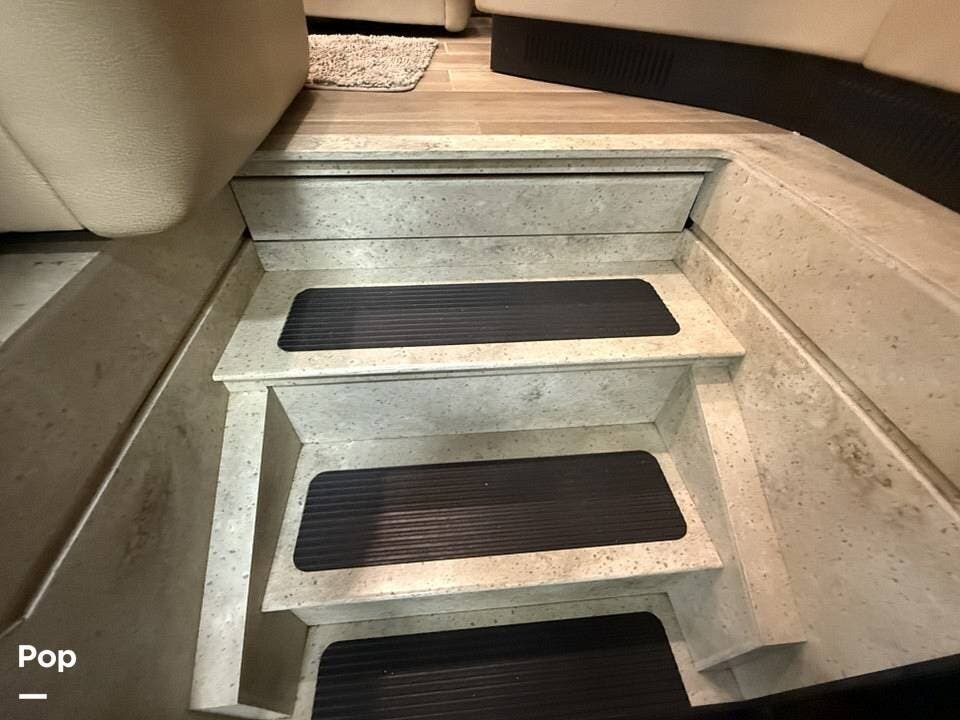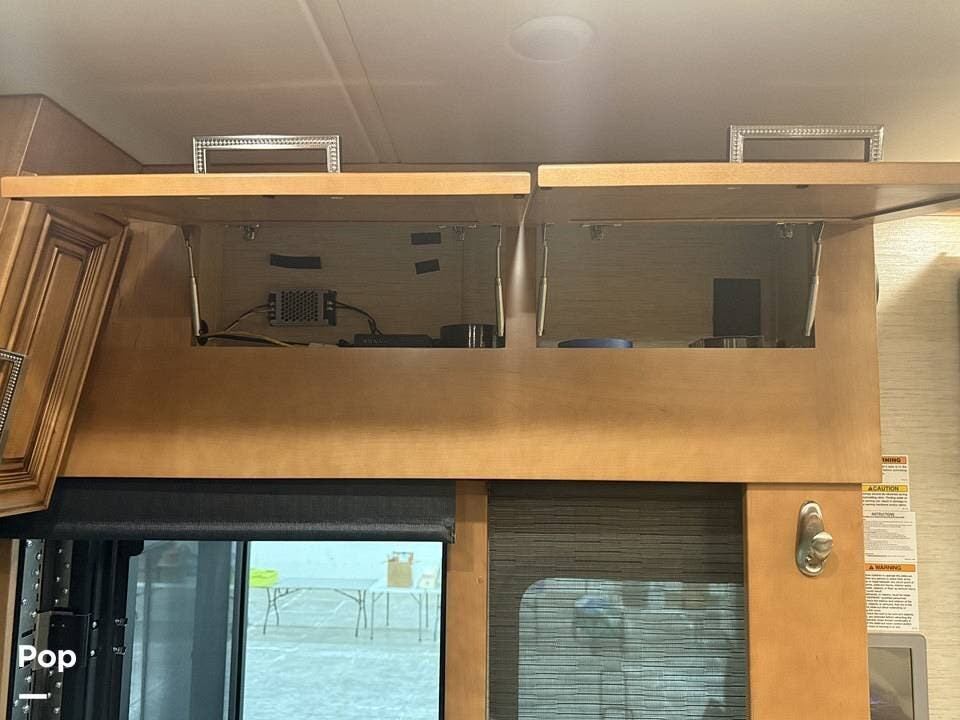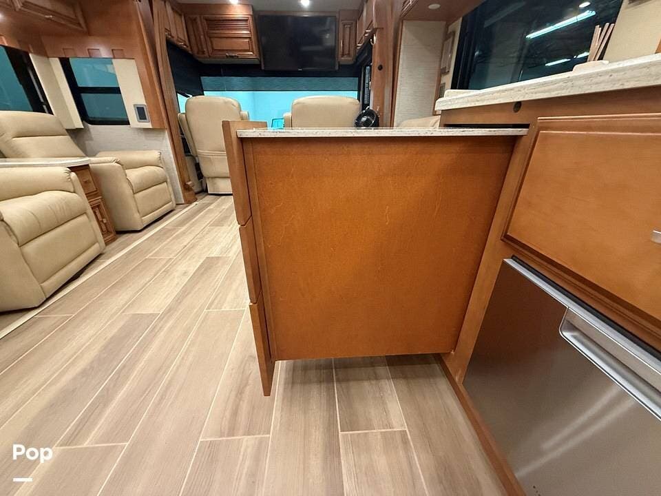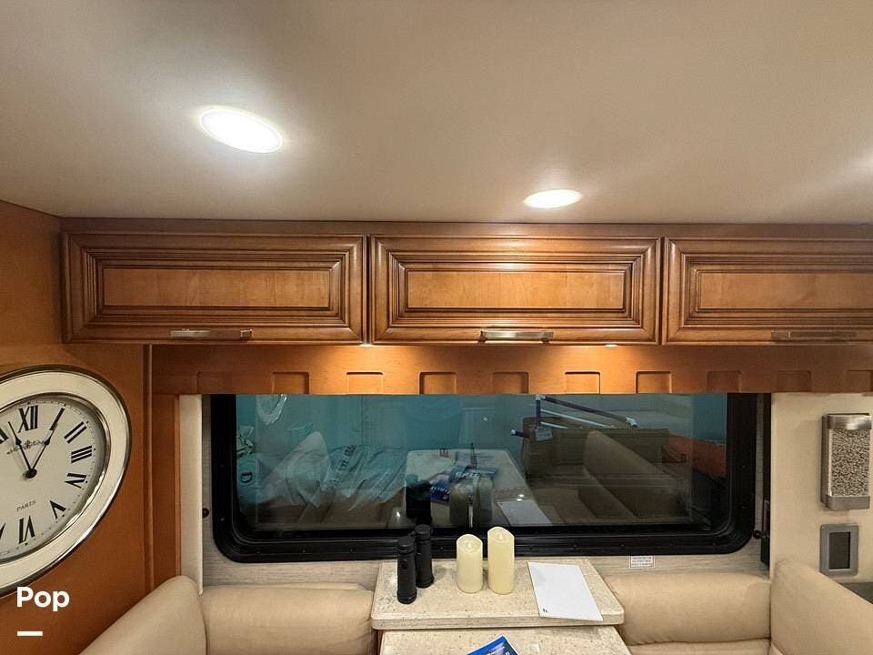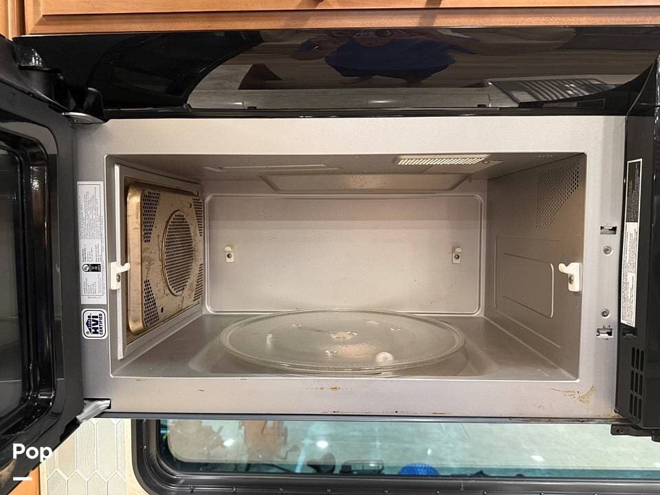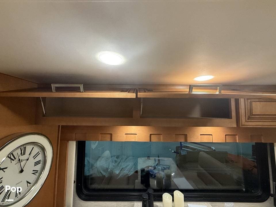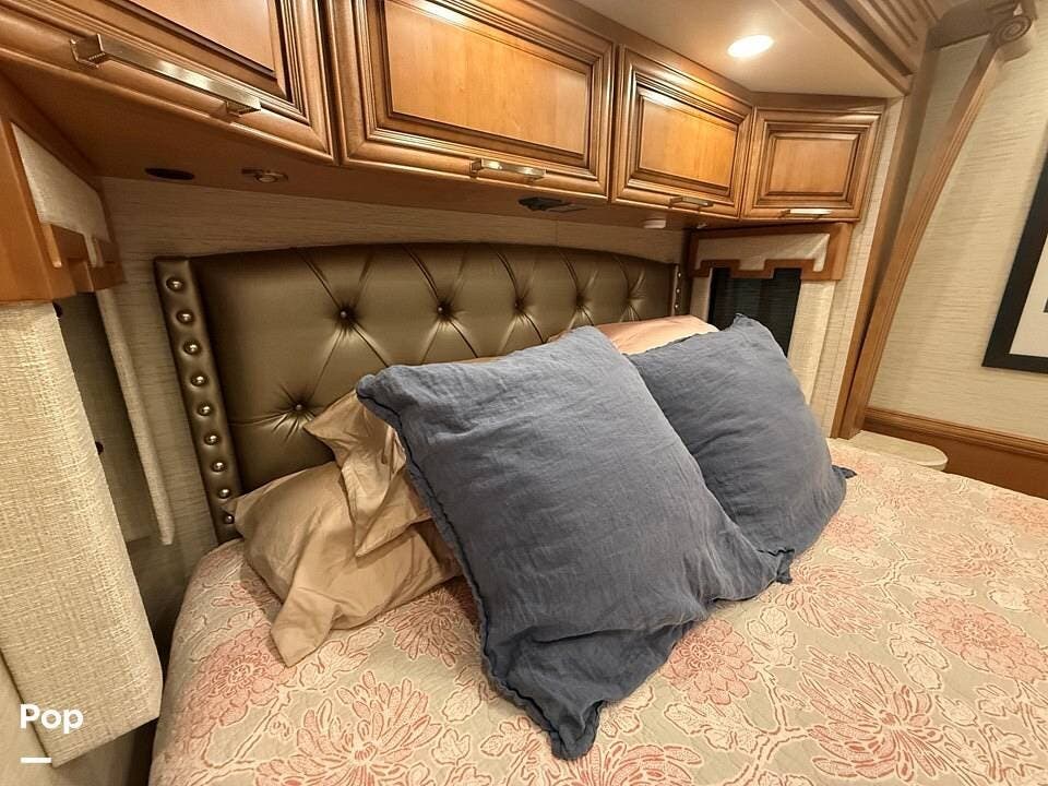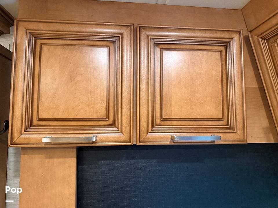 Inside, you'll find top-of-the-line residential features, including a full-sized French door refrigerator/freezer, a two-burner induction cooktop, a convection microwave oven, a large single-bowl sink, a dishwasher, a slide-out countertop extension with drawers, a pantry, a washer and dryer, and a built-in safe. Motion-powered shades and a basement-mounted refrigerator/freezer provide added convenience and storage flexibility for extended journeys.