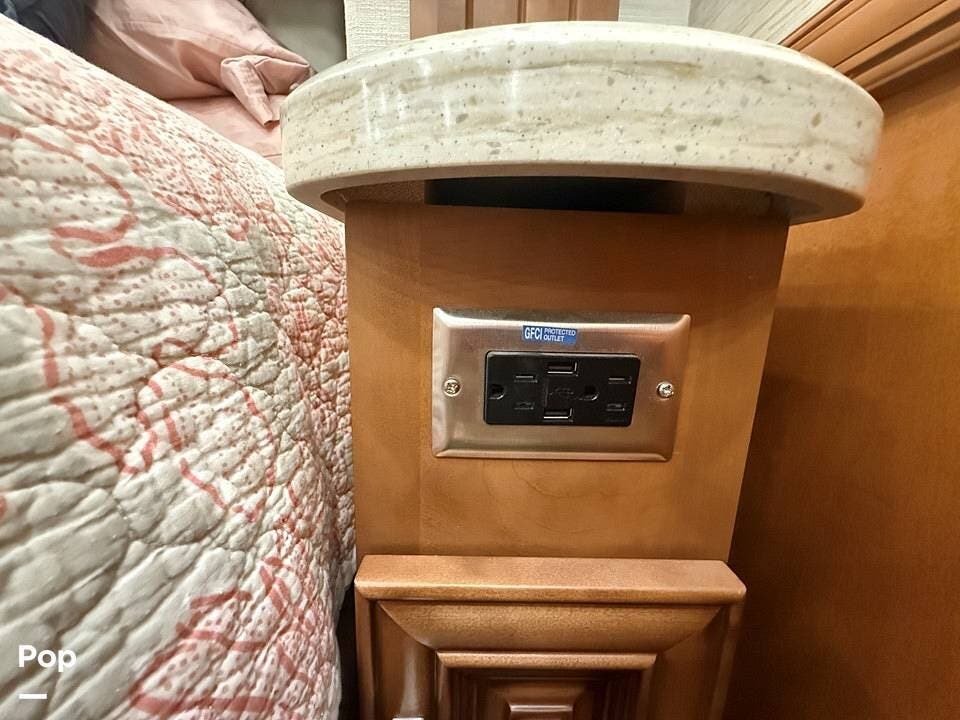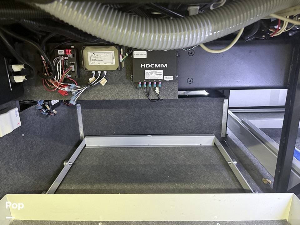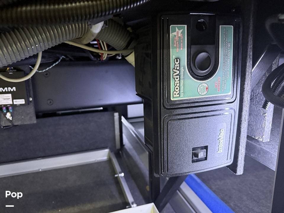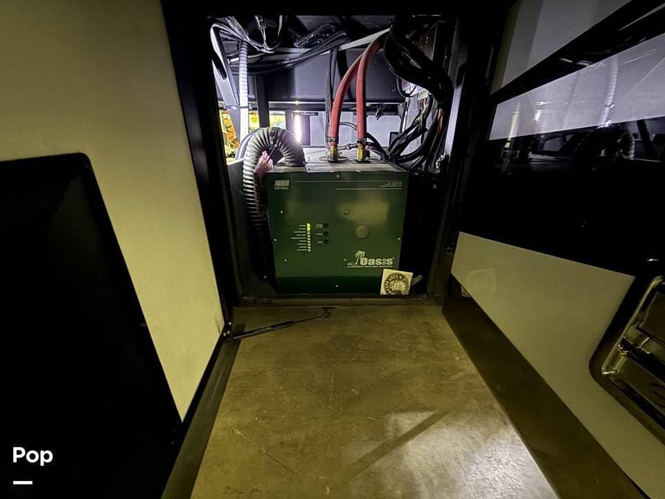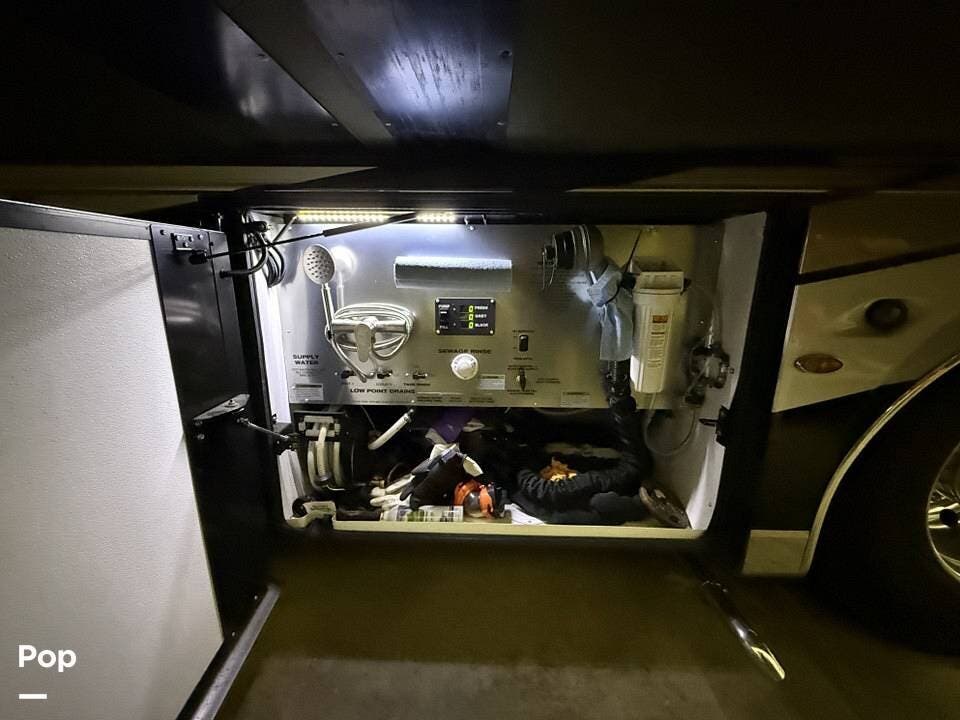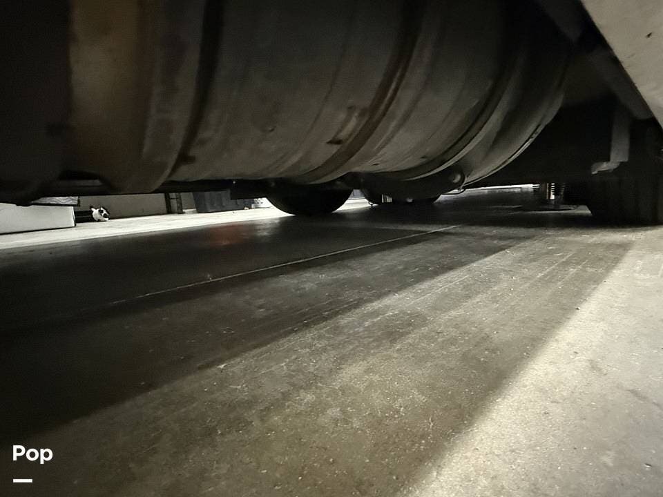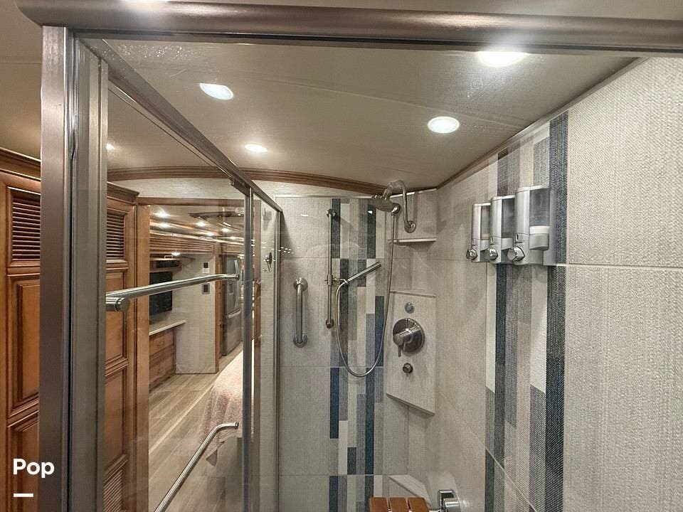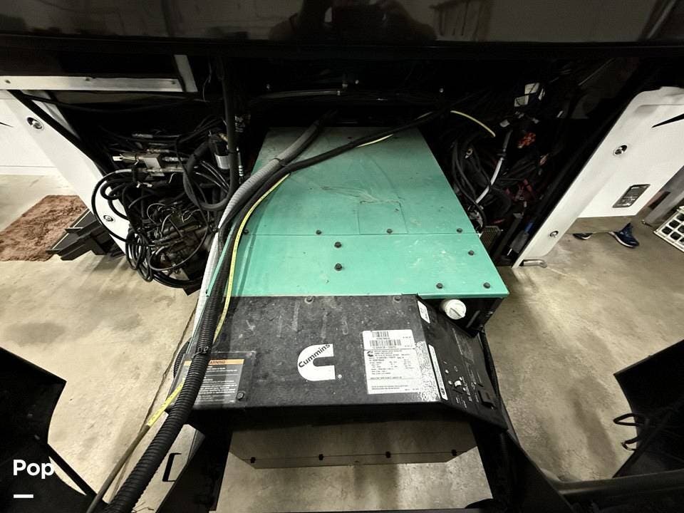 Climate control is provided by three roof-mounted Penguin AC/heat pumps, which collectively produce a total of 45,000 BTUs. Off-grid capability is supported by a six-bank house battery system and a 12.5 kW Onan diesel generator.