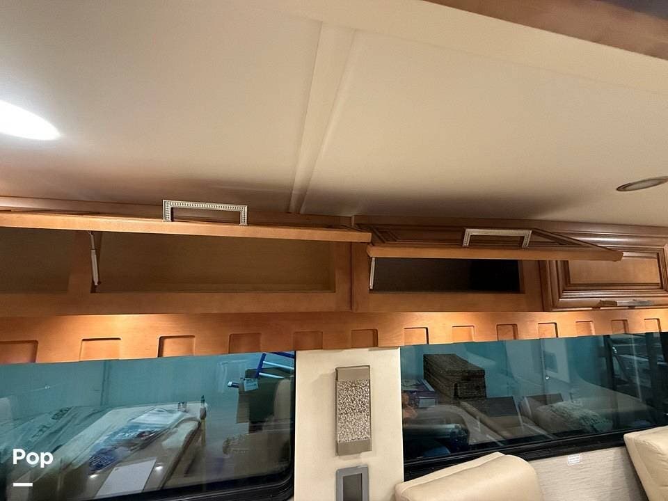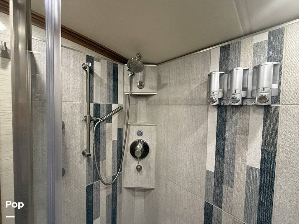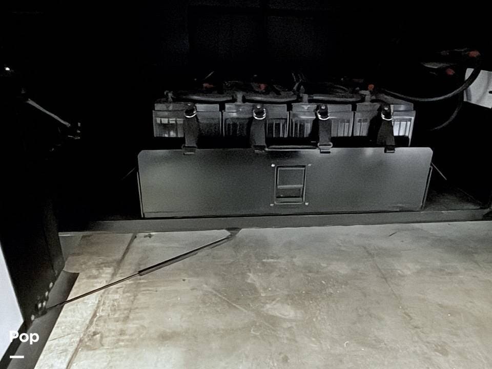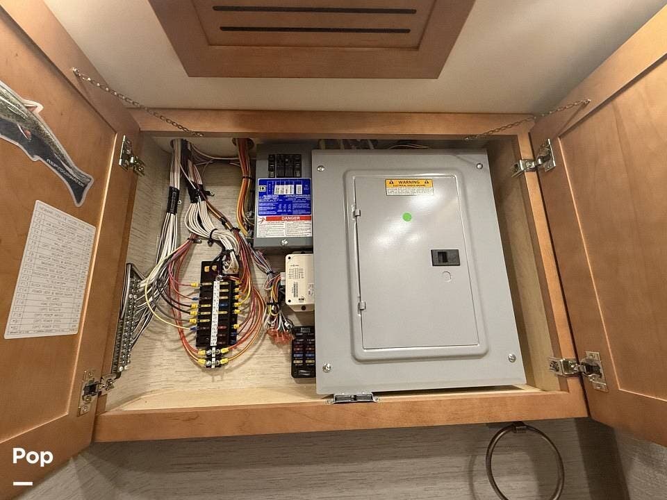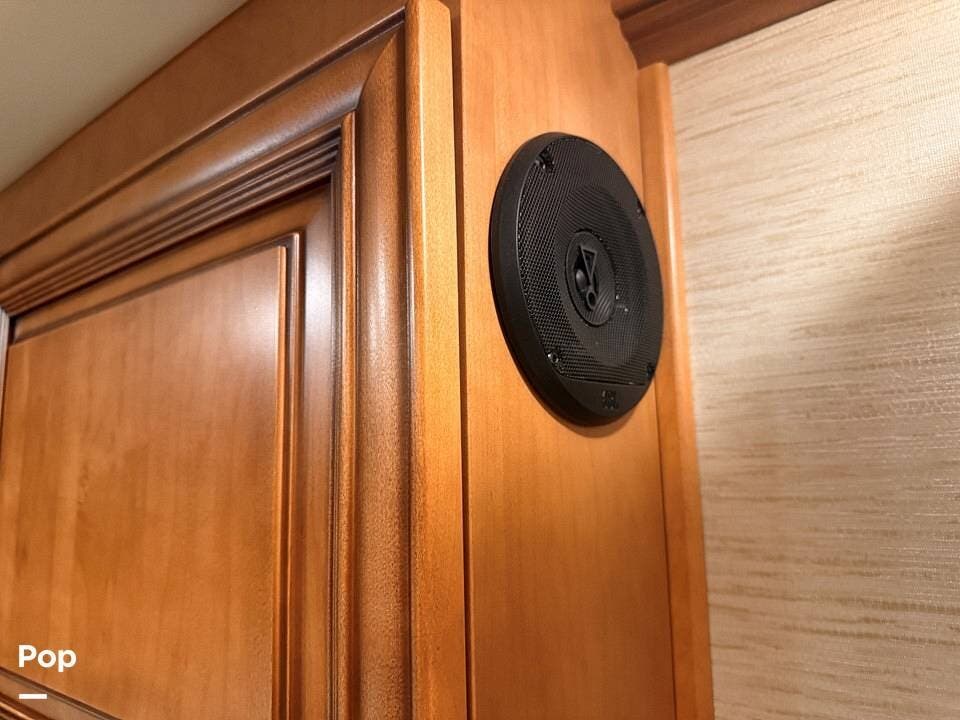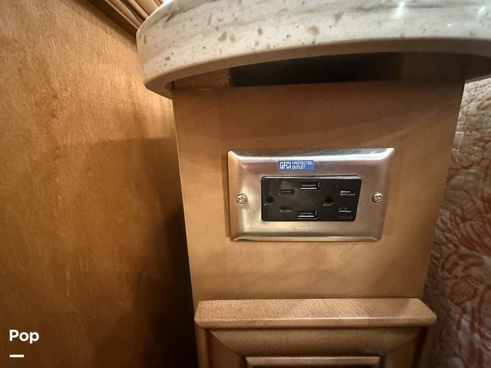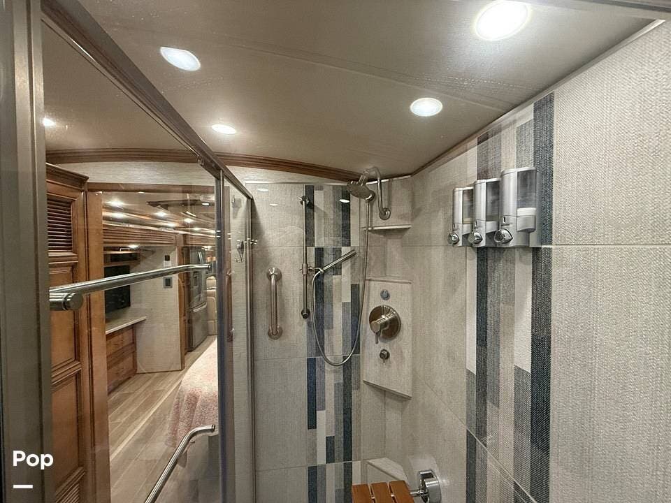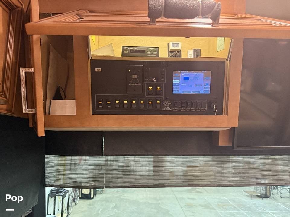 Climate control is provided by three roof-mounted Penguin AC/heat pumps, which collectively produce a total of 45,000 BTUs. Off-grid capability is supported by a six-bank house battery system and a 12.5 kW Onan diesel generator.