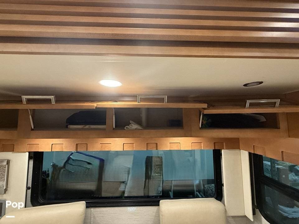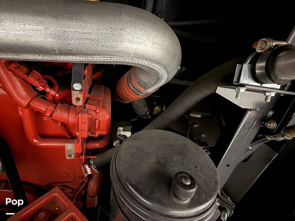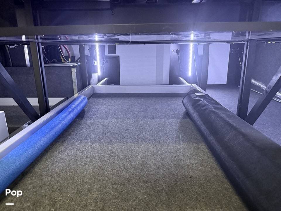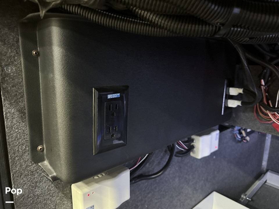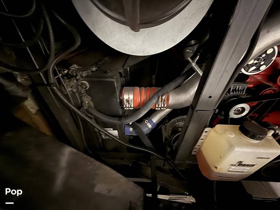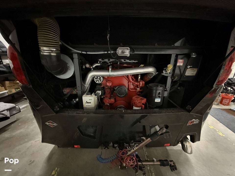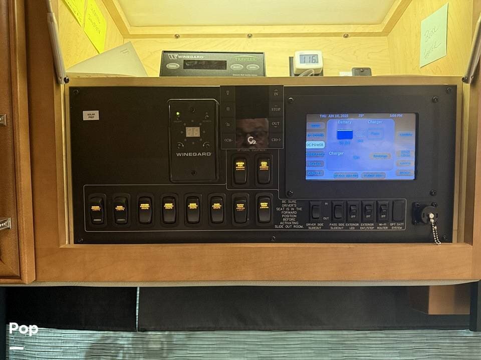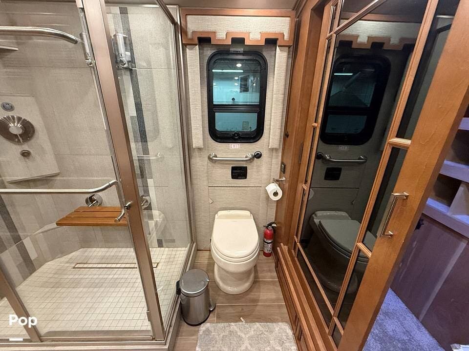 Climate control is provided by three roof-mounted Penguin AC/heat pumps, which collectively produce a total of 45,000 BTUs. Off-grid capability is supported by a six-bank house battery system and a 12.5 kW Onan diesel generator.