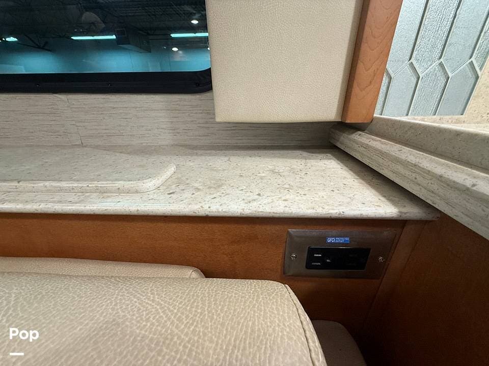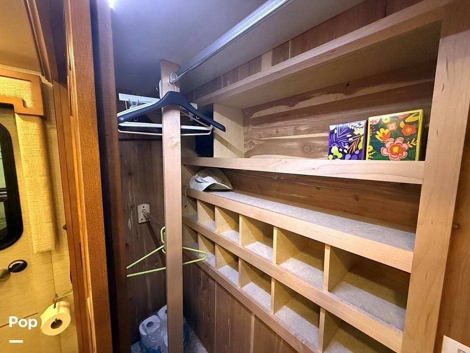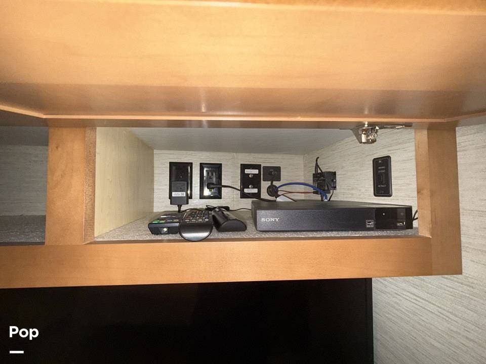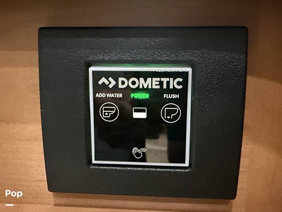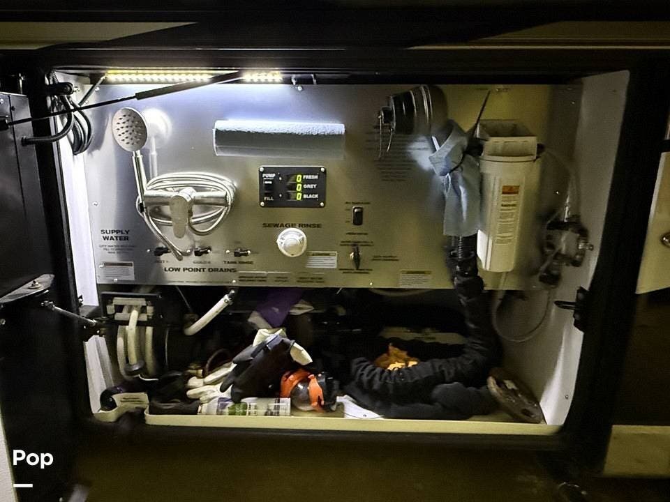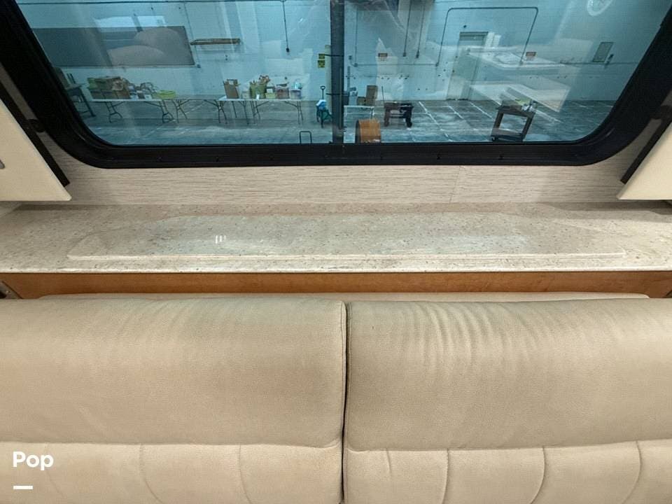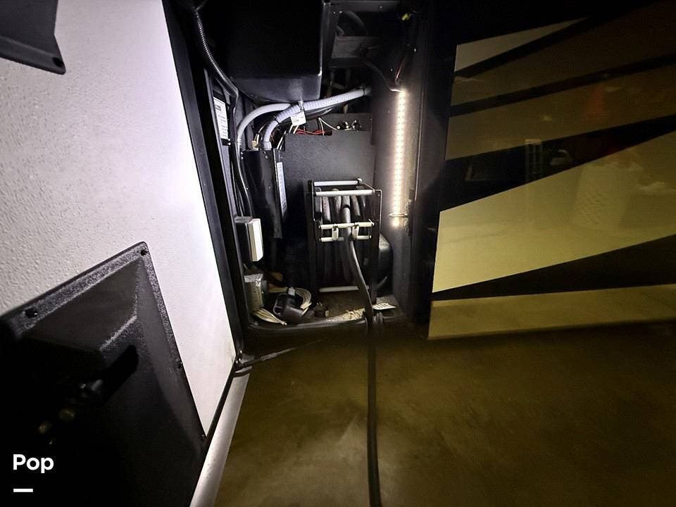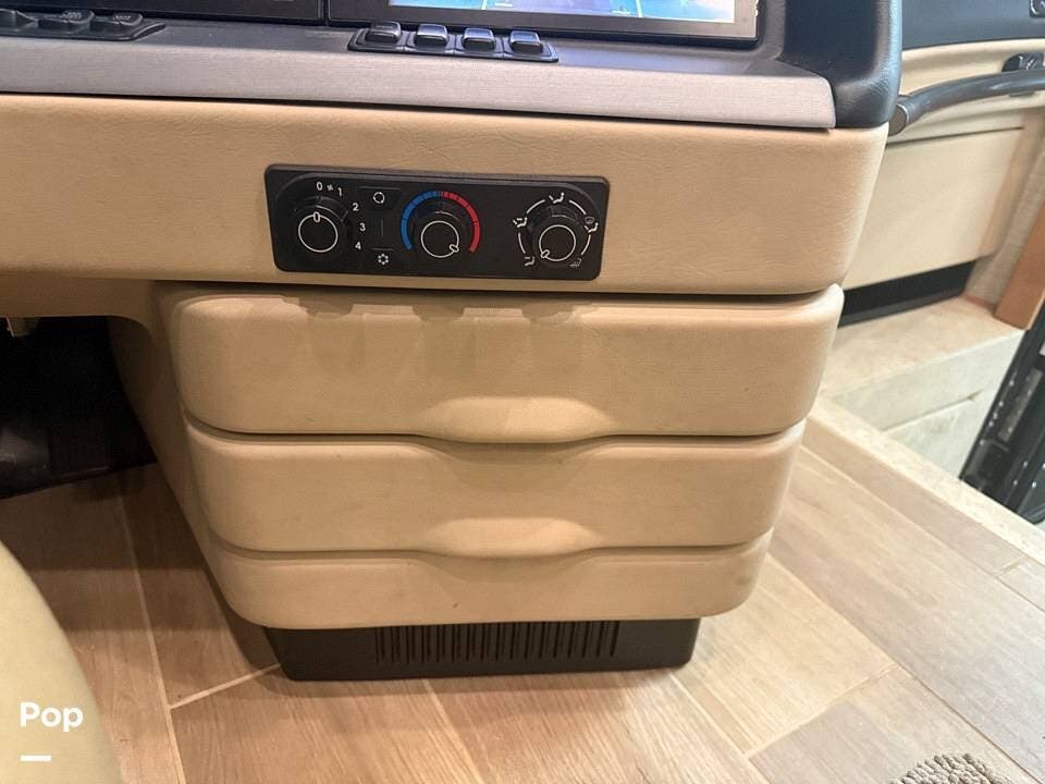 Climate control is provided by three roof-mounted Penguin AC/heat pumps, which collectively produce a total of 45,000 BTUs. Off-grid capability is supported by a six-bank house battery system and a 12.5 kW Onan diesel generator.