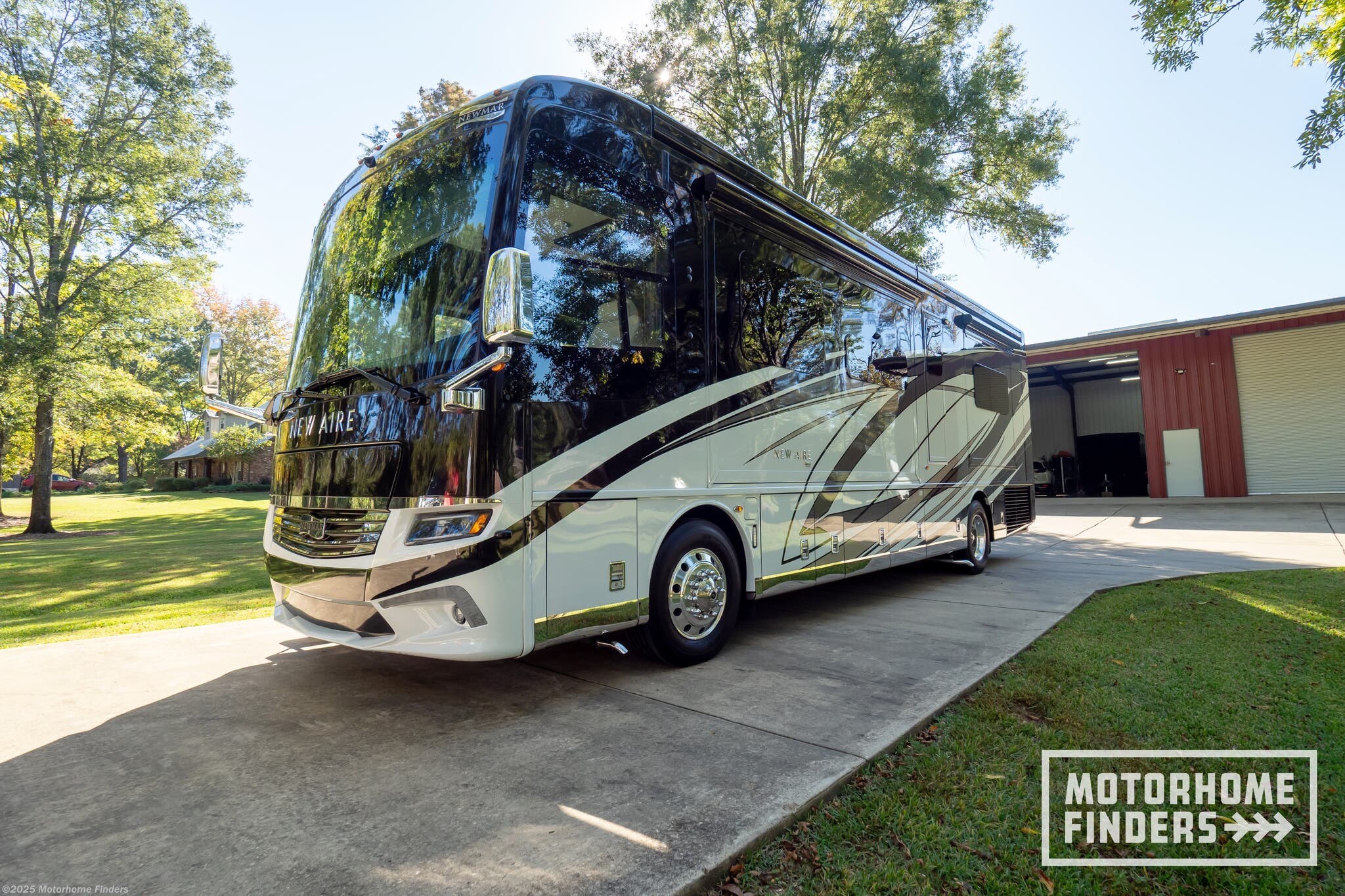 This 2021 Newmar New Aire 3541 represents the pinnacle of Newmar craftsmanship in a 35-foot, tagless luxury diesel pusher. Built on the Spartan 450HP chassis with Comfort Drive™ steering, it delivers effortless control and confidence on the road. Impeccably maintained and ceramic coated, this all-electric coach blends exceptional comfort, intelligent design, and high-end finishes throughout.