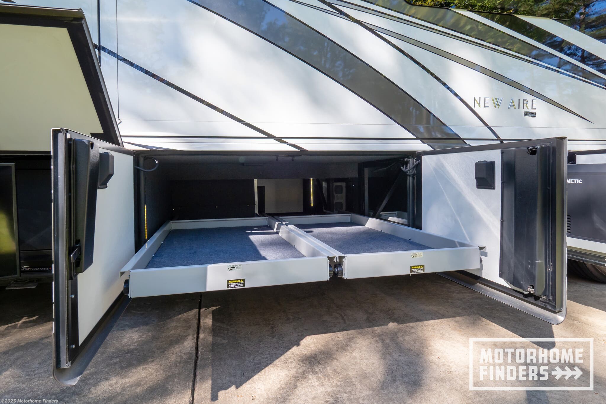Slide-Out Storage Trays (Power-Operated) – Three power trays for easy access to basement storage.
