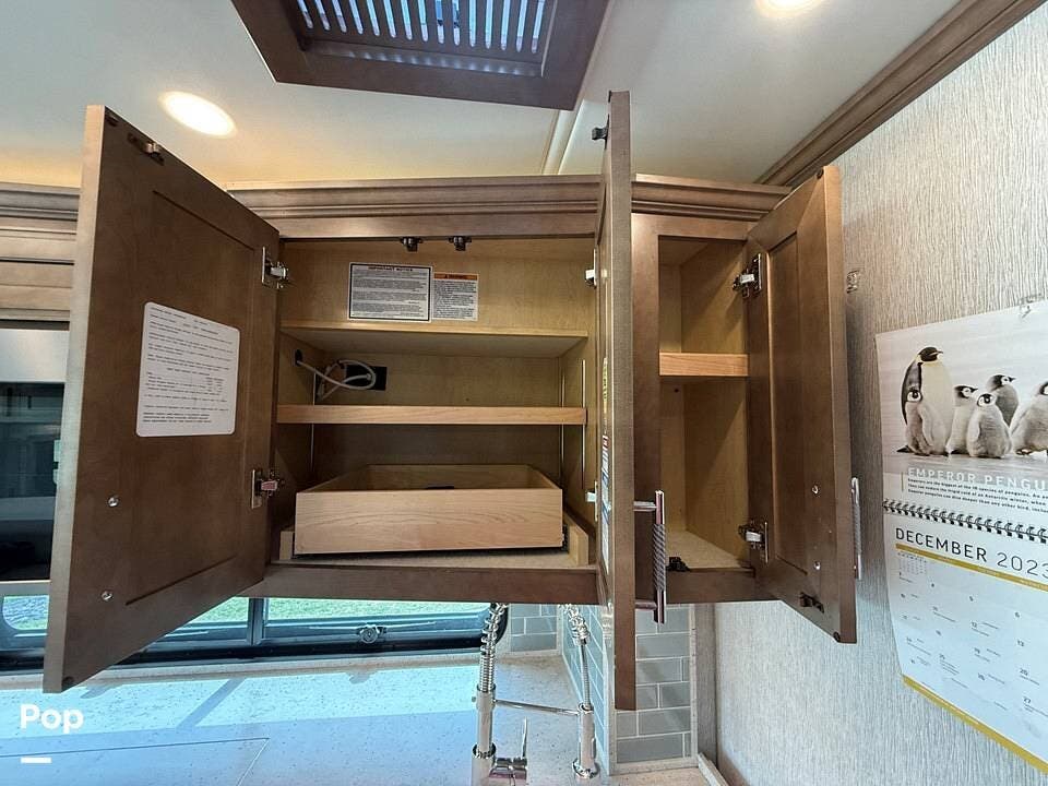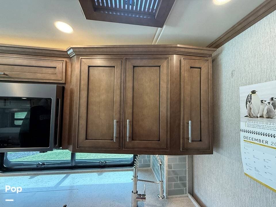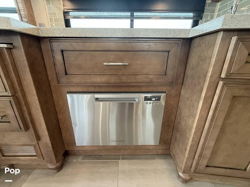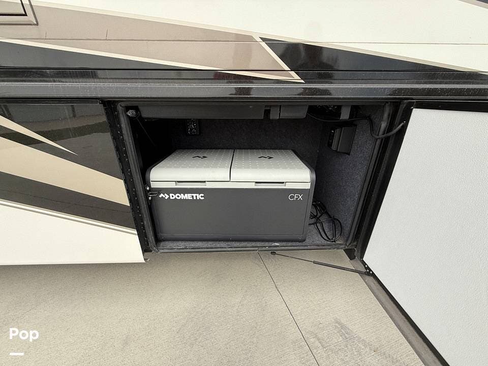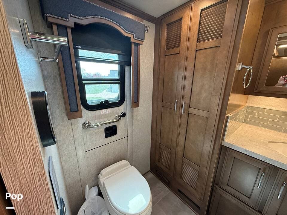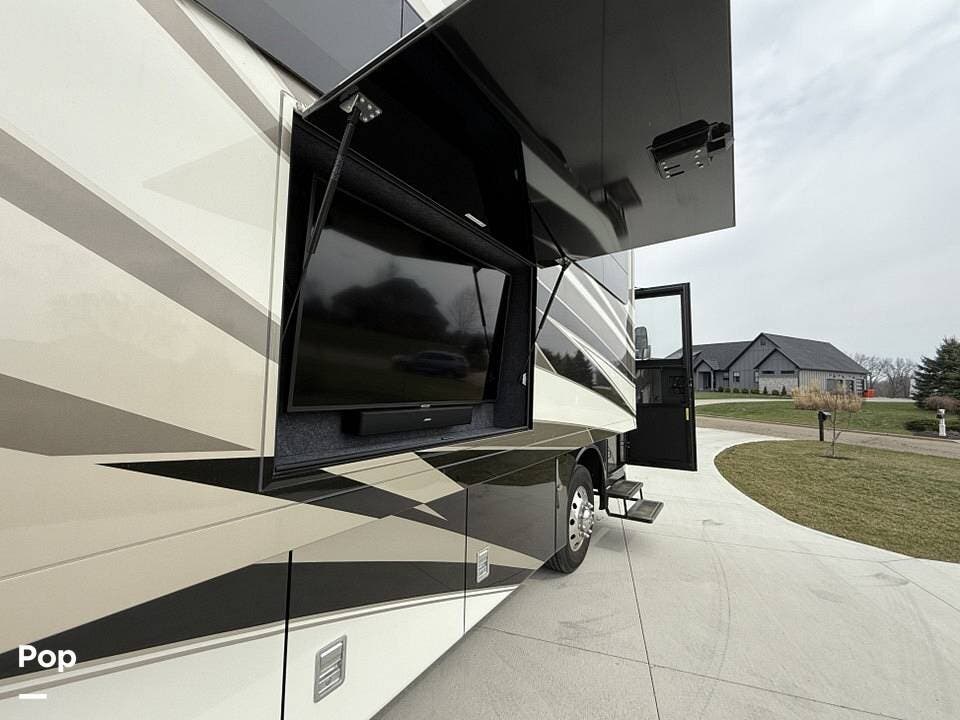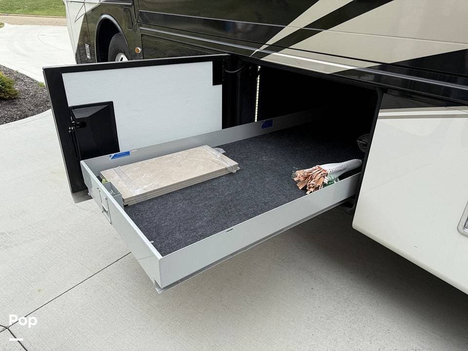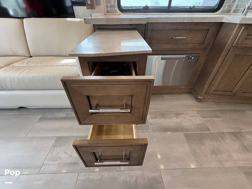 This coach also boasts a towing system, multiple camera systems, driver monitors, a tag axle for a reduced turning radius, and numerous luxurious features for the ultimate travel experience.