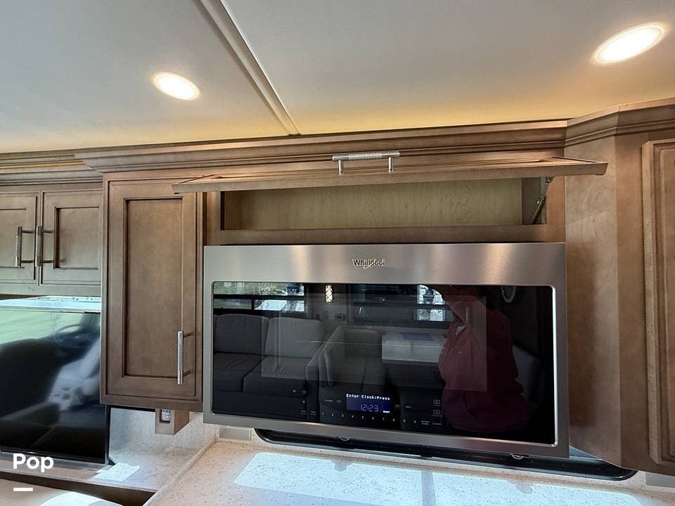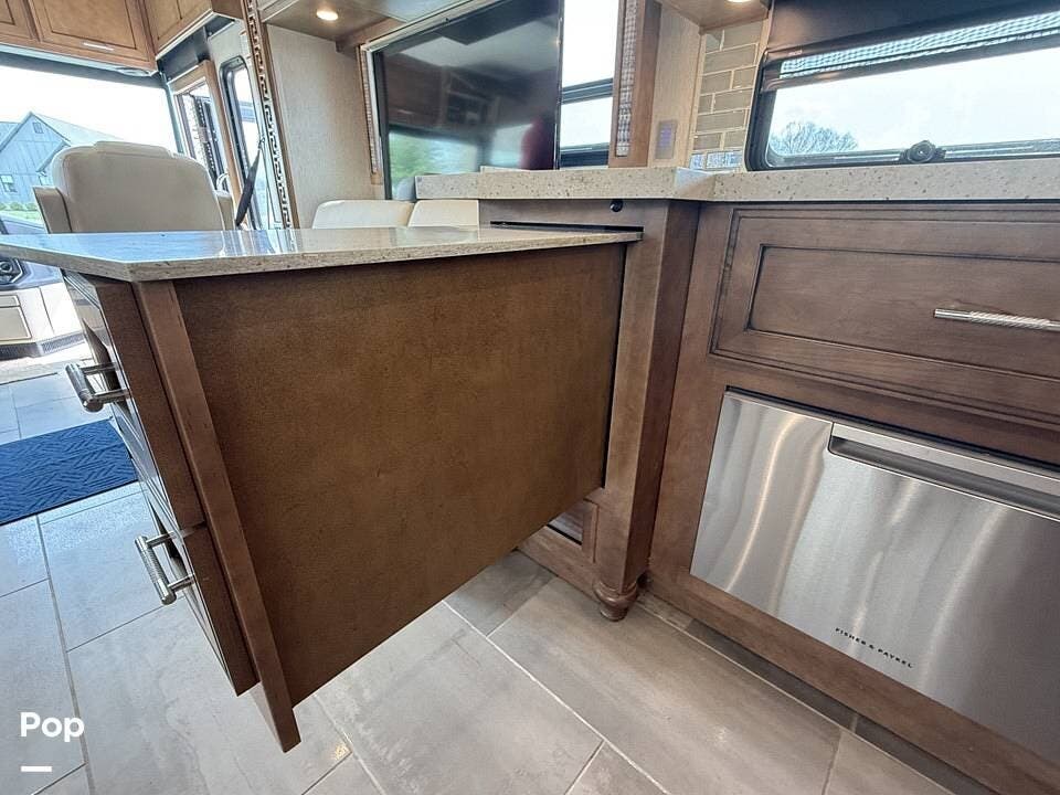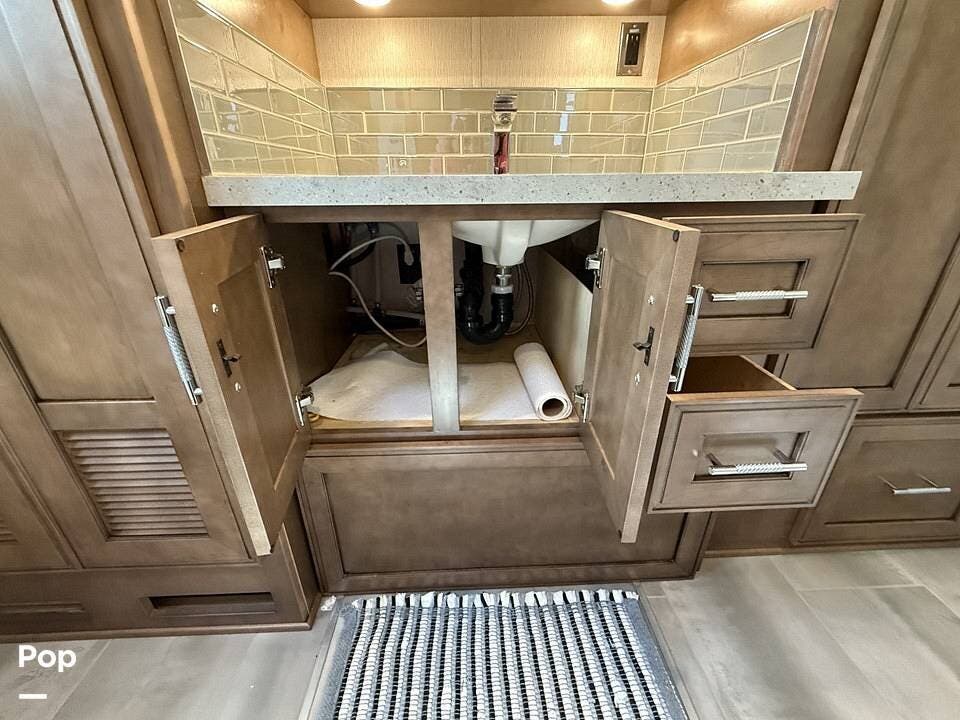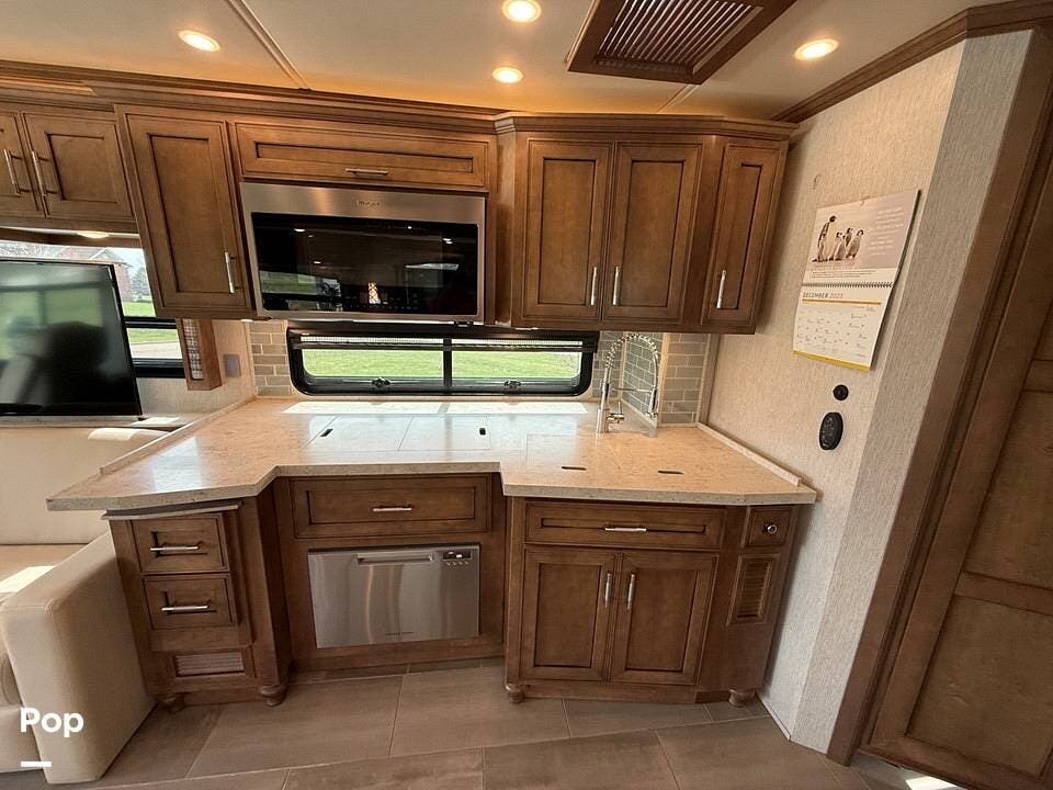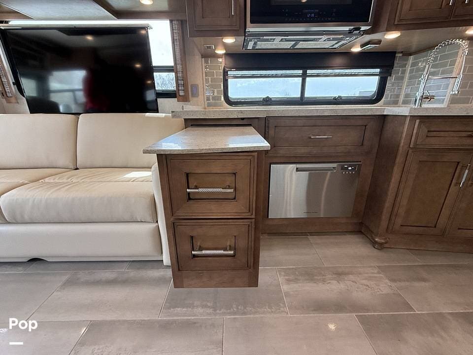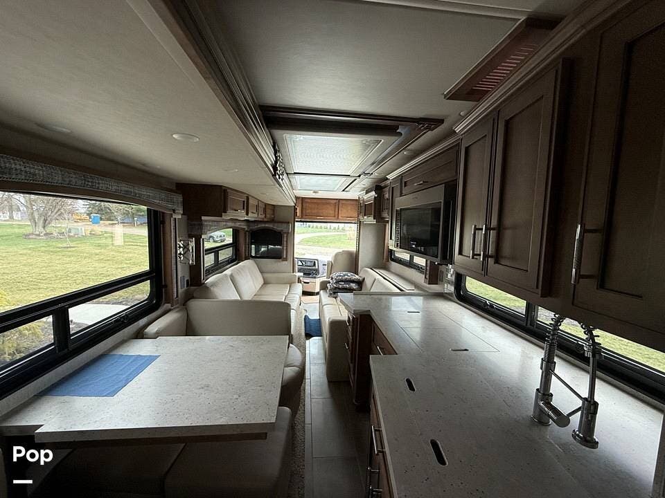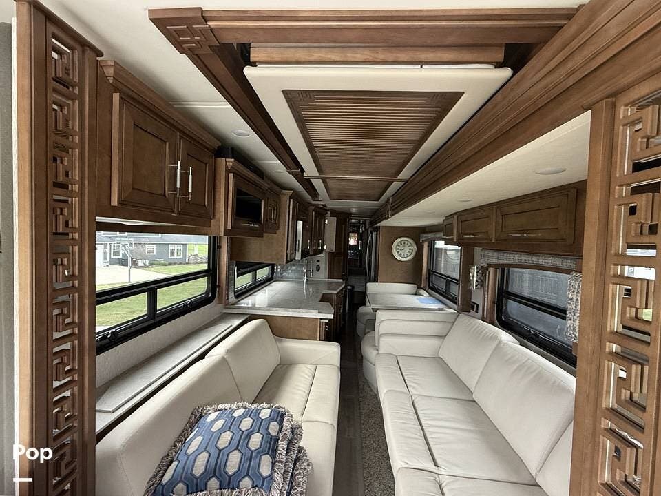 This coach also boasts a towing system, multiple camera systems, driver monitors, a tag axle for a reduced turning radius, and numerous luxurious features for the ultimate travel experience.
