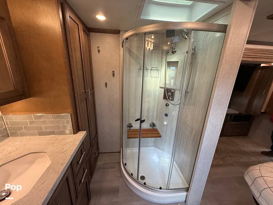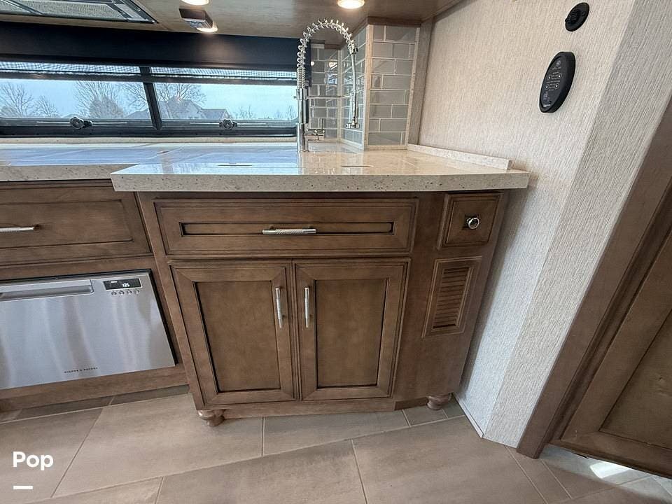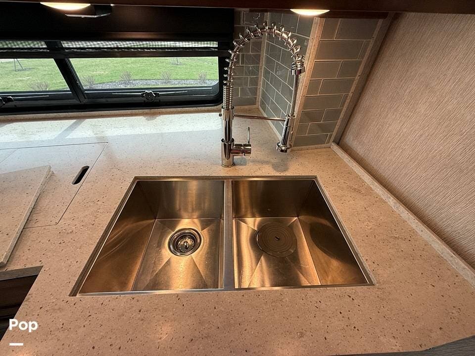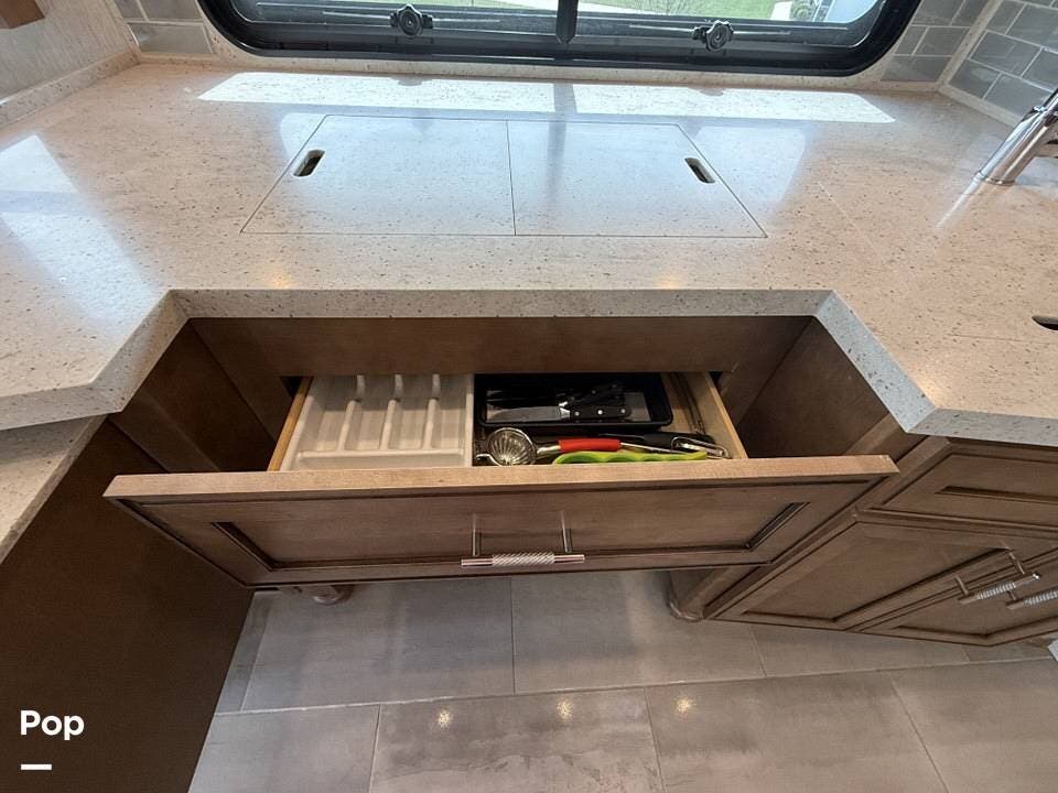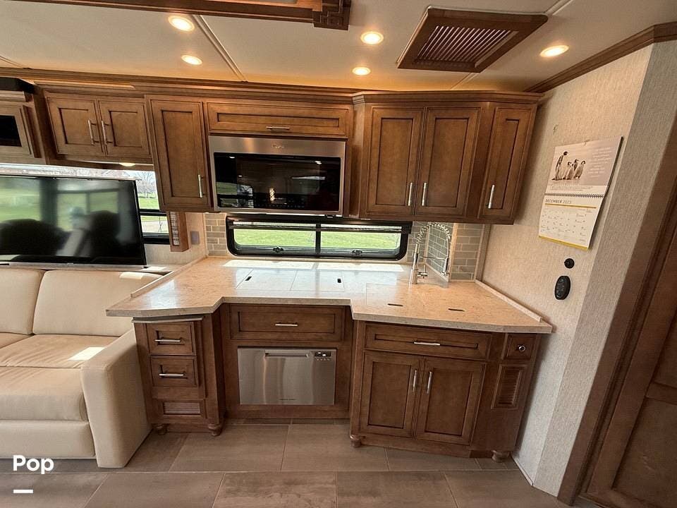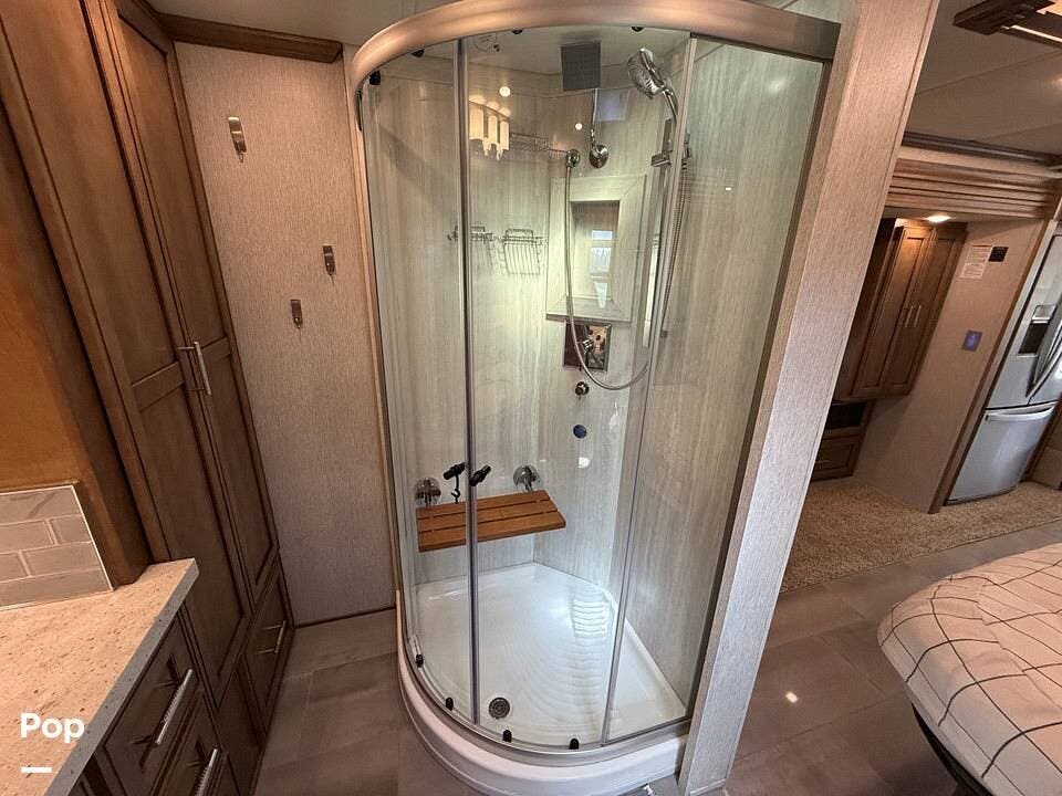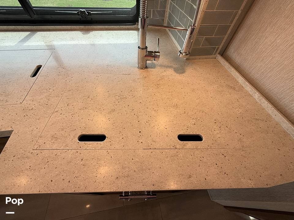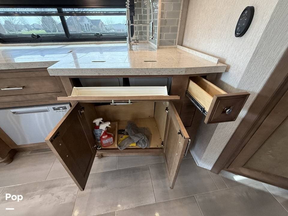 This coach also boasts a towing system, multiple camera systems, driver monitors, a tag axle for a reduced turning radius, and numerous luxurious features for the ultimate travel experience.