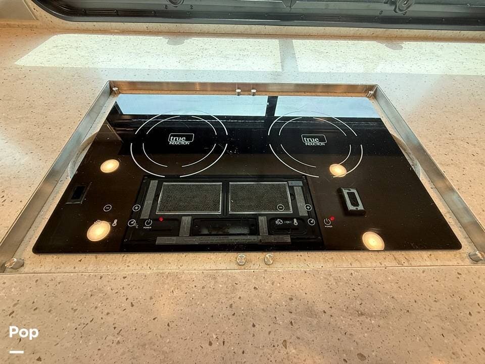The kitchen impresses with abundant counter space, a pull-out prep counter, a dishwasher, a convection microwave oven, an induction cooktop, a full-size refrigerator, and a pantry with pull-out drawers.