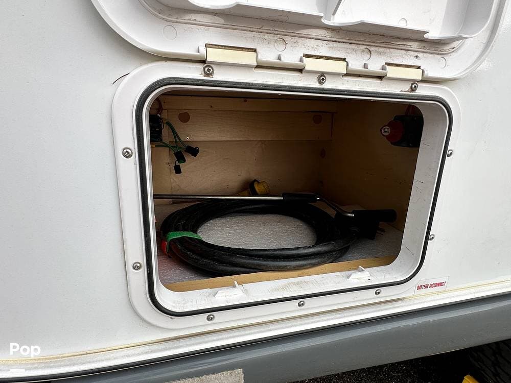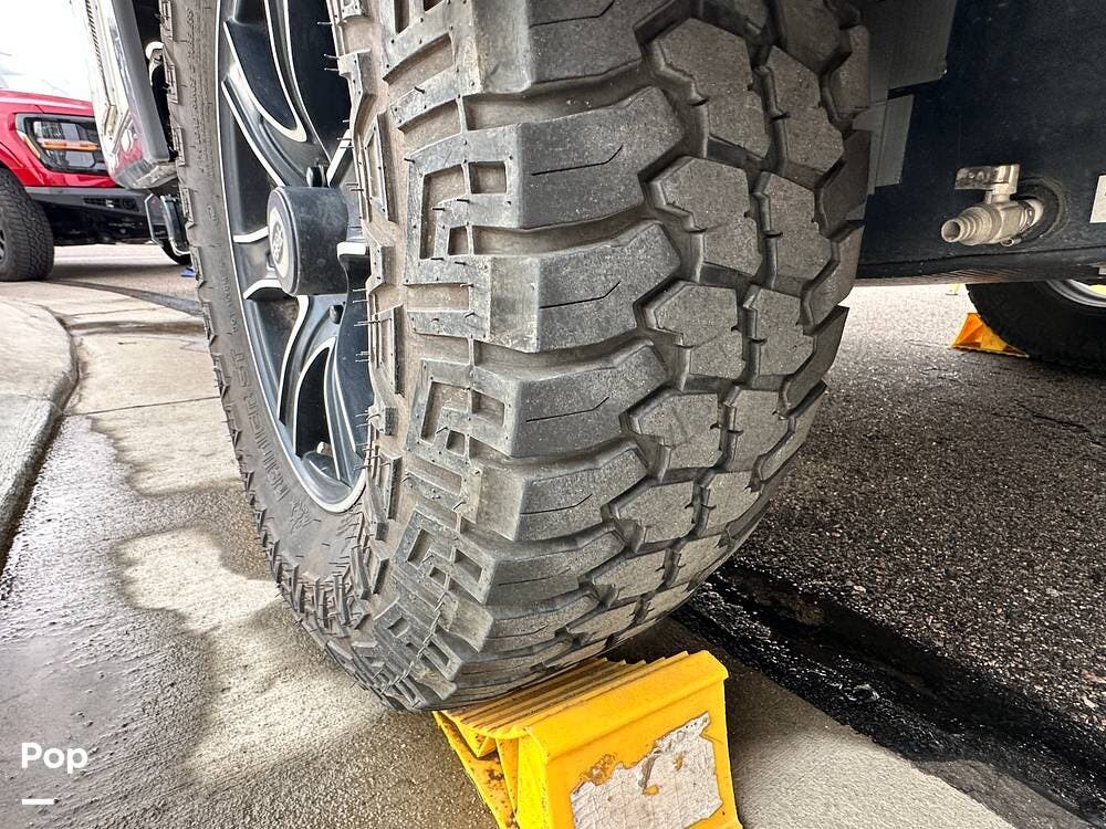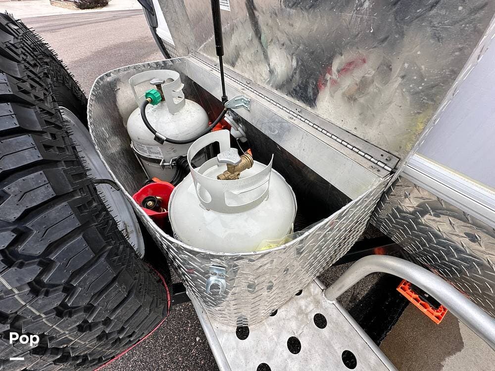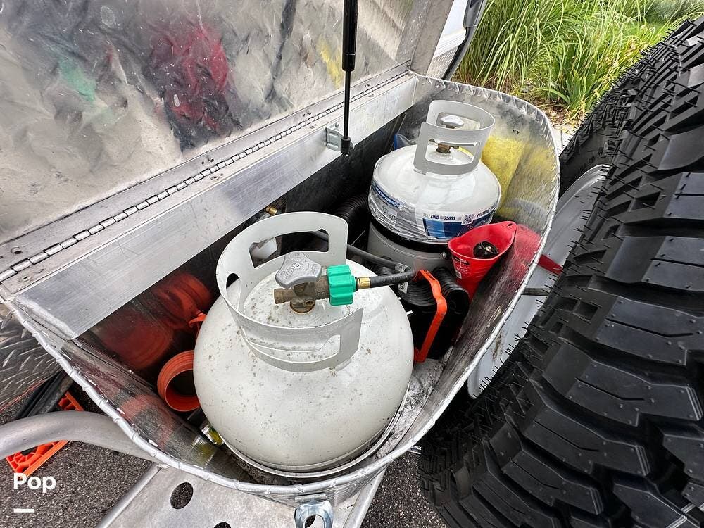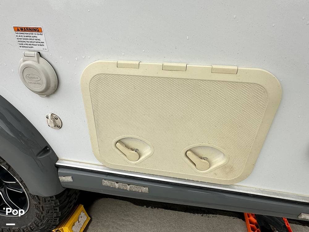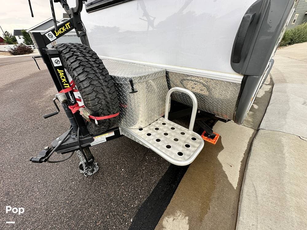 This lightweight, easily towable trailer with a 5k tow capacity is also equipped with the optional Boondock package, which includes 15" Sport Rims with aggressive off-road tires, an extra 3" of ground clearance, a front utility platform, and a heavy-duty entry step.