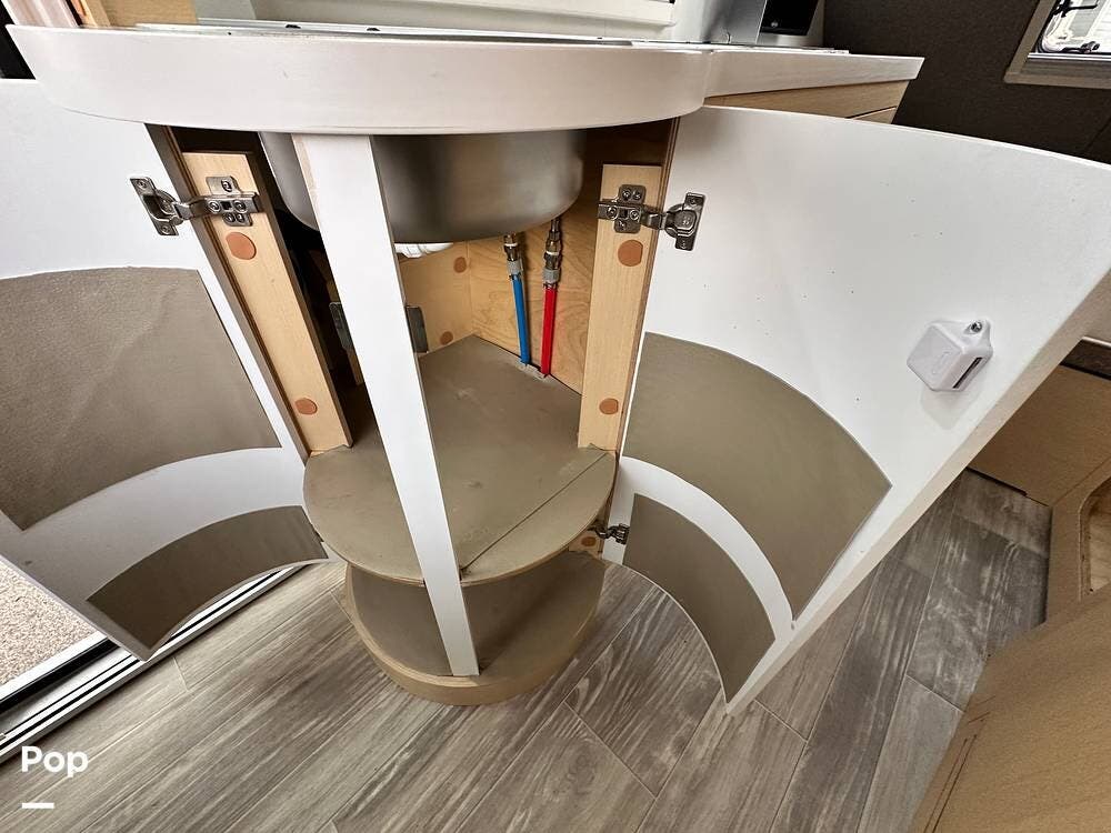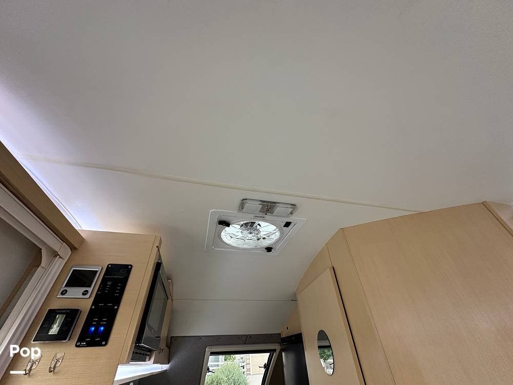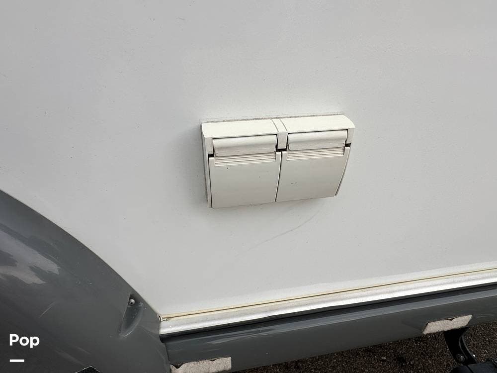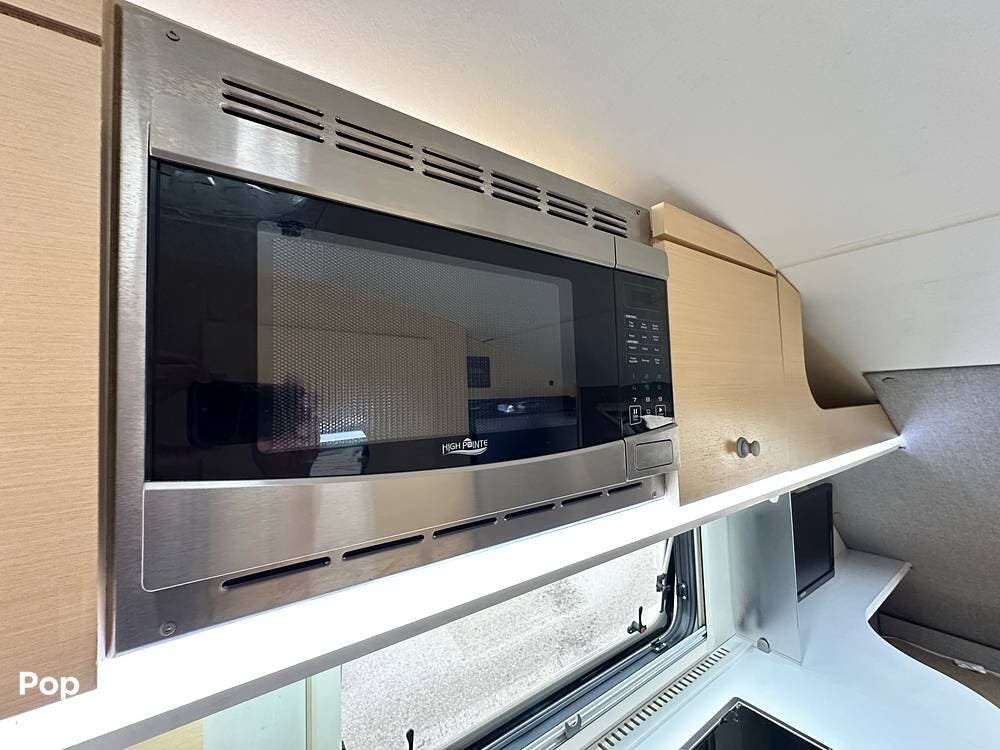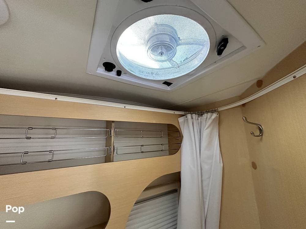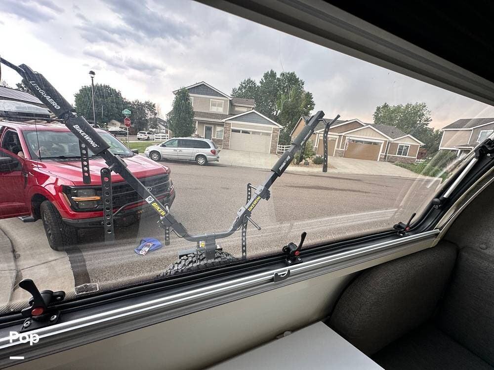 Among the many interior features, you'll find custom Ohio-Amish cabinetry, an Alde Central Heat & Flow Instant Hot Water system, an air conditioning system, a screen/shade system over the acrylic awning-style windows, a large three-piece wet bath, and a power roof fan.