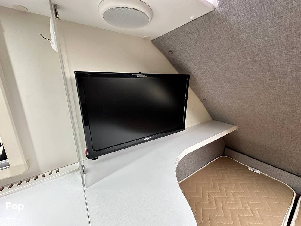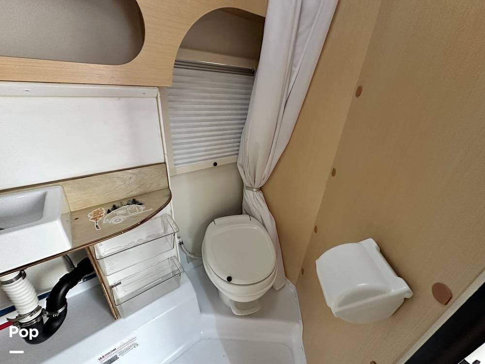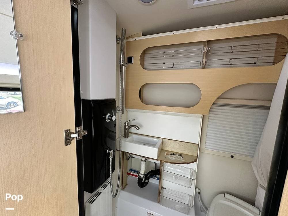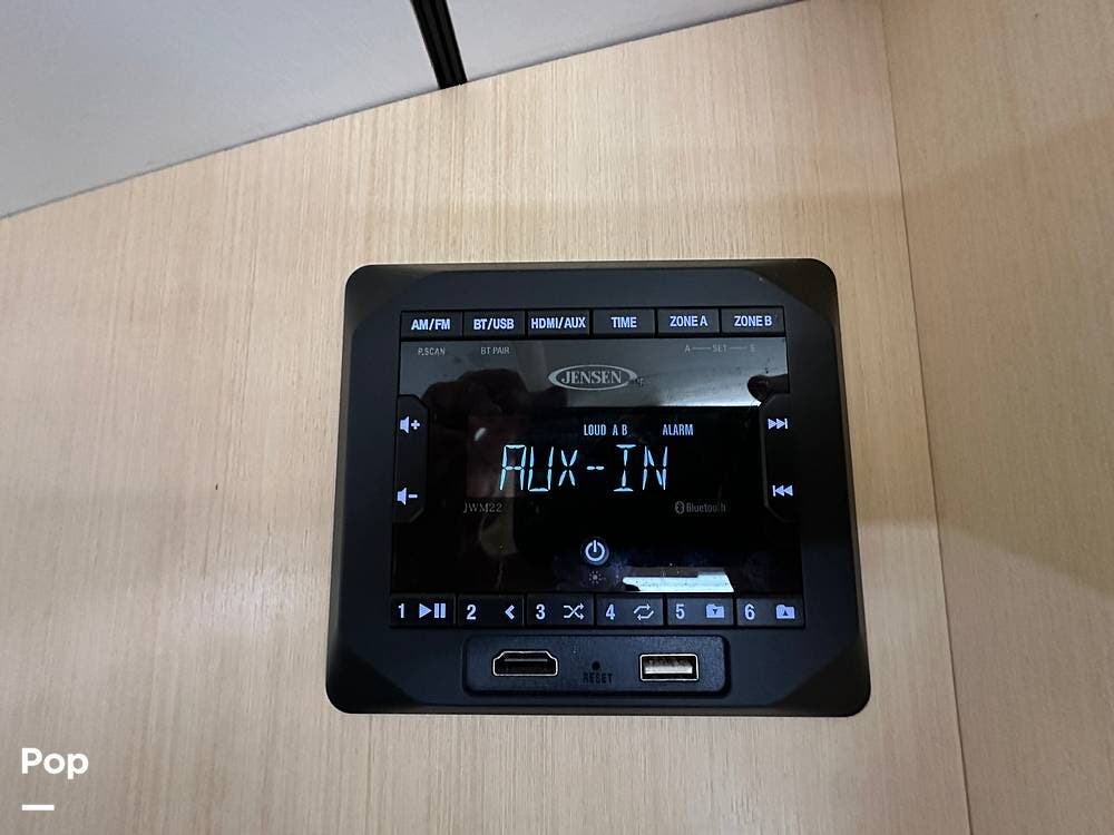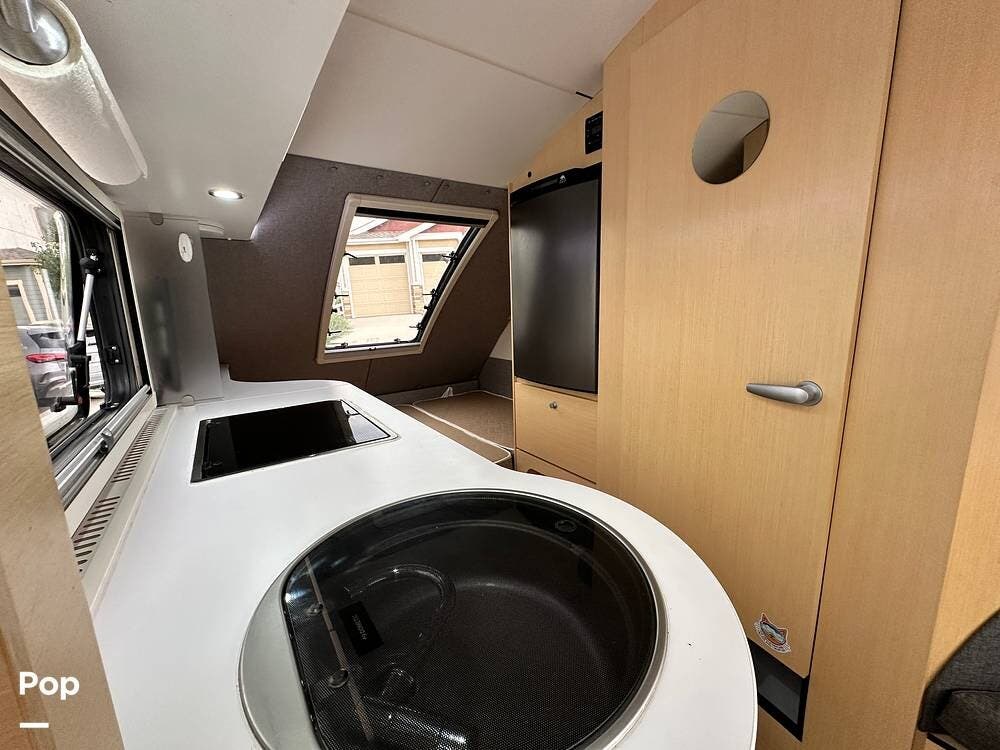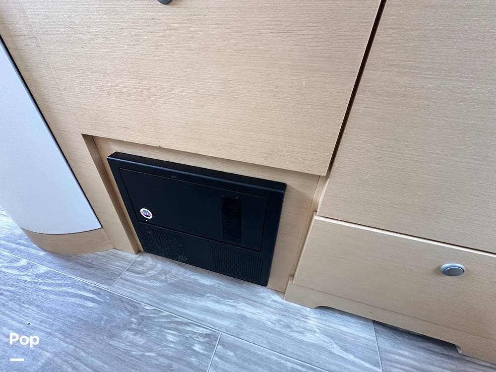 Among the many interior features, you'll find custom Ohio-Amish cabinetry, an Alde Central Heat & Flow Instant Hot Water system, an air conditioning system, a screen/shade system over the acrylic awning-style windows, a large three-piece wet bath, and a power roof fan.