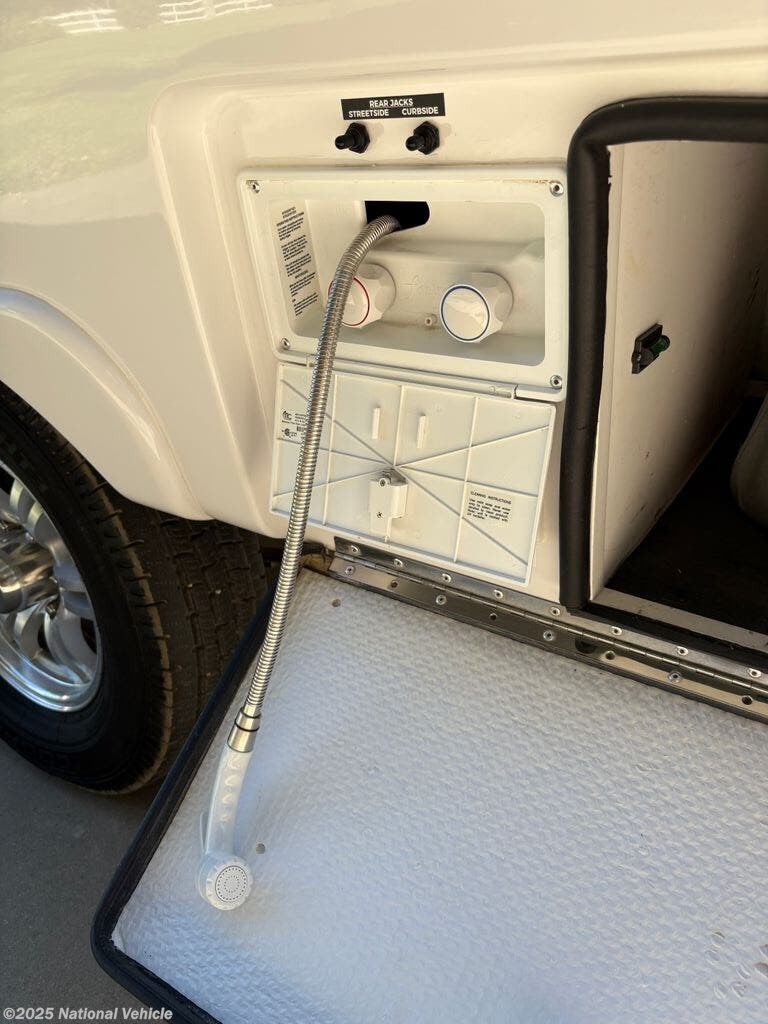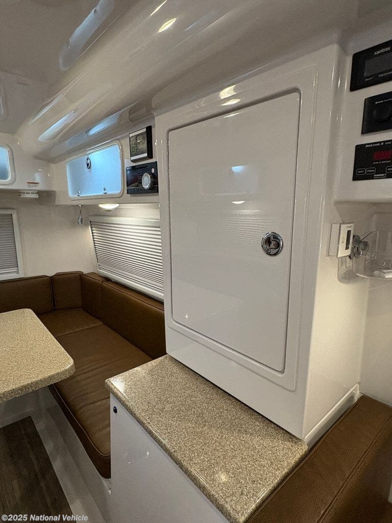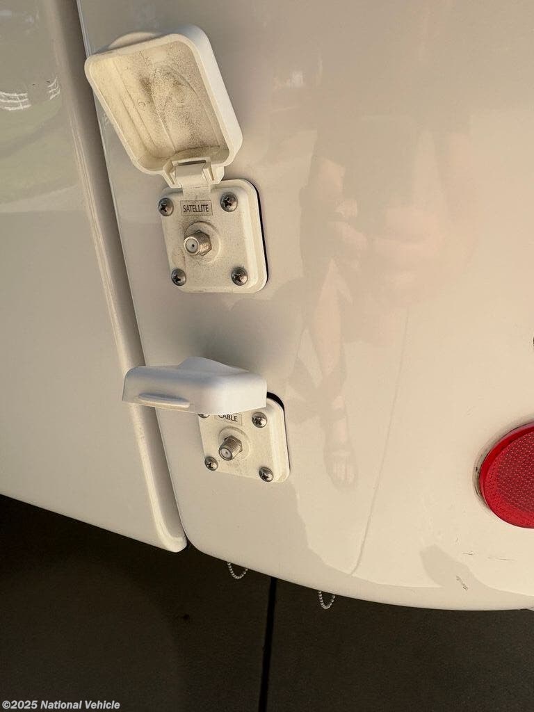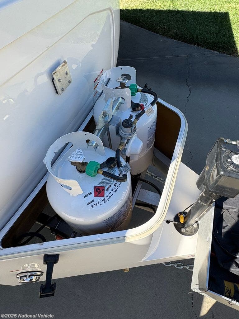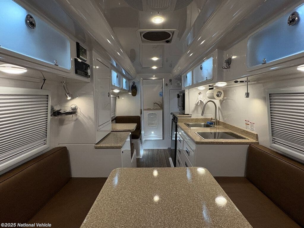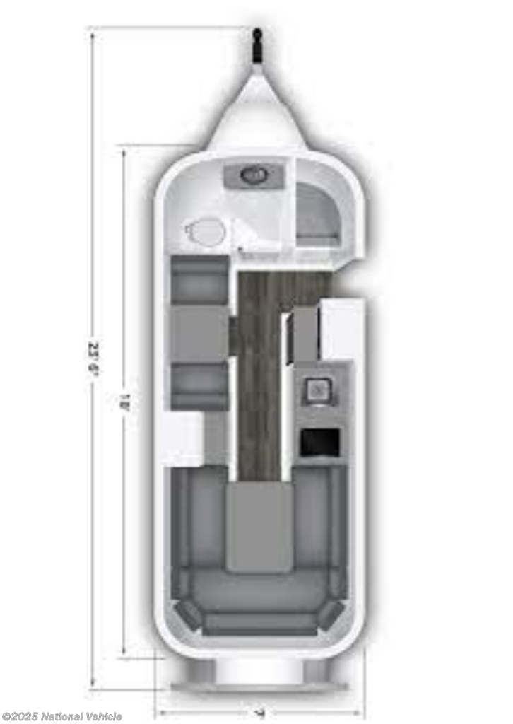 Inside, you?ll find a thoughtfully designed layout featuring a rear dinette that converts into a massive 80" bed, a fully equipped kitchen with solid-surface countertops, a two-burner stove, microwave, and refrigerator. The wet bath includes a molded fiberglass shower and marine-grade components for easy cleaning and durability.