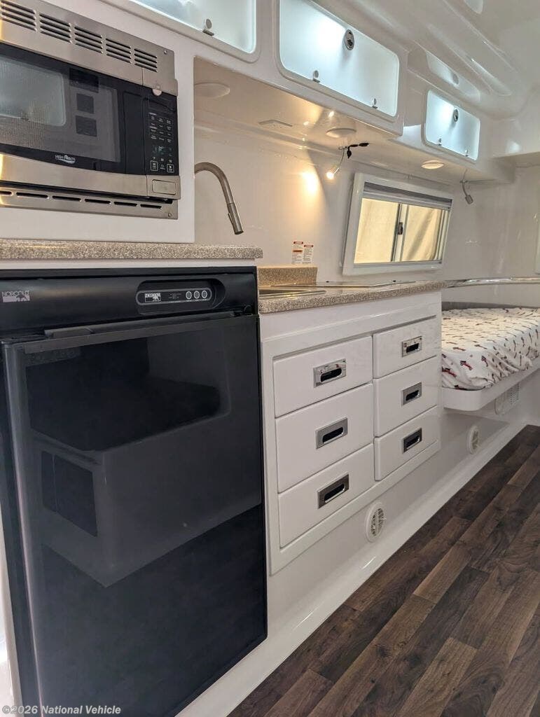 The fully equipped kitchen includes a cooktop, convection microwave, refrigerator, and stainless-steel sink?giving you everything needed to prepare meals on the road. The full wet bath features a shower, toilet, and vanity, delivering complete self-contained convenience in a compact footprint.