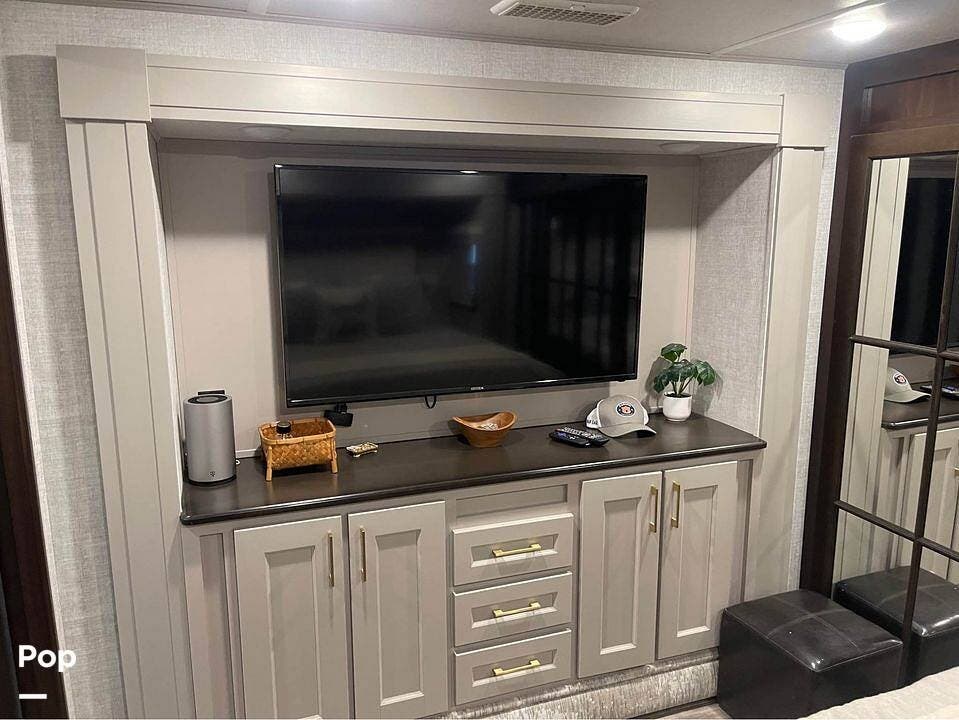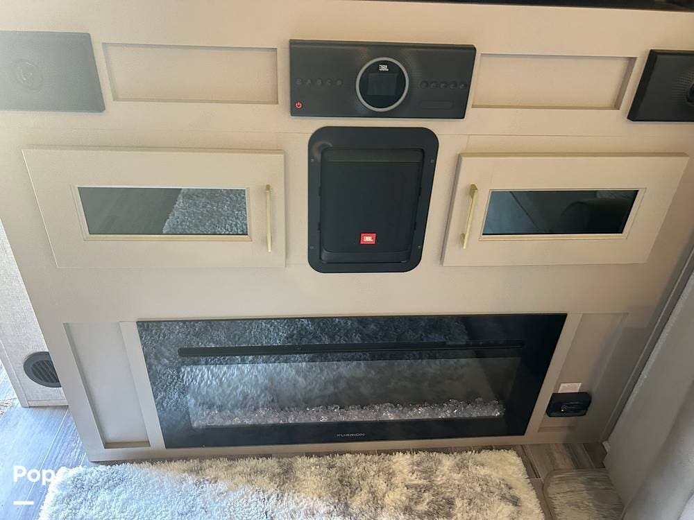 It also features modern amenities like a Wi-Fi prep with 4G LTE capability, a JBL sound system, and an electric fireplace.