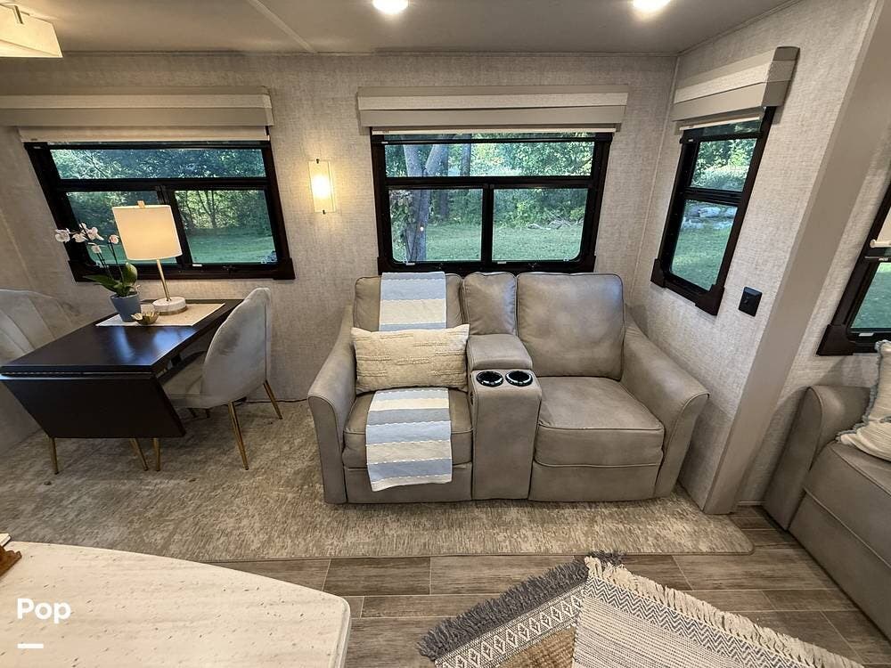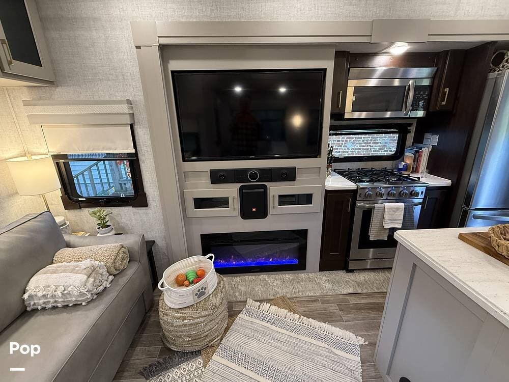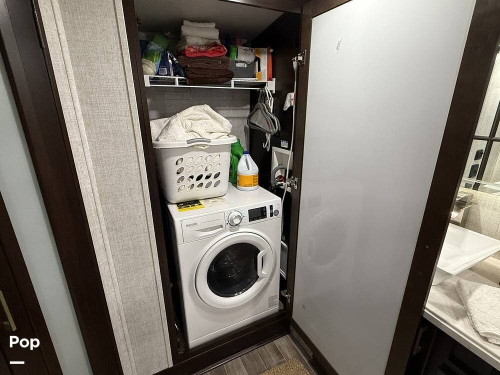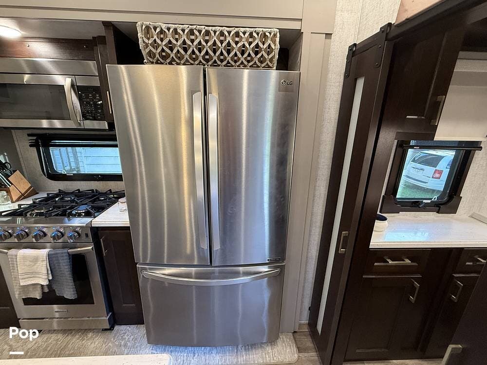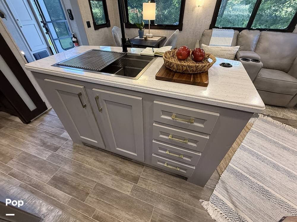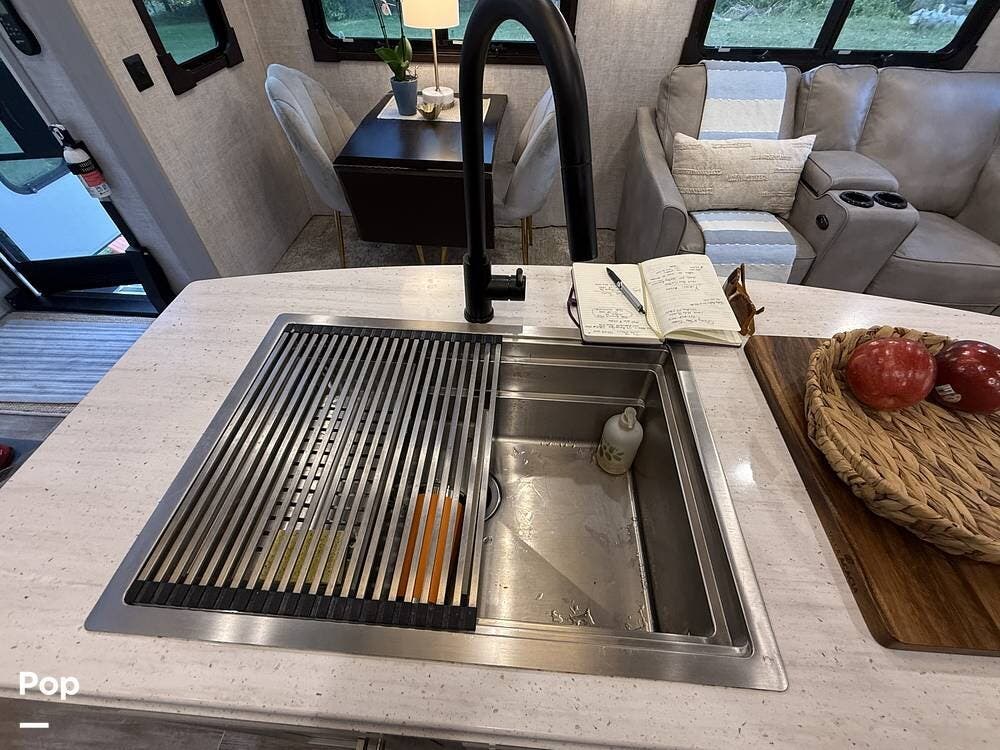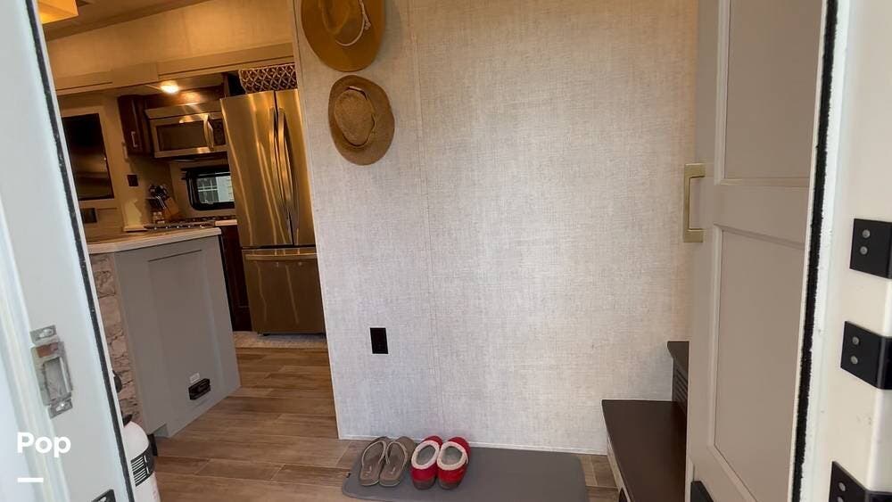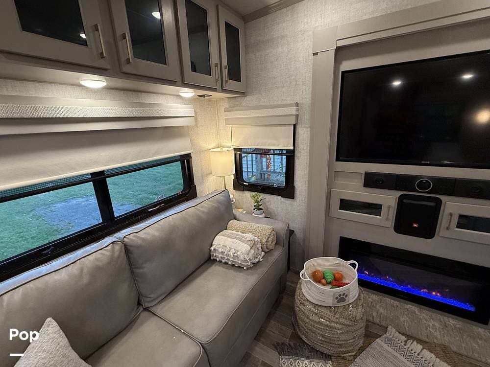 This one-owner fifth wheel has been well cared for, as it is used as a secondary home. The spacious layout and super-high ceilings make it feel enormous.