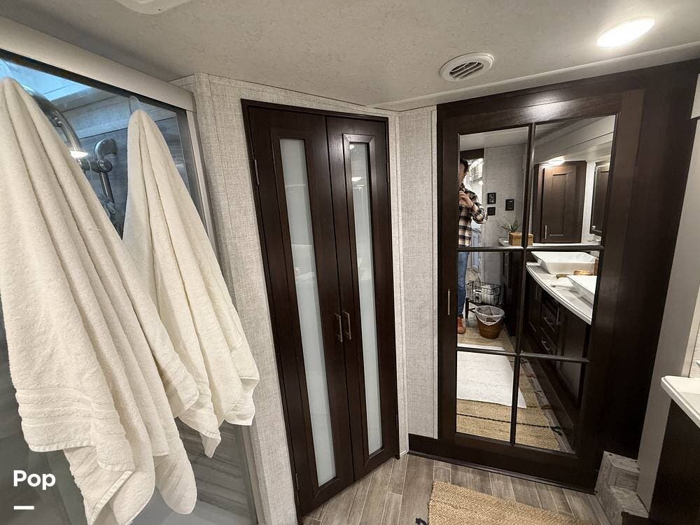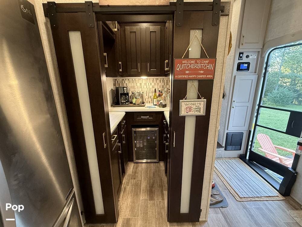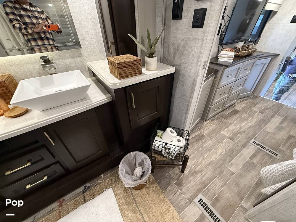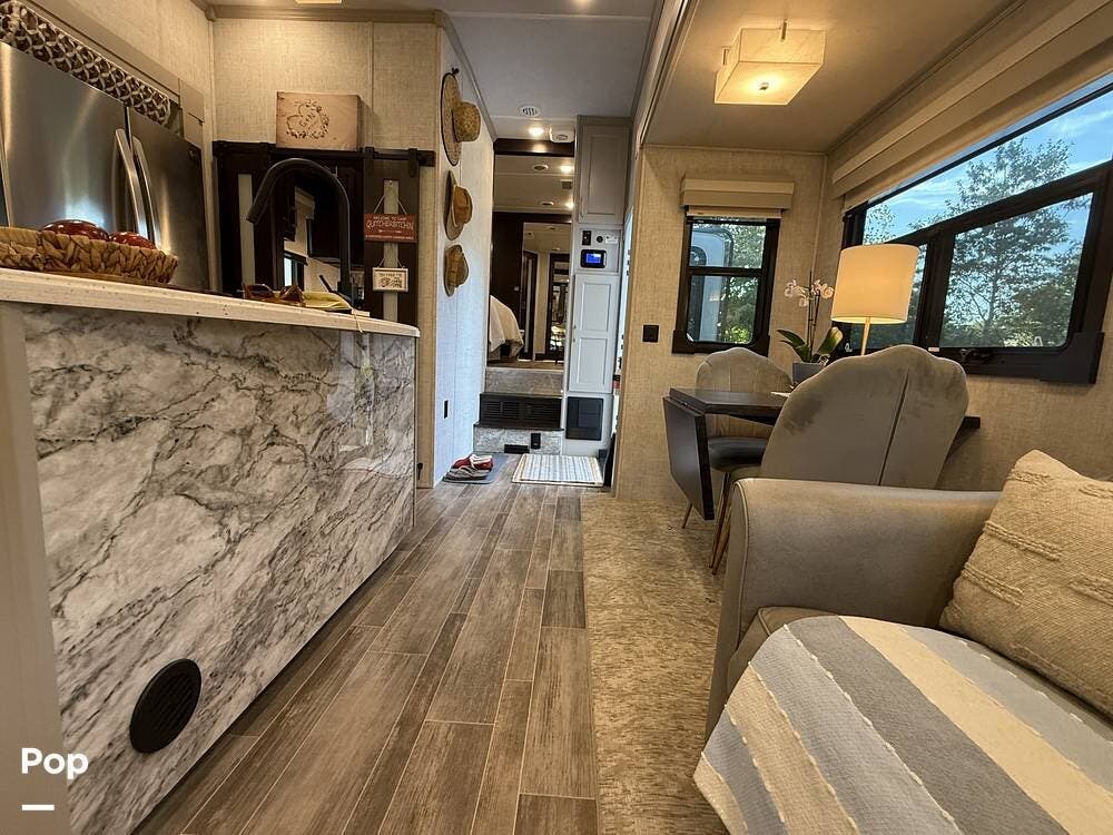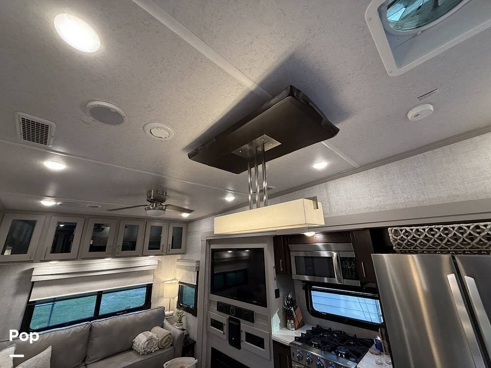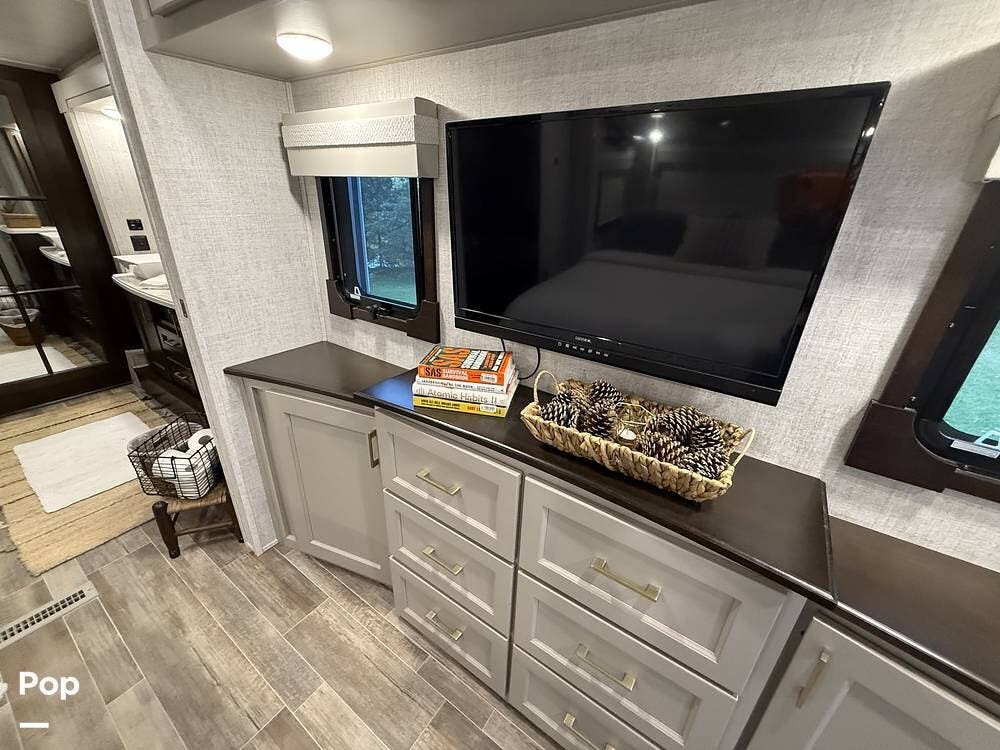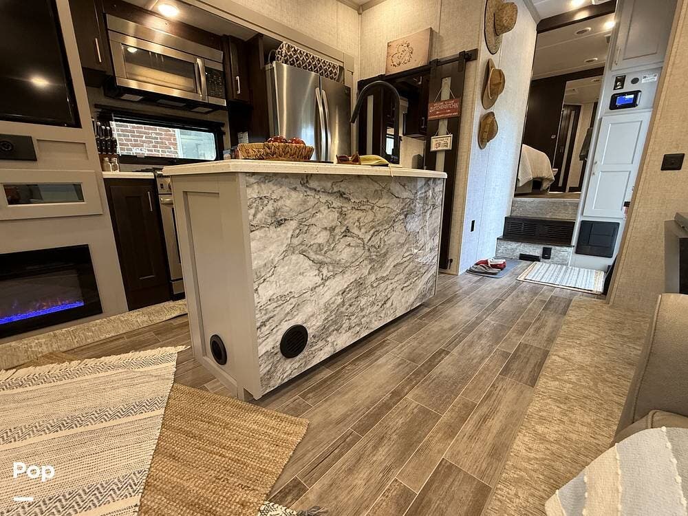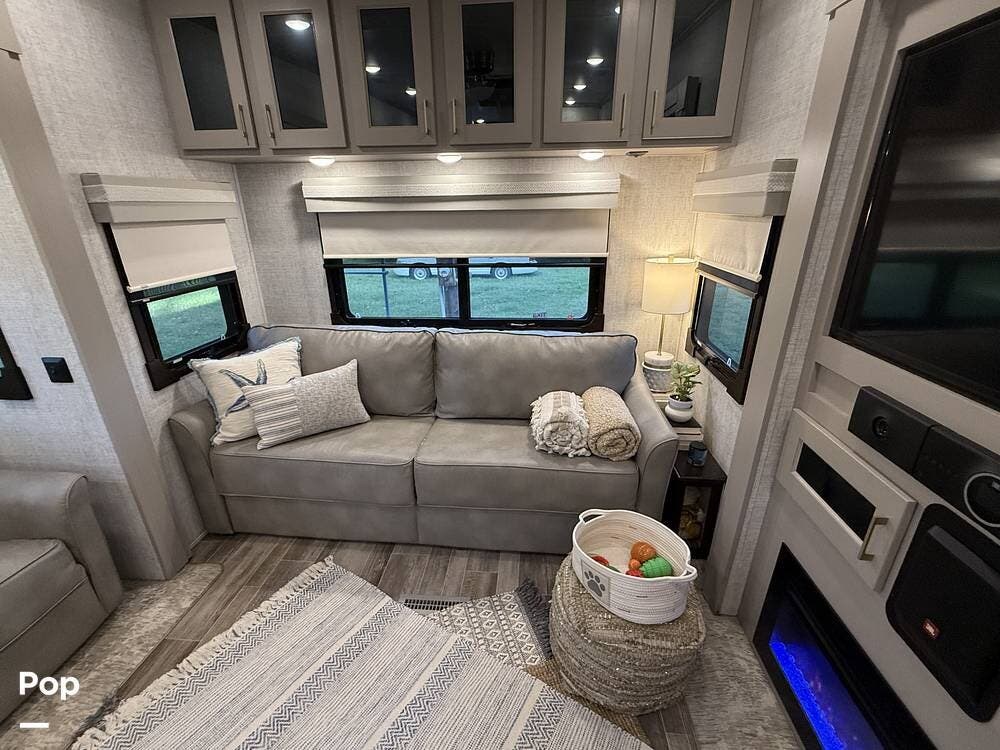 This one-owner fifth wheel has been well cared for, as it is used as a secondary home. The spacious layout and super-high ceilings make it feel enormous.