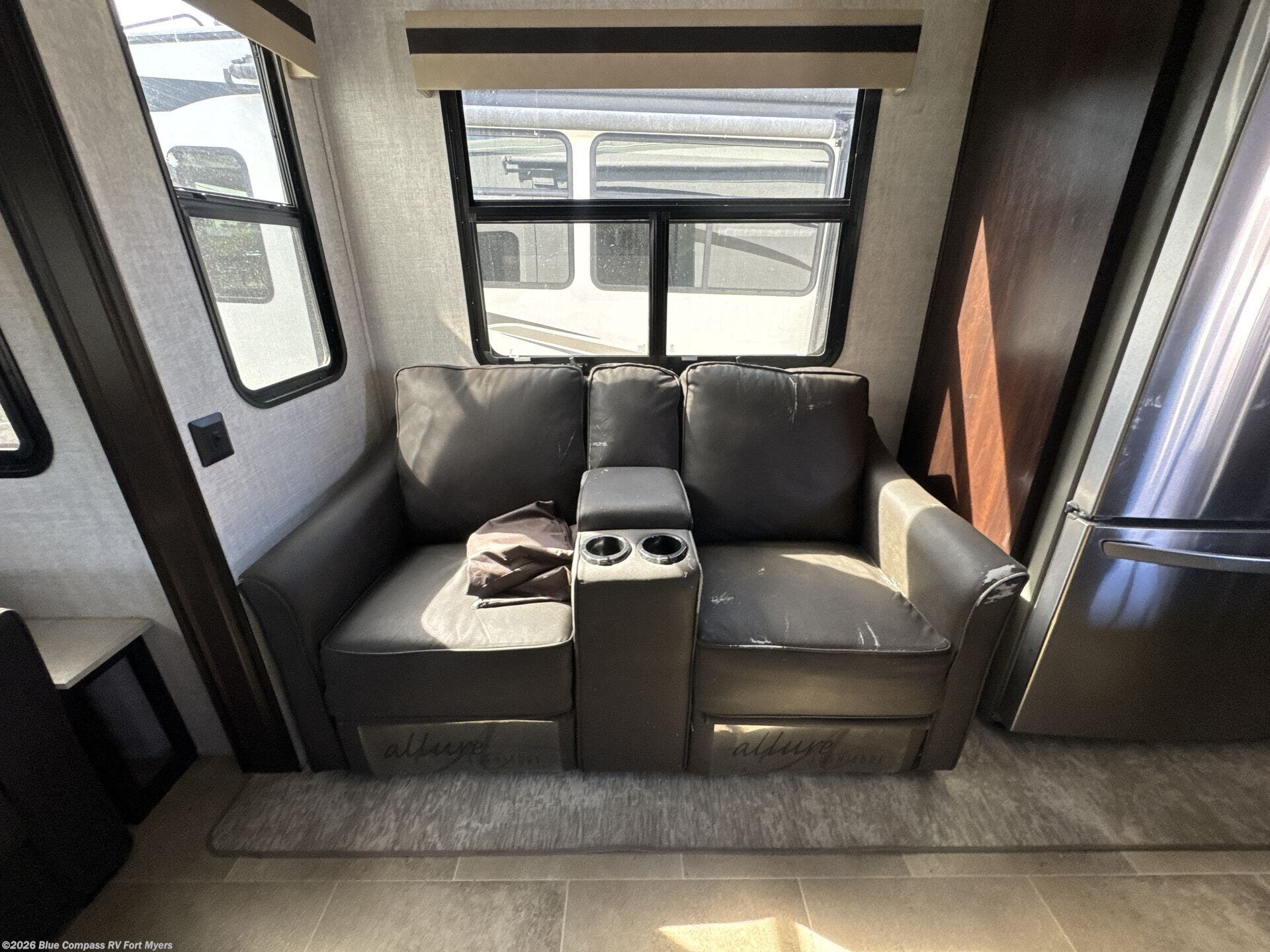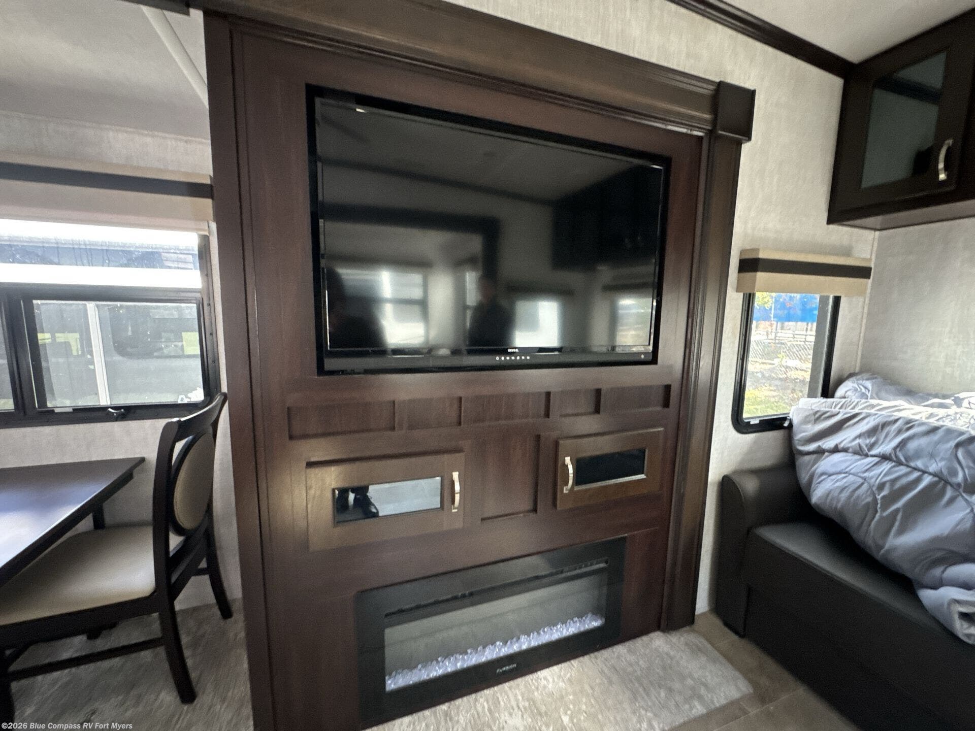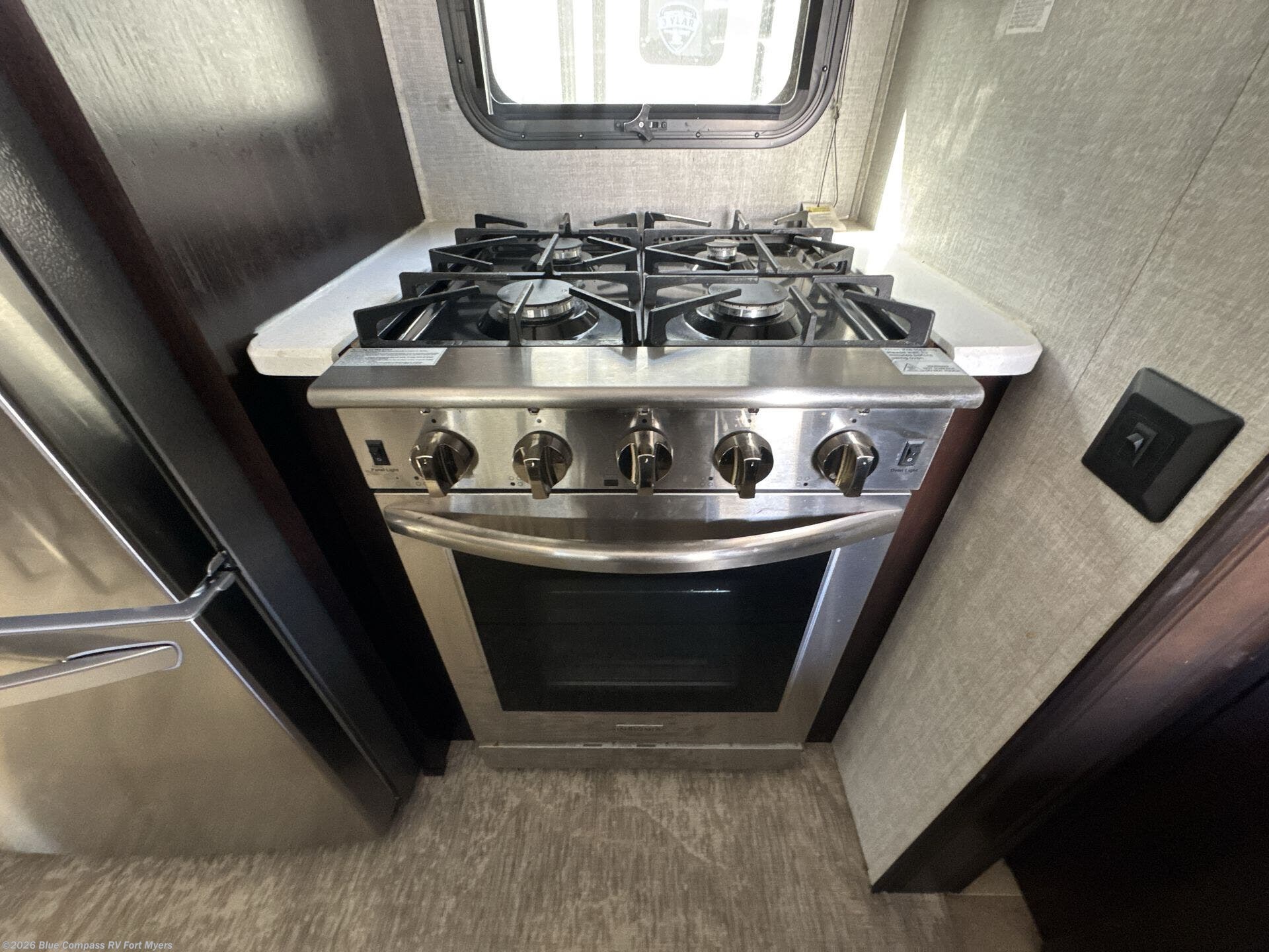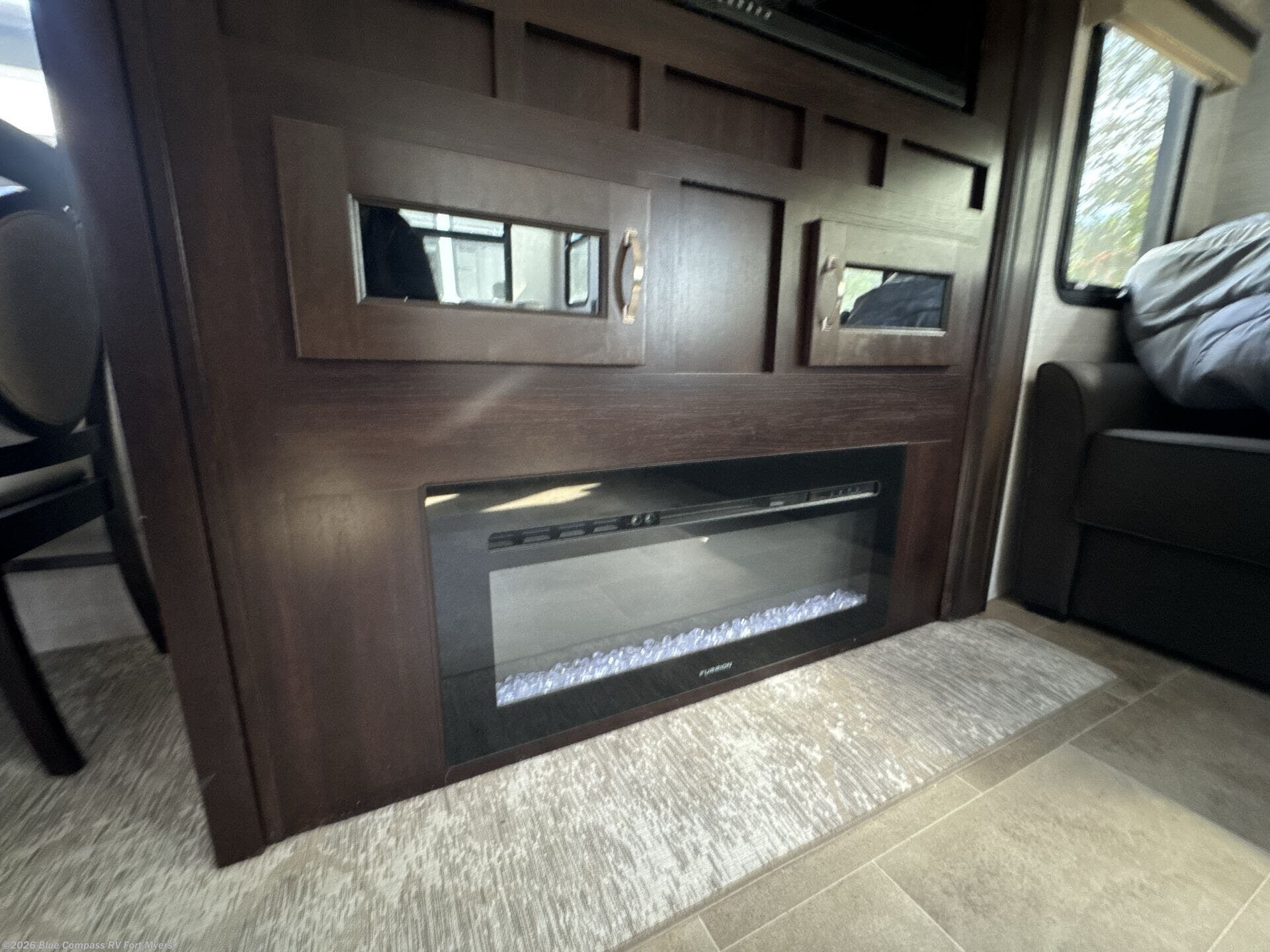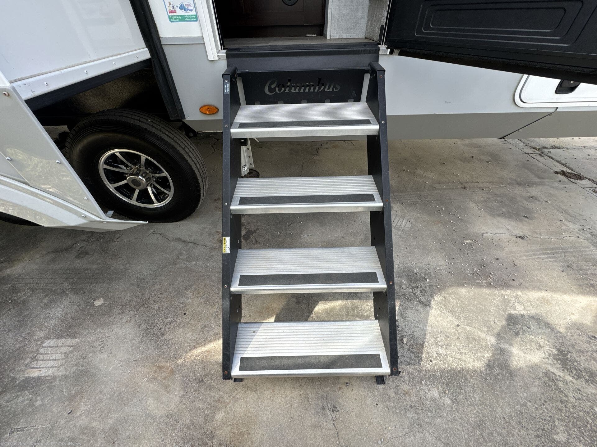 Luxury and convenience can be found in every detail throughout this Columbus Compass fifth wheel. From the front master bedroom with a pillowtop mattress and plenty of storage to the combined living and kitchen area with opposing slides, you will appreciate all that this unit has to offer. You can entertain other campers with the 65" theater seating and invite guests to stay the night on the 88" tri-fold sofa. Your friends will enjoy using your large walk-in shower with a seat and taking in the beautiful sunshine through the skylight dome above. When you want to carry the party outside, the exterior kitchen comes in handy for cooking meals outdoors. What are you waiting for? Choose this model today!
