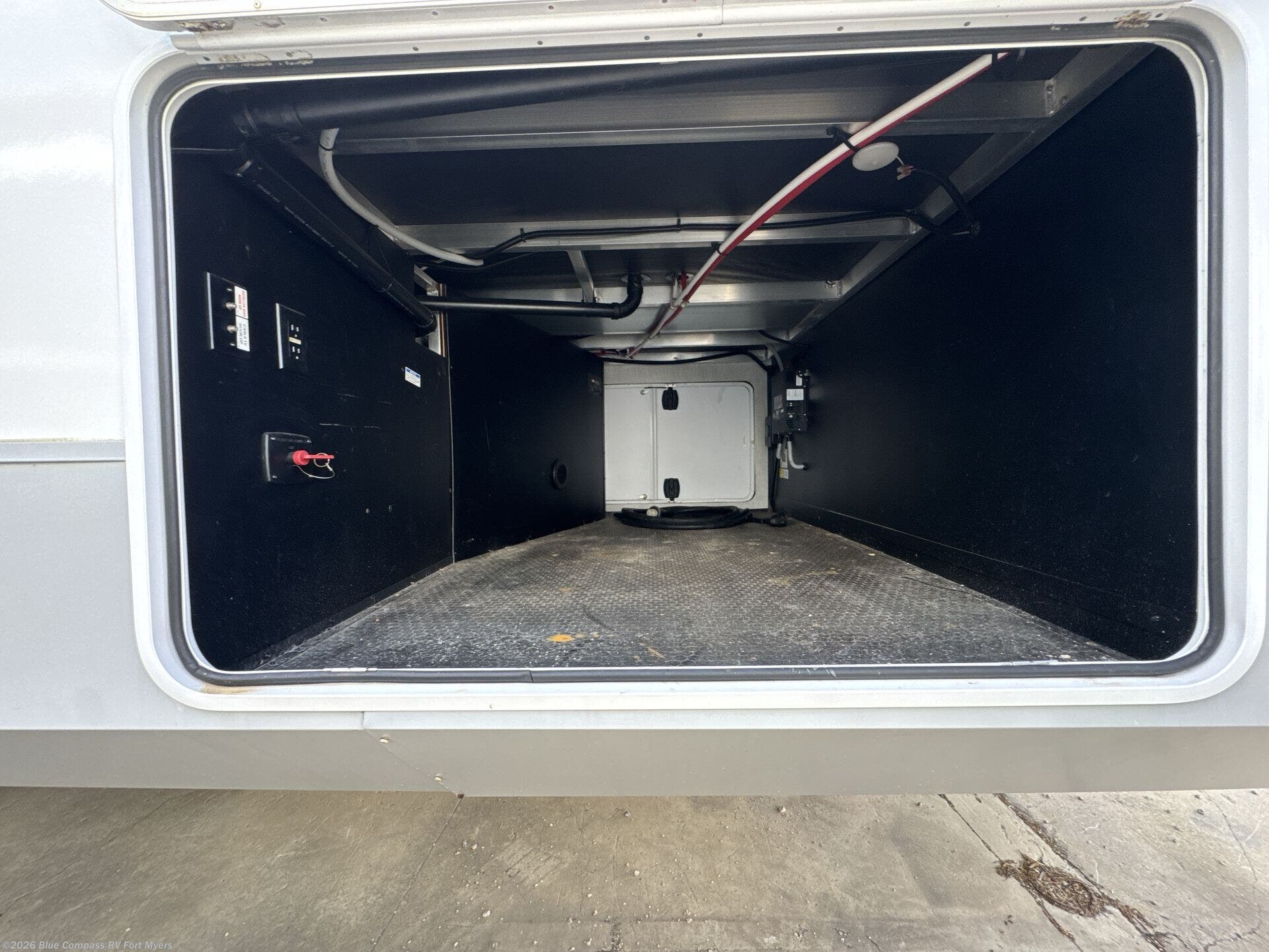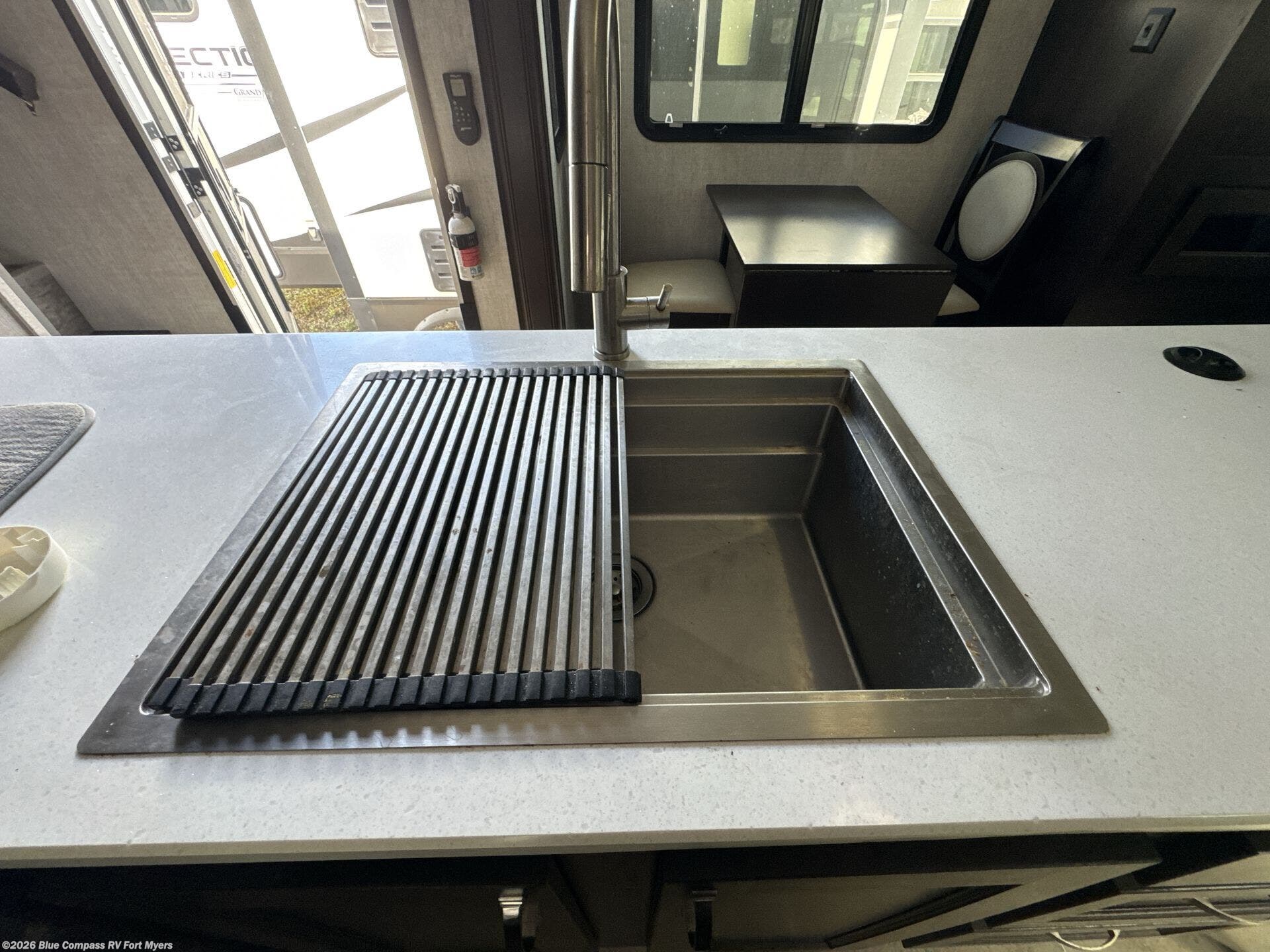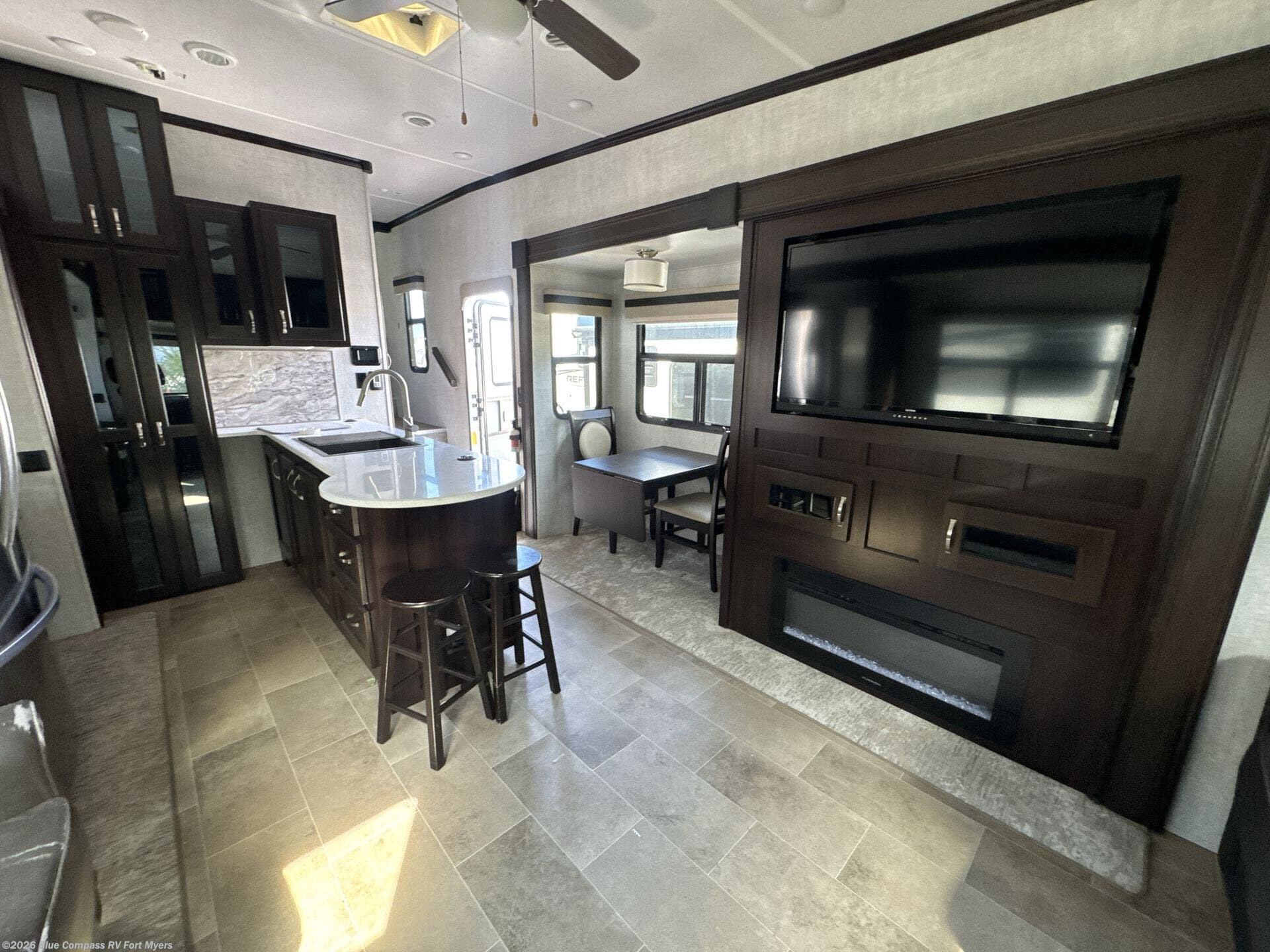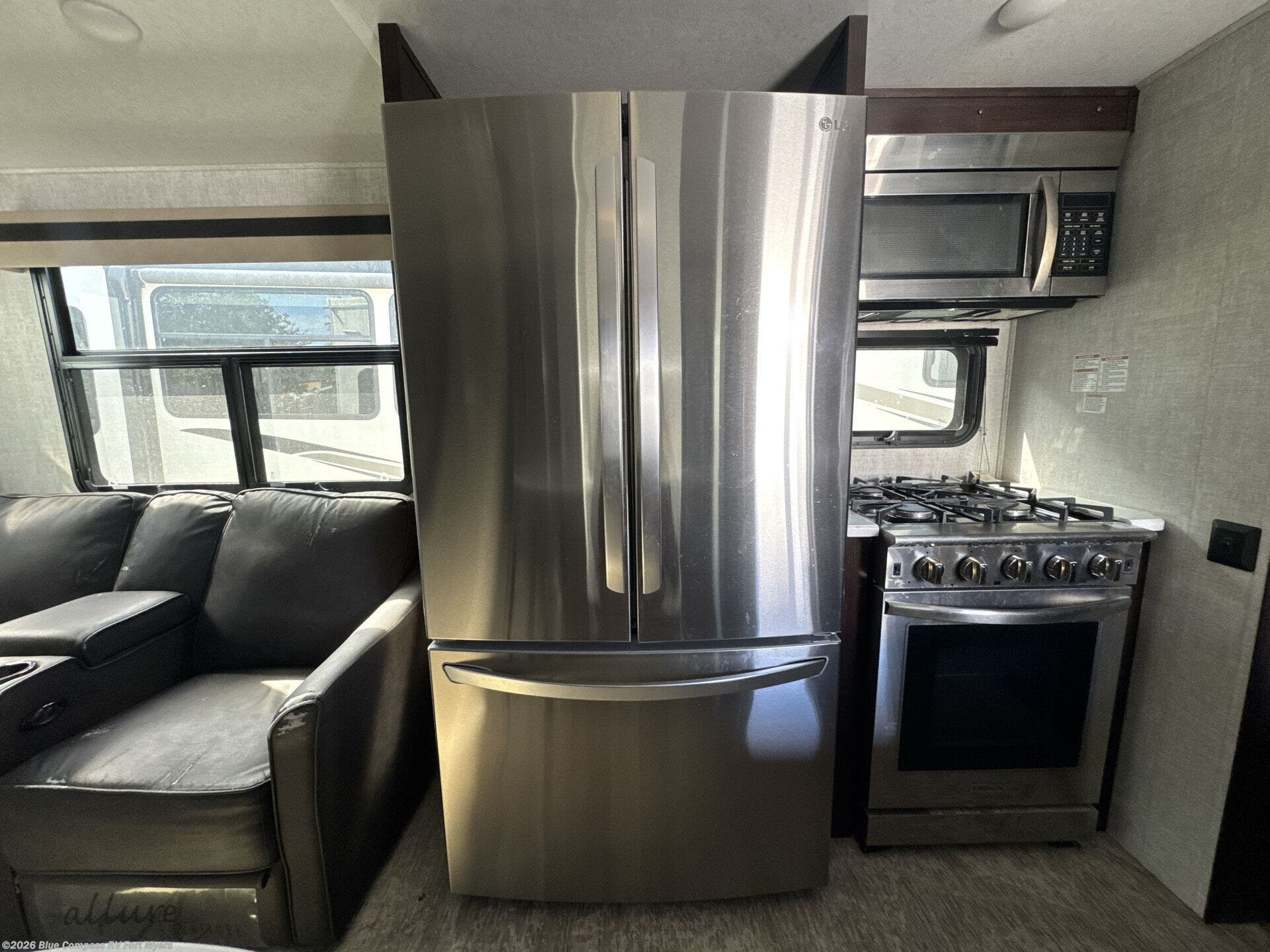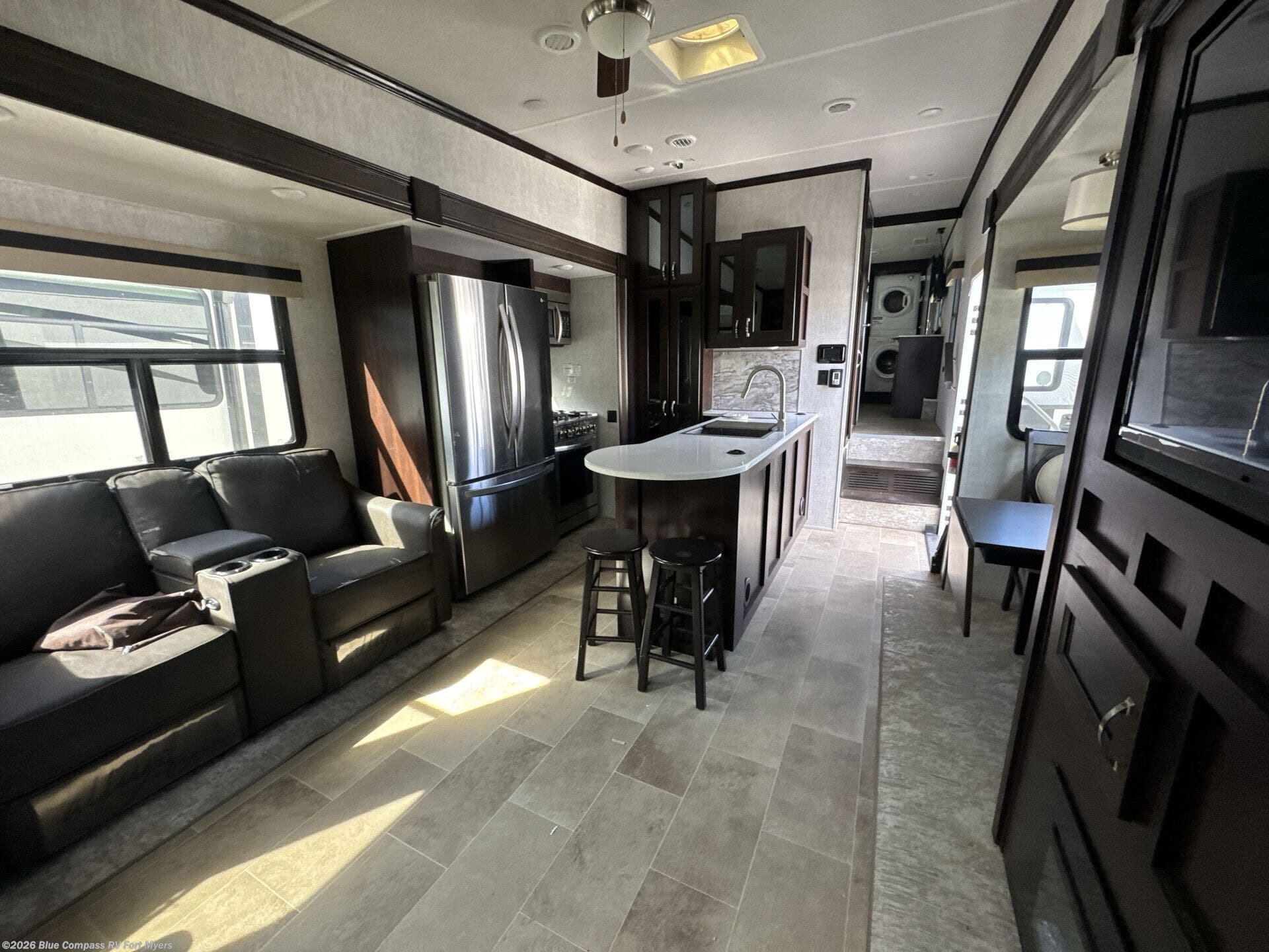 Luxury and convenience can be found in every detail throughout this Columbus Compass fifth wheel. From the front master bedroom with a pillowtop mattress and plenty of storage to the combined living and kitchen area with opposing slides, you will appreciate all that this unit has to offer. You can entertain other campers with the 65" theater seating and invite guests to stay the night on the 88" tri-fold sofa. Your friends will enjoy using your large walk-in shower with a seat and taking in the beautiful sunshine through the skylight dome above. When you want to carry the party outside, the exterior kitchen comes in handy for cooking meals outdoors. What are you waiting for? Choose this model today!