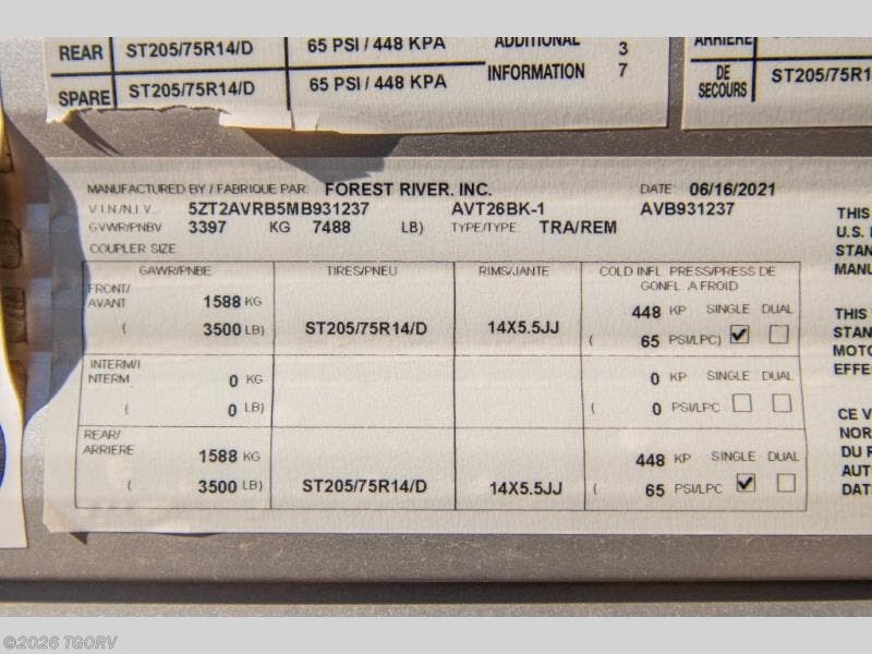 Request More Info on this 2021 Prime Time Avenger 26BK Offered for sale by TGORV