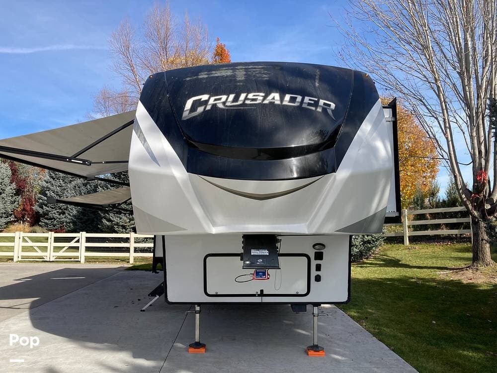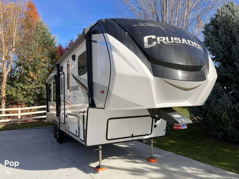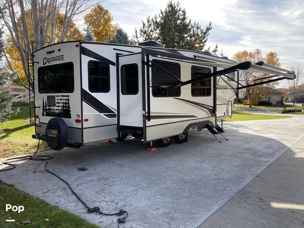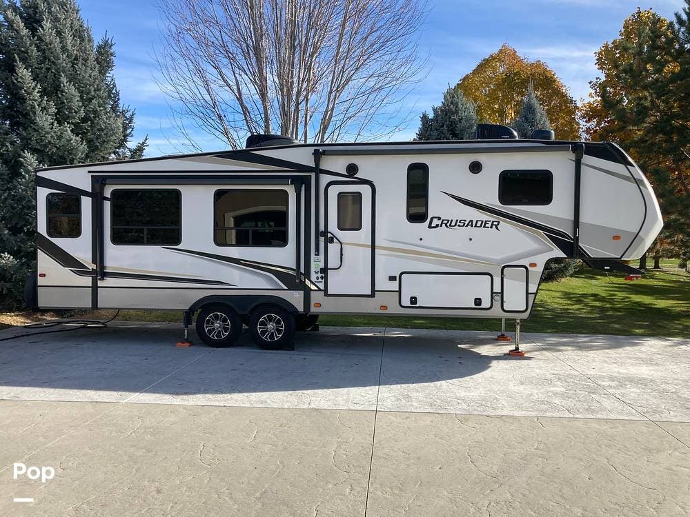 Located in Eagle, Idaho, this 2021 Prime Time Crusader 305RLP is an excellent mid-sized fifth wheel that offers comfort and style for your travels or living in.