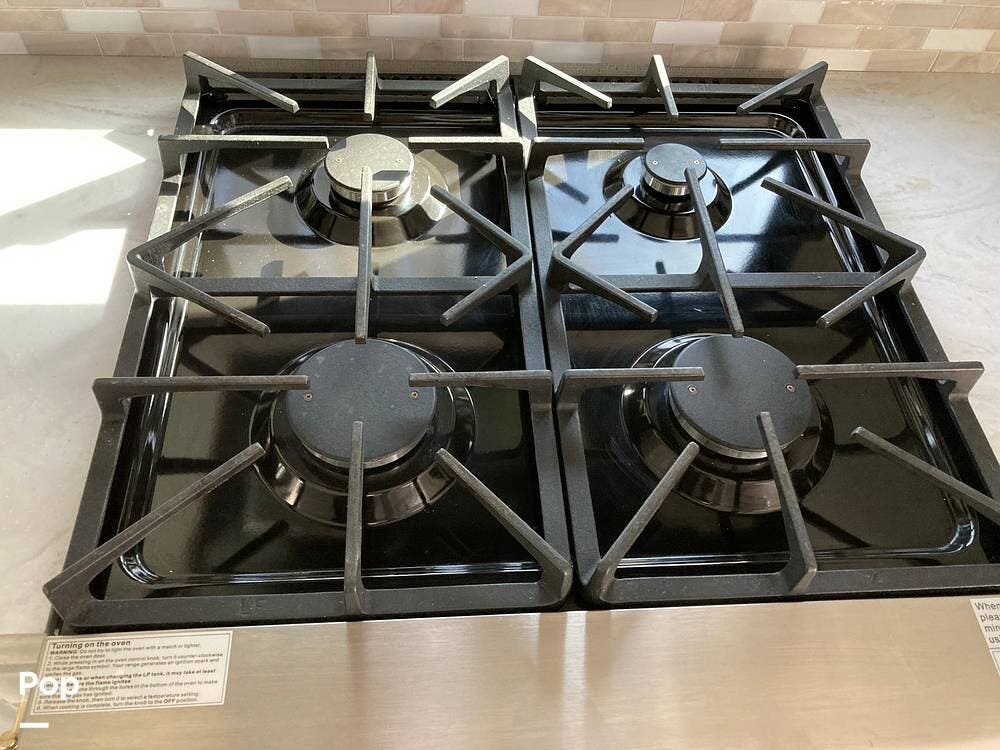 The kitchen is well equipped, with an Island with a sink and storage with a high faucet. Also, a four-door refrigerator/freezer, a four-burner gas stove top with oven, a microwave, a pantry, and plenty of storage and counter space.