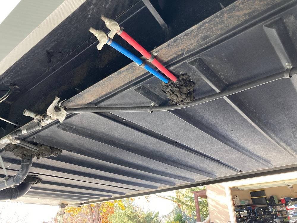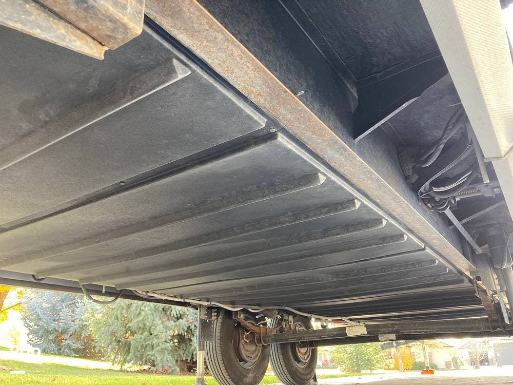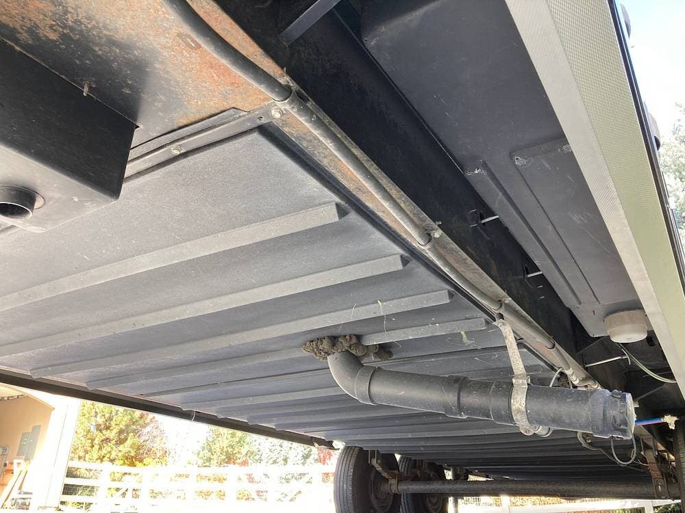On the exterior, the Crusader's body is in excellent condition. It features two power awnings, a roof access ladder, two propane tanks, a spare tire, and storage compartments for all your gear.