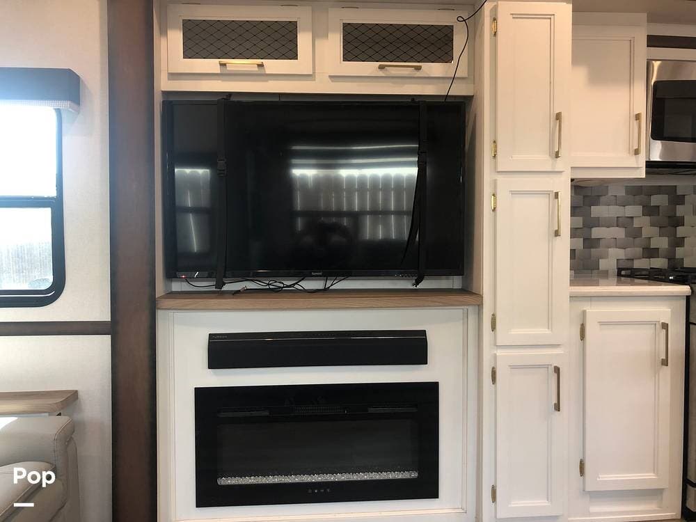 Additional amenities include a 19-foot electric awning with LED lighting, an outdoor kitchen for alfresco dining, an auto-leveling system, and a universal docking center for easy setup. With its combination of luxury, space, and practical features, this 2021 Crusader 382MBH is ready to elevate your travel experiences.