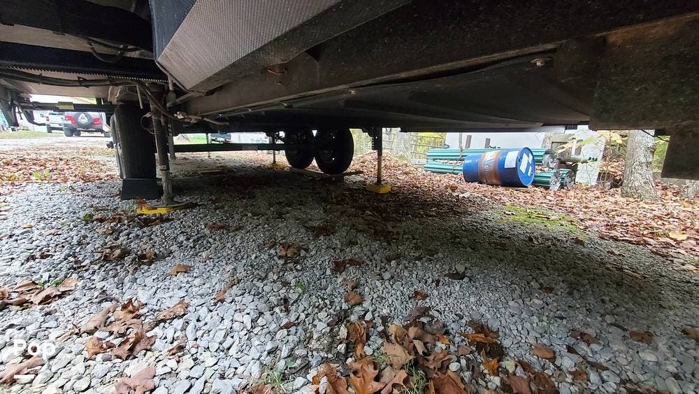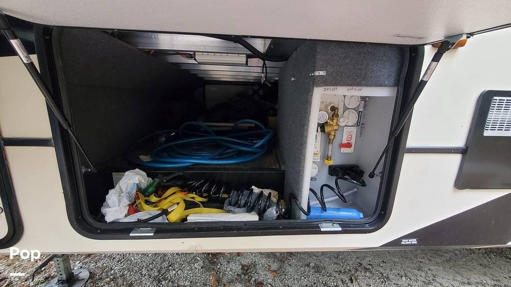 Outside, you have large pass-thru storage, an enclosed underbelly, two awnings, and slide toppers.