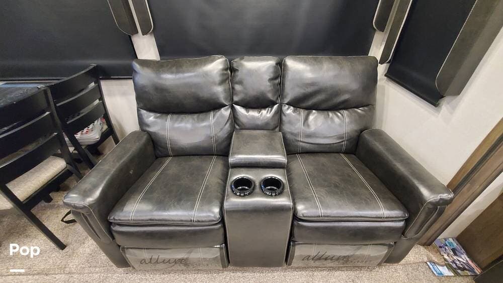 You will have theater seats with integrated lite cup holders. The sleeper sofa adds a sleeping area.