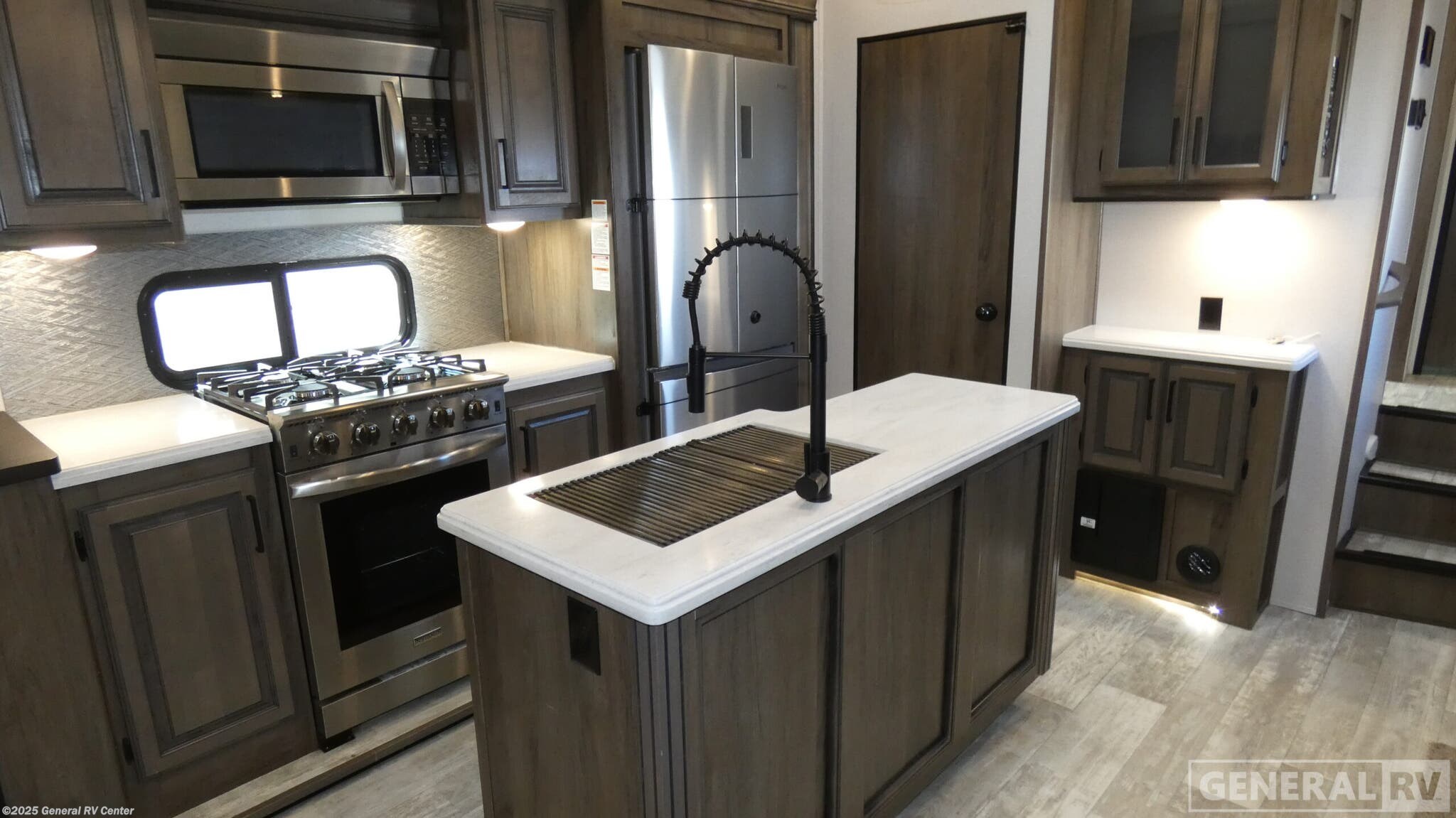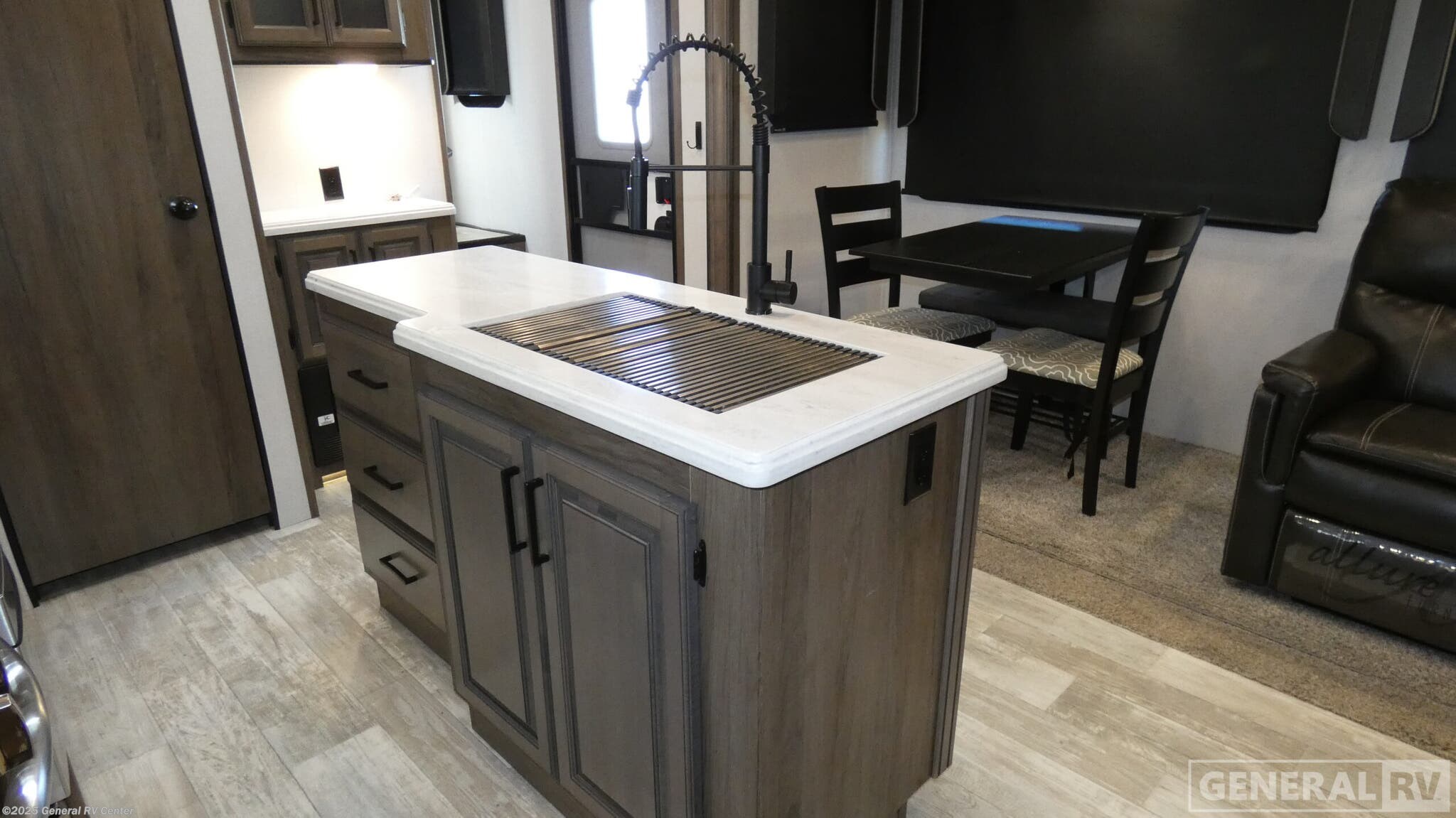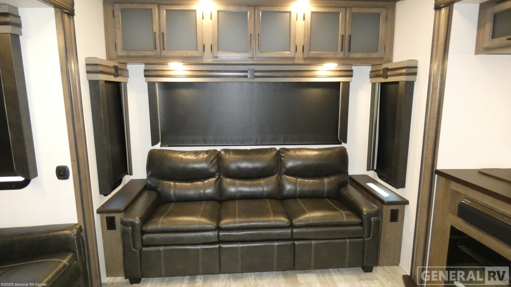 Experience luxury at every turn in this spacious fifth wheel that can sleep four people each night. You and your spouse will love the front private bedroom with its slide out king bed, large front wardrobe with solid wood sliding doors, and a space to add an optional washer and dryer if you choose. Your guests can sleep on the hide-a-bed sofa in the rear living area, and the 50" TV here will provide entertainment in the evenings. In the morning, the chef of the family can prepare breakfast on the three burner cooktop, or use the 30" microwave. The stainless steel sink with an extra deep bowl will make clean-up a breeze, and there is a hutch/buffet to store nice dishes. The king-size shower includes a seat, and you'll appreciate heat and A/C in the bath to keep you comfortable. With any Sanibel fifth wheel by Prime Time RV you will enjoy many intelligent features for luxurious camping or full-time RV living! The Extreme Thermal Package allows you to extend your camping season by including heated, enclosed water lines, an enclosed underbelly, a heated pass-through storage, and a heated universal docking center. You can keep the party going with the exterior speakers, the coax TV connection and a 110V outlet, plus USB ports in the basement storage. Each model includes a smart arm electric awning with LED lights, DOT approved deep tint safety glass, and "E-Z FLEX" rubberized suspension to provide smooth towing on tougher roads. Inside, you will enjoy shaker style interior doors, a Furrion residential cooktop and oven, roller shades throughout, and "Atrium" dinette windows to let sunlight in for an inviting space. Make the smart choice for your next RV. Choose one of these Sanibel fifth wheels today!