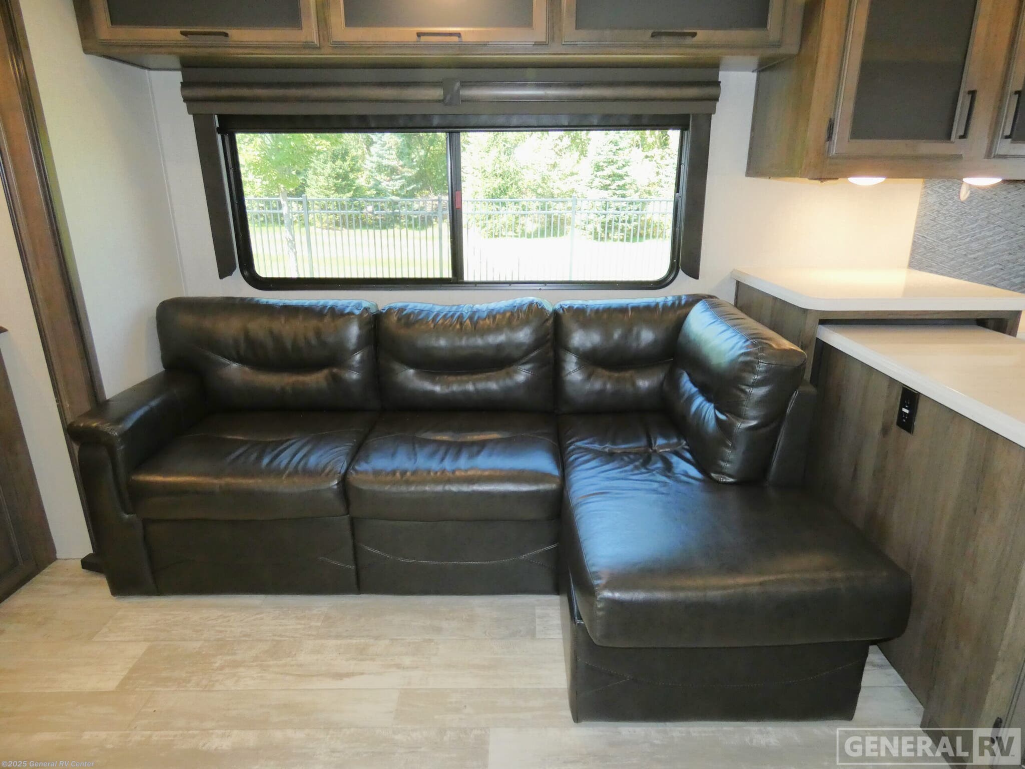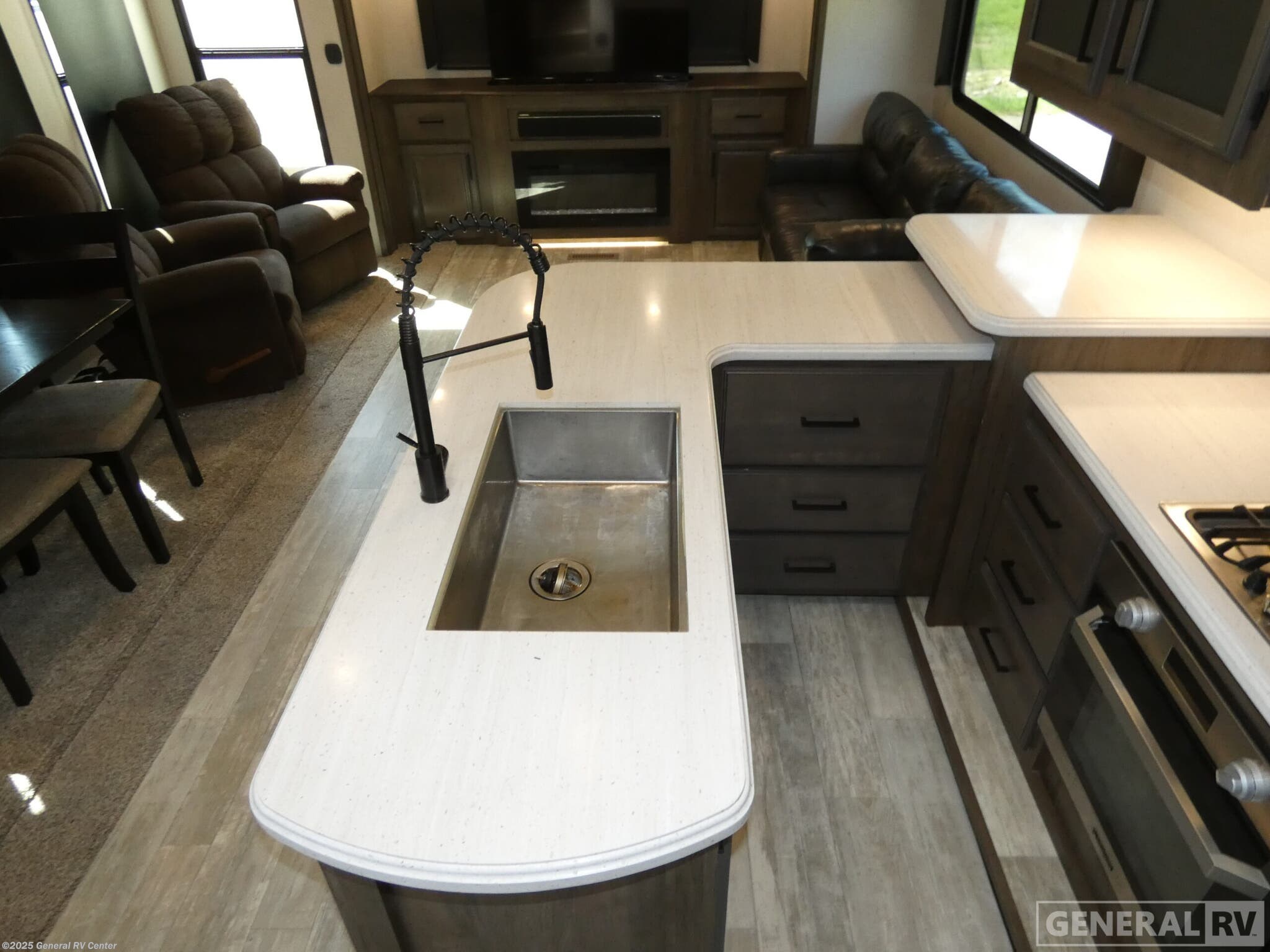 Prime Time Sanibel fifth wheel 3402WB highlights: King-Size Bed Residential Refrigerator L-Shaped Sofa 50" LED TV Dual Recliners L-Shaped Counter Peninsula Bedroom Shoe Storage You won't be left wanting for any amenities in this comfortable fifth wheel. Once you arrive at your destination, your crew can relax in the rear living area that includes a rear entertainment center with a 50" TV on lift. The dual recliners, hide-a-bed L-shaped sofa, and dinette with chairs will provide seating for everyone, and the chef of the family can easily prepare meals in the spacious kitchen. There is a closet and a pantry to store paper goods and snacks, a residential refrigerator, and a Furrion oven and cooktop to make meals each day. After you've explored all day, freshen up in the full bath with a 40" shower with a seat, a deluxe "skyview" skylight, and a linen closet to store clean towels. The front private bedroom will feel like your own oasis with its slide out king bed, a large closet with shoe storage and sliding hardwood mirror doors. With any Sanibel fifth wheel by Prime Time RV, you will enjoy many intelligent features for luxurious camping or full-time RV living! The Extreme Thermal package allows you to extend your camping season by including heated, enclosed water lines, an enclosed underbelly, a heated pass-through storage, and a heated universal docking center. You can keep the party going with the exterior speakers, the coax TV connection and a 110V outlet, plus USB ports in the basement storage. Each model includes a smart arm electric awning with LED lights, DOT approved deep tint safety glass, and a "E-Z FLEX" rubberized suspension to provide smooth towing on tougher roads. Inside, you will enjoy shaker style interior doors, a Furrion residential cooktop and oven, roller shades throughout, and "Atrium" dinette windows to let sunlight in for an inviting space. Make the smart choice for your next RV. Choose one of these Sanibel fifth wheels today!