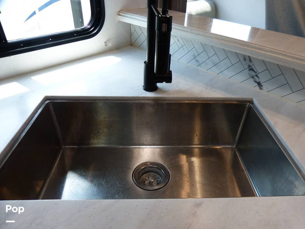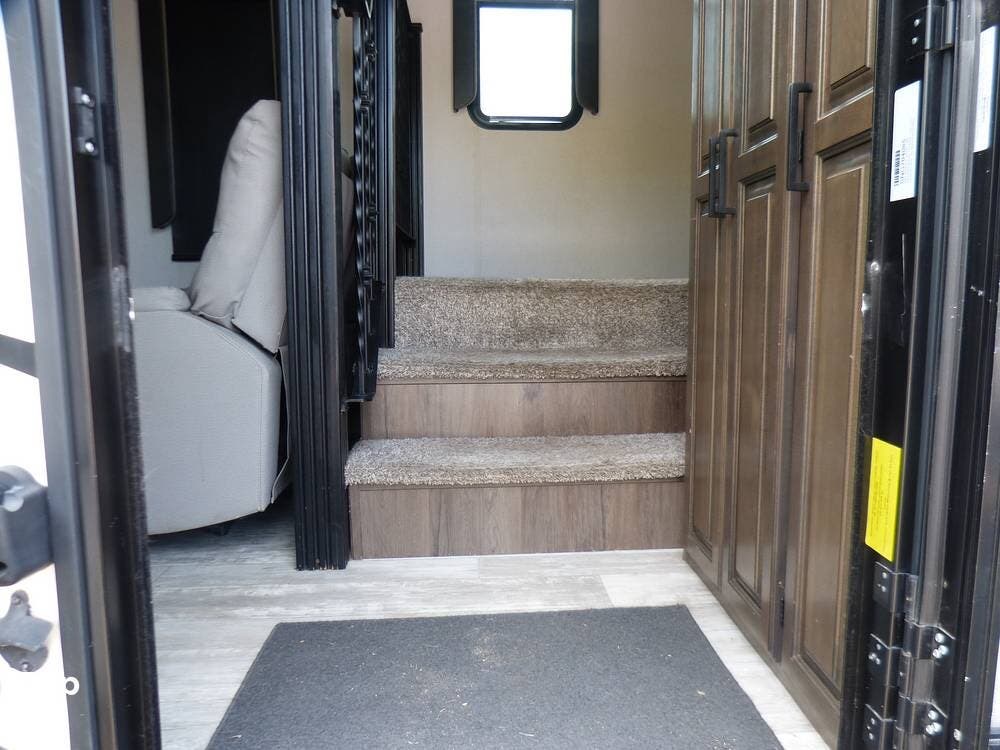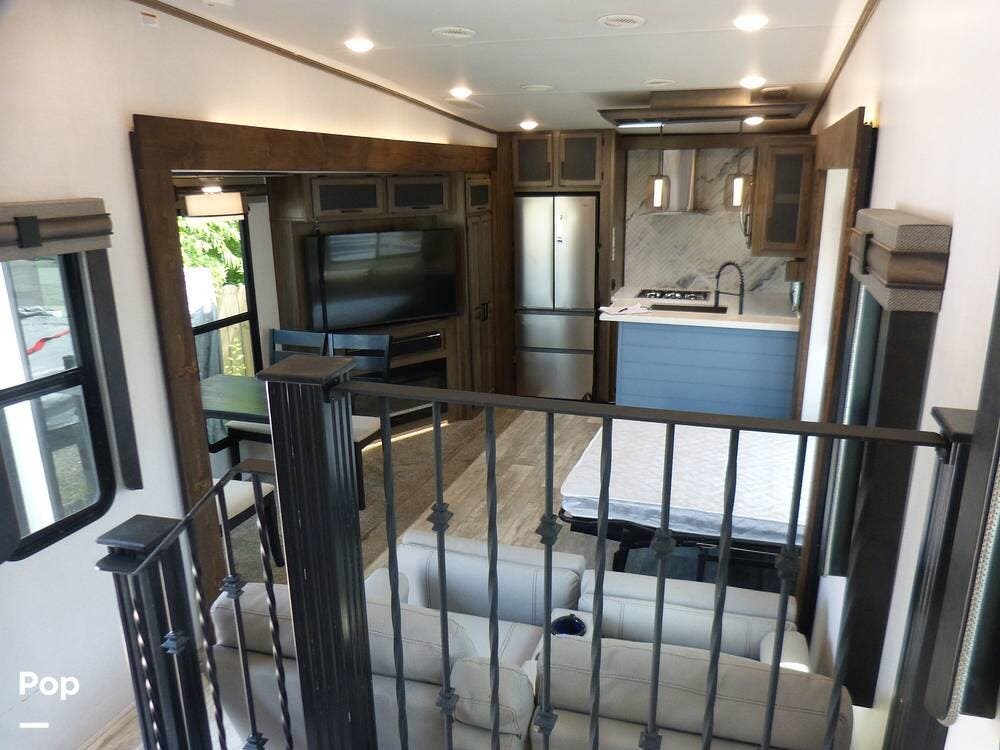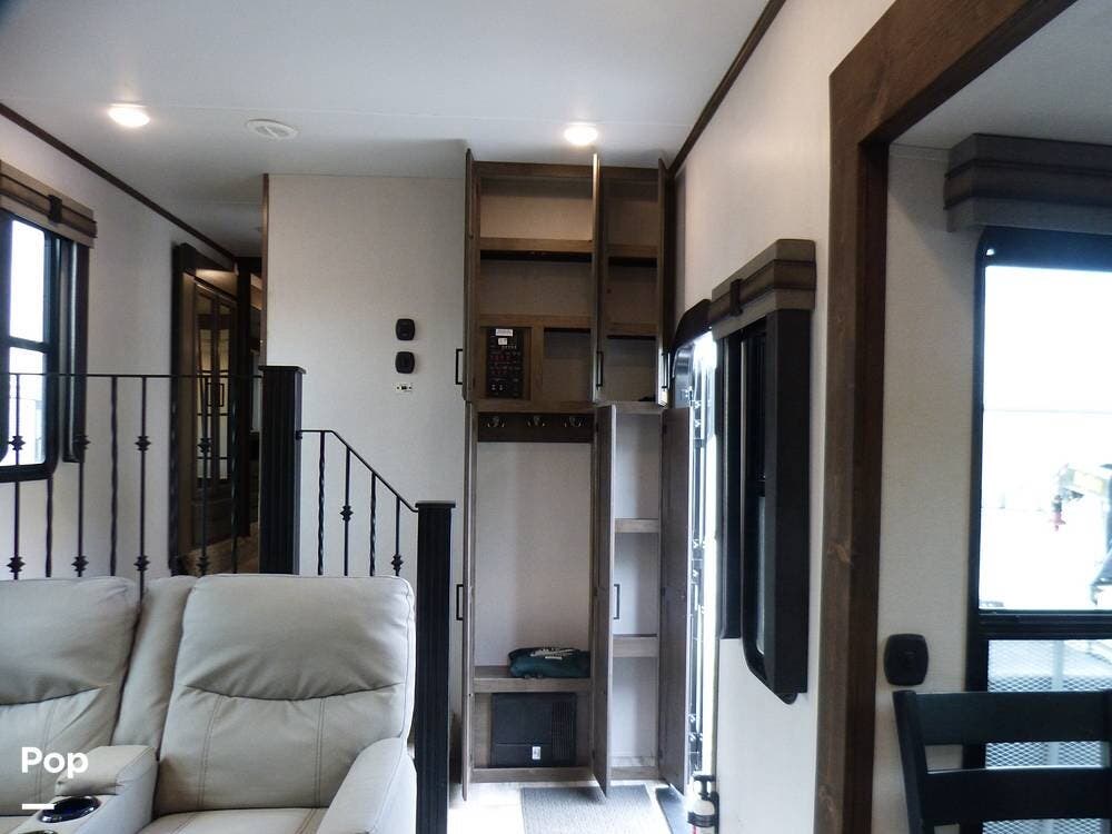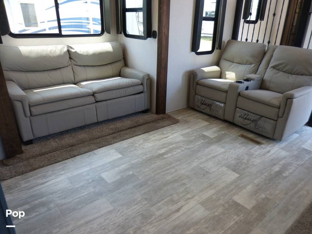 The RV is also equipped with Dexter axles and a tire pressure monitoring system.