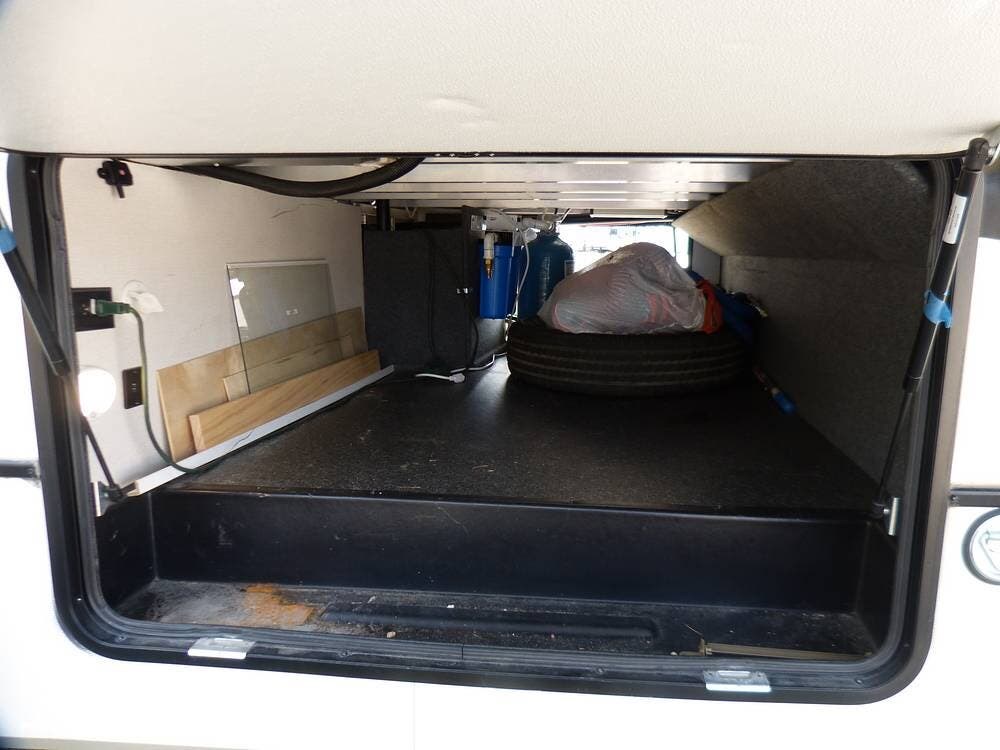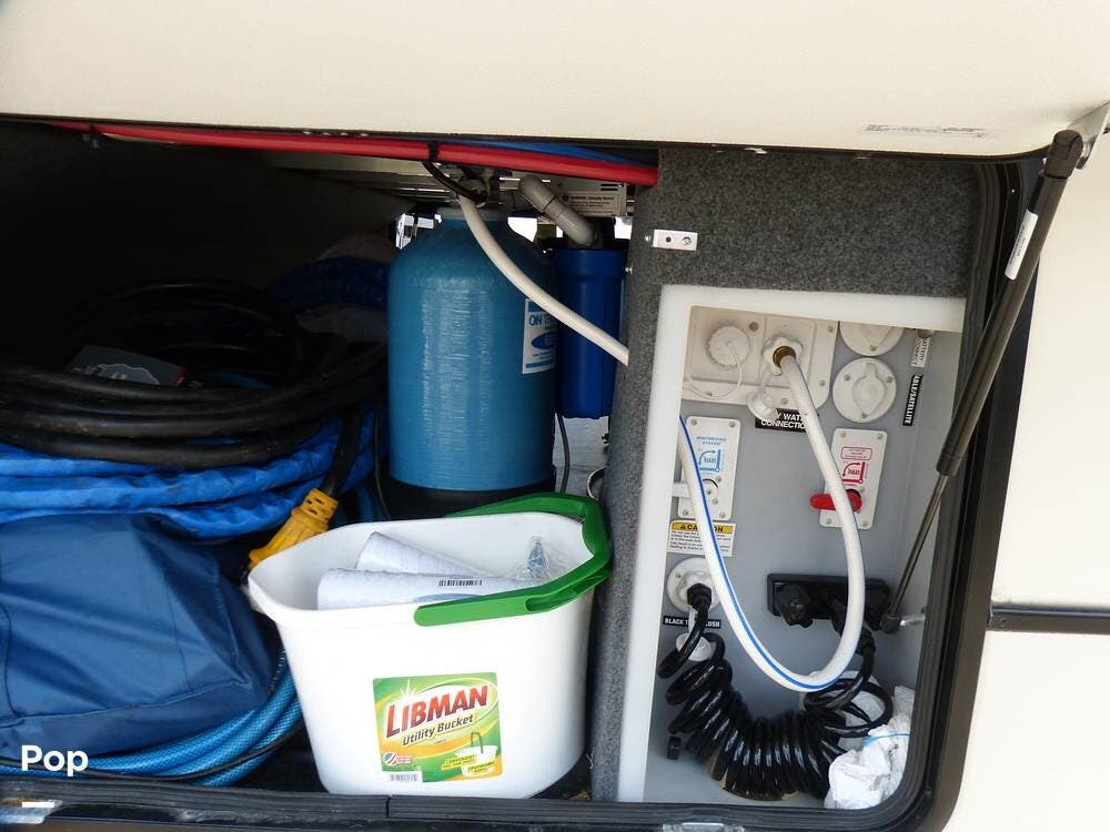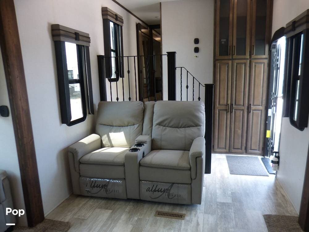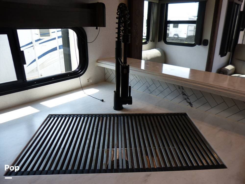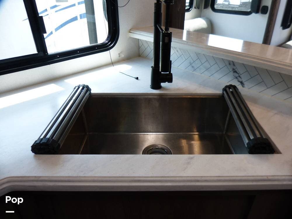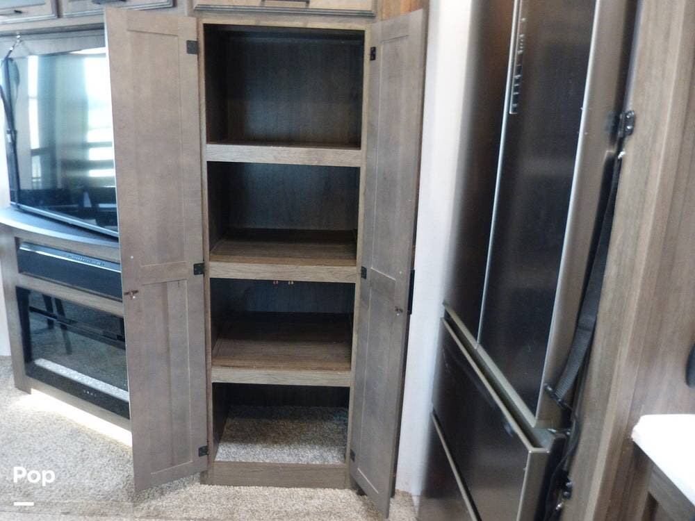 The RV is also equipped with Dexter axles and a tire pressure monitoring system.