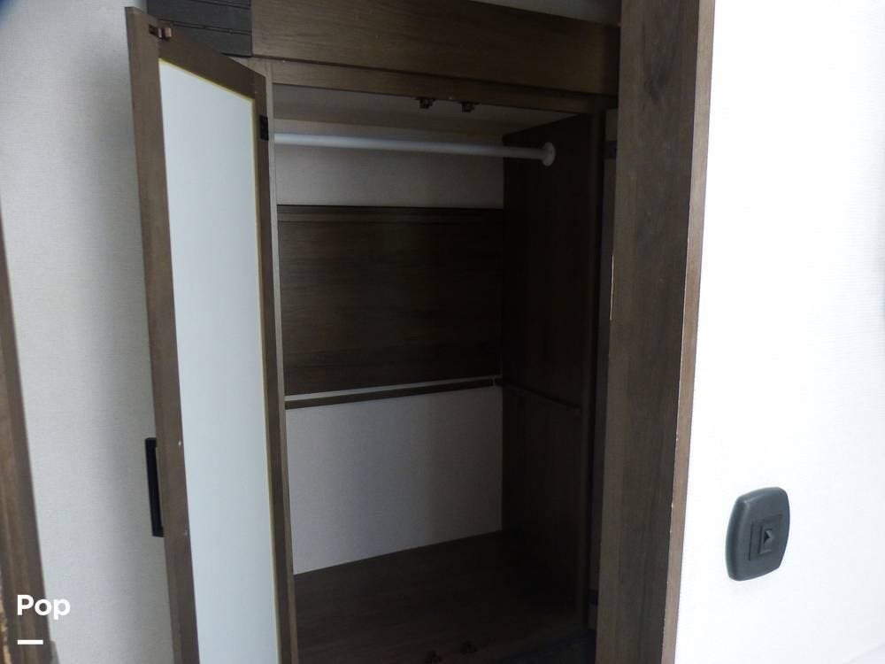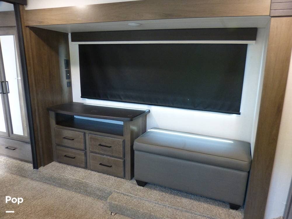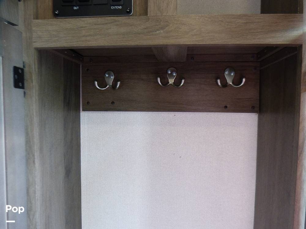 On the exterior, you can relax under the two power awnings with 22 feet of coverage.