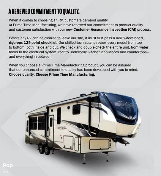 Request More Info on this 2021 Prime Time Sanibel 3702WB Offered for sale by Pop RVs